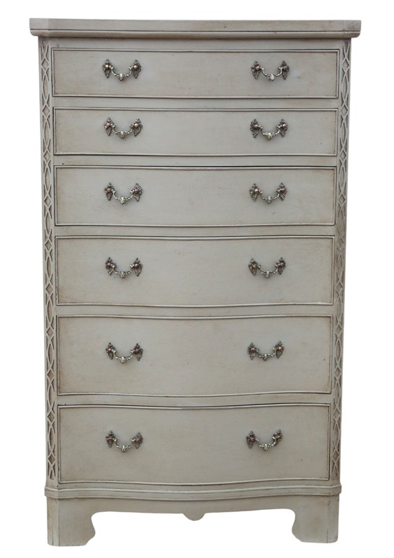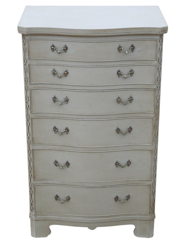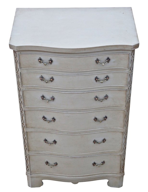 Vintage Georgian Revival Painted Serpentine Chest of 6 Drawers – Mid-20th Century Quality Furniture