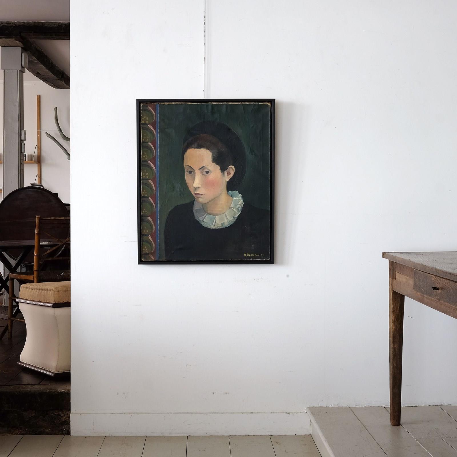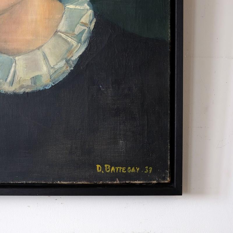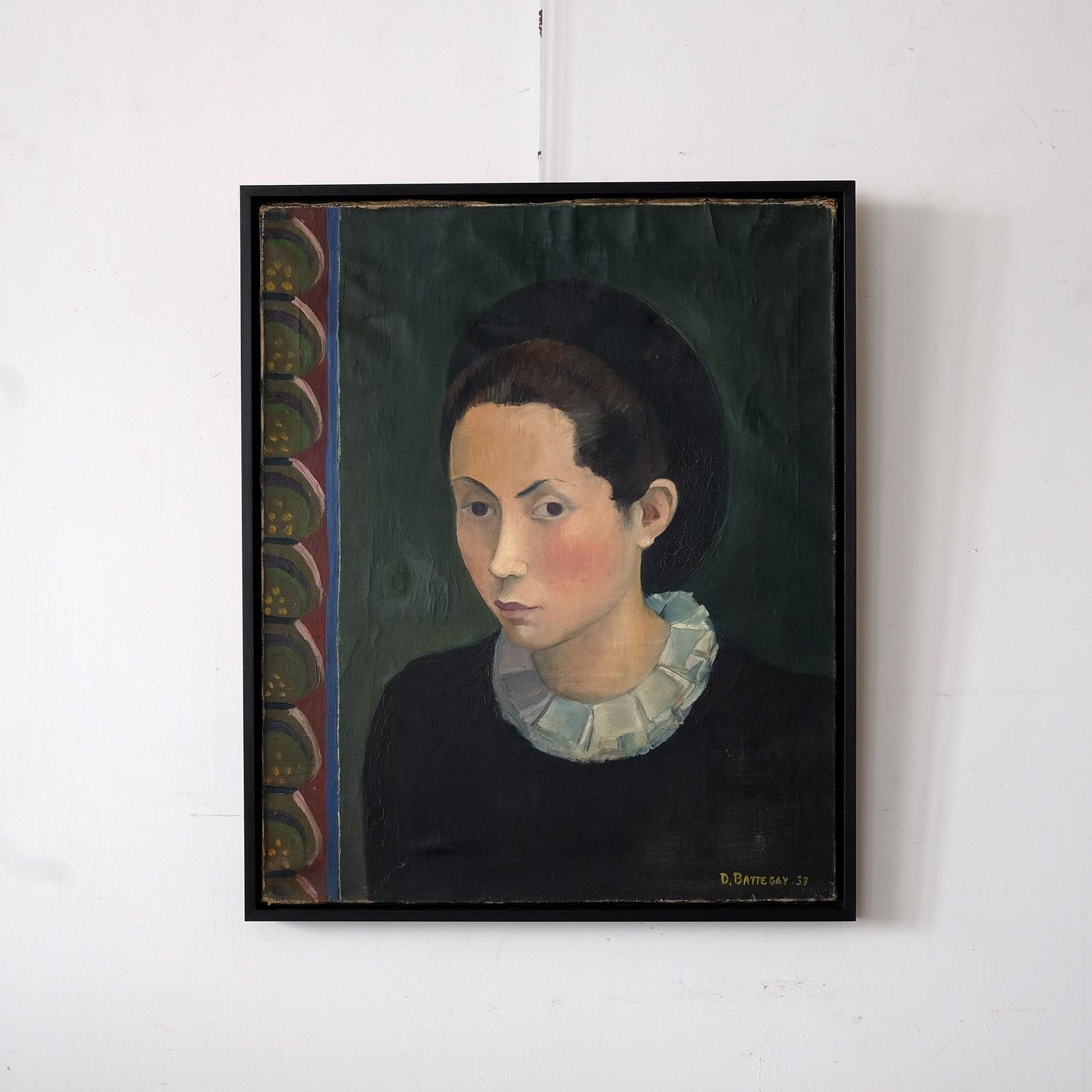 Early 20th century portrait, circa 1930, France, oil on canvas, signed D. Battegay .37, framed in a contemporary tray frame. A captivating work in the modernist style with an interesting background and composition.