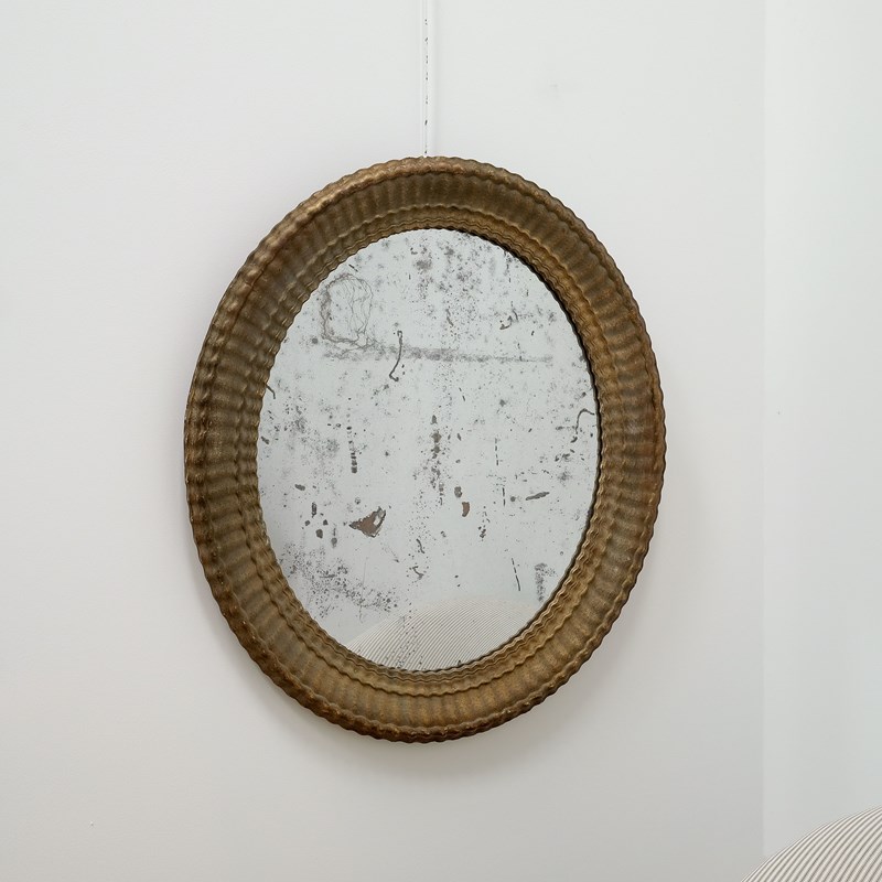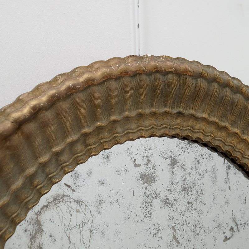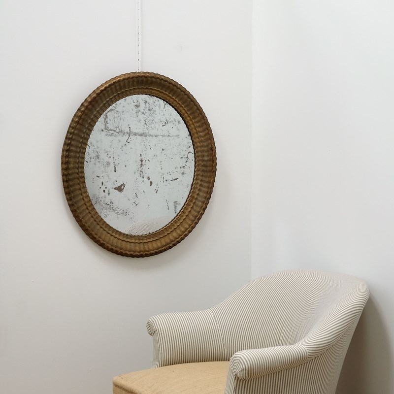 A very attractive late 19th century French oval mirror, original mercury plate, original back, original gilded decoration. Lovely quality plaster moulded frame with fine reeded details and pie crust edge.