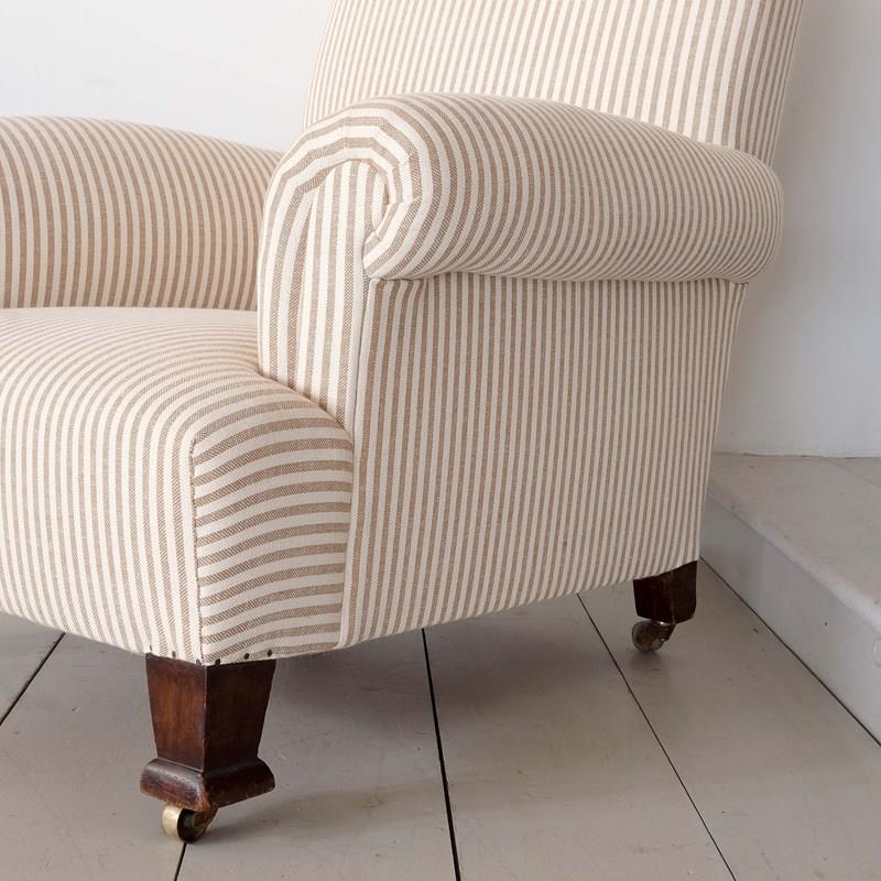 Antique English Armchair In Ticking