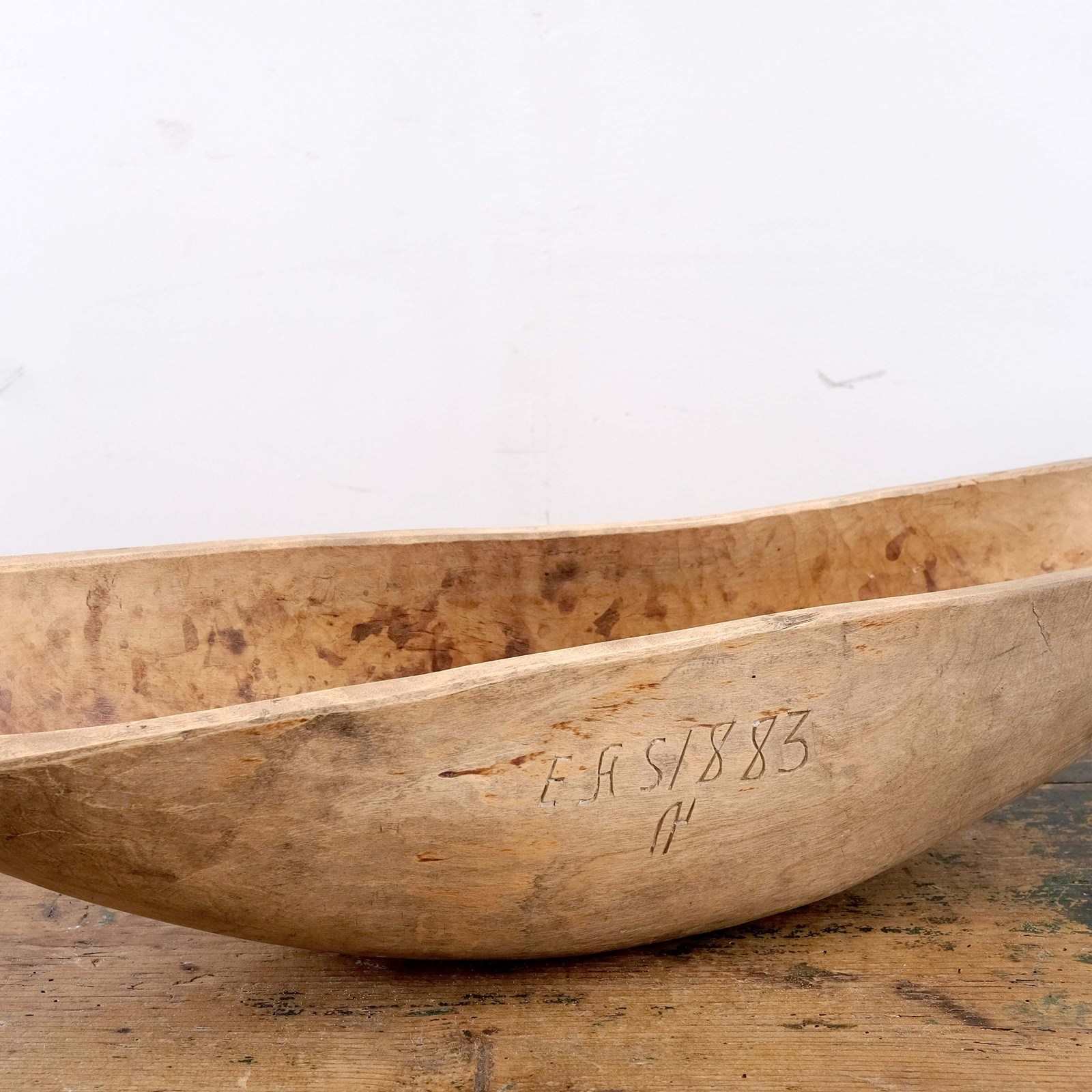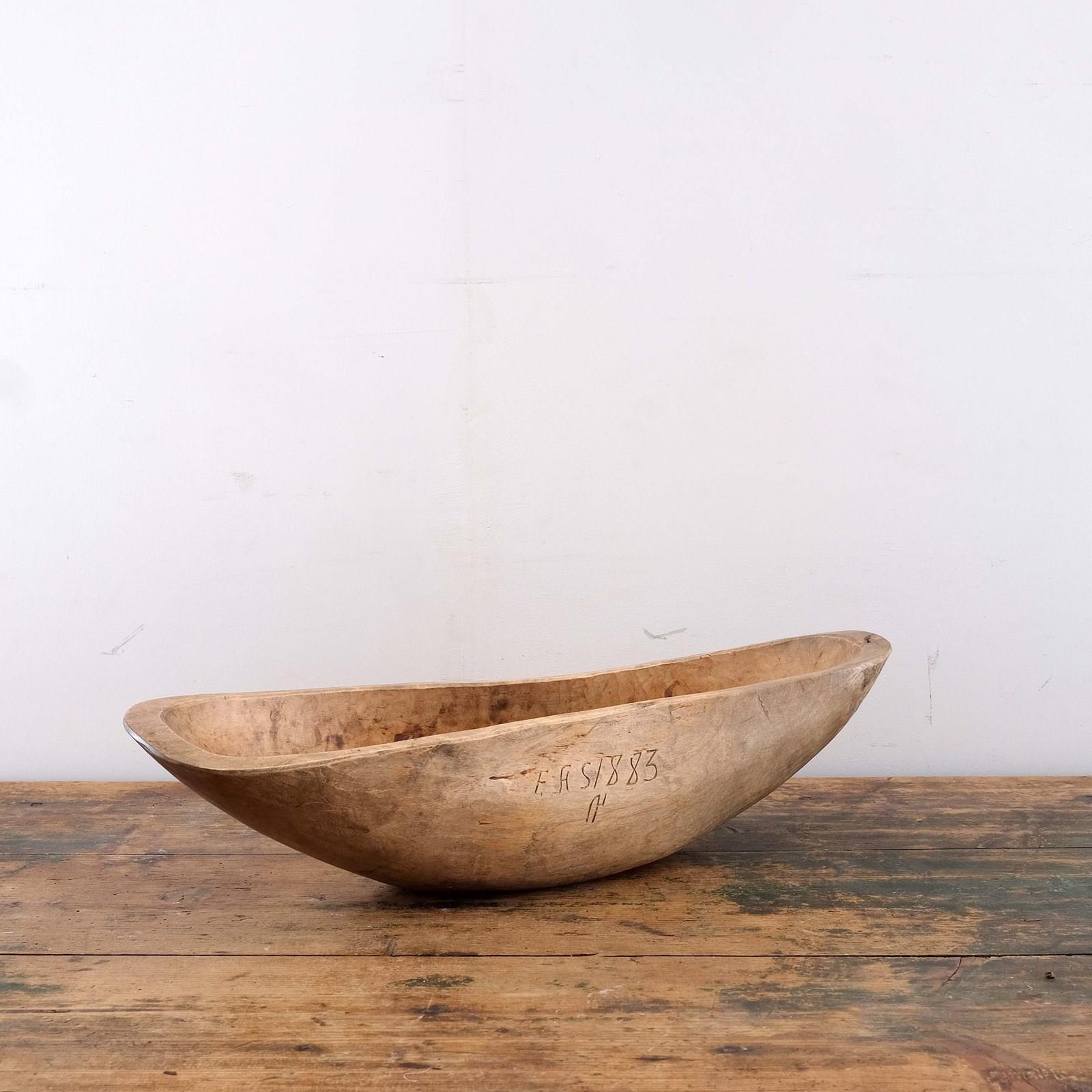 Late 19th century antique Swedish Folk Art bowl initialled and dated 1883. Lovely organic form that has been hand carved from a root. Nice signs of age and wear with soft edges. Often these bowls stayed in the same family and passed down through generations.