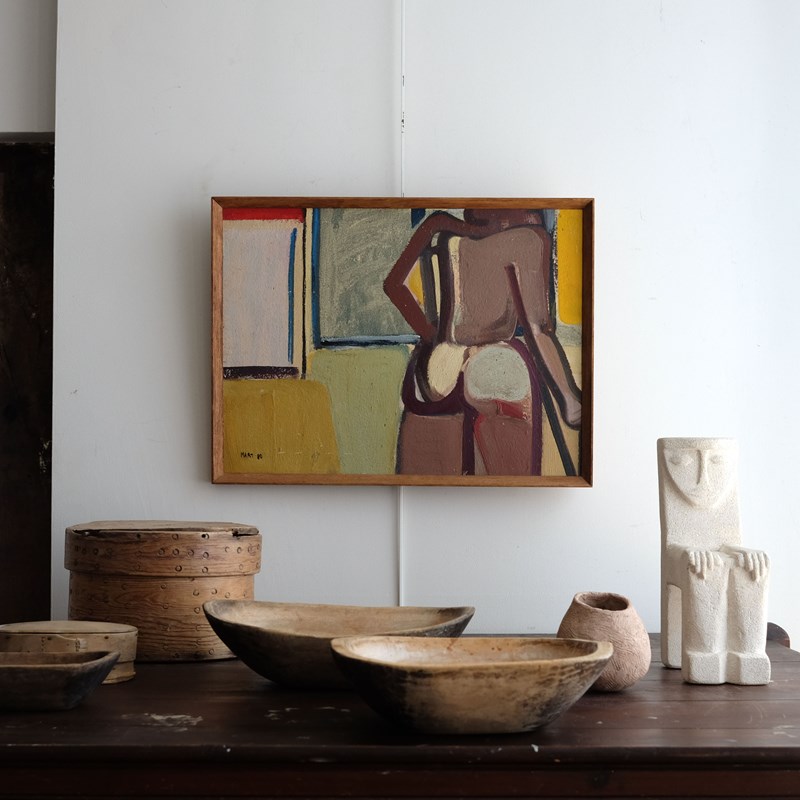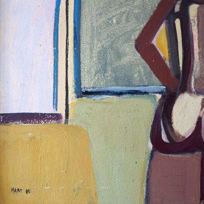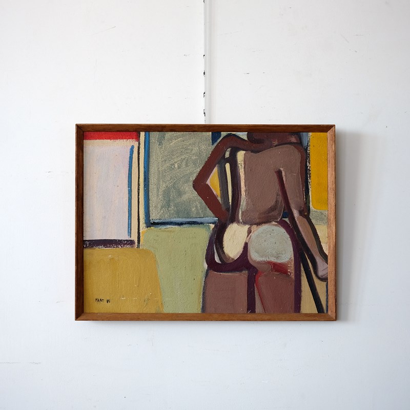 A very stylish French abstract nude, oil on board in the original vintage frame. Signed 'Mart' and dated '.80'. Confident exection and interesting cubist composition.