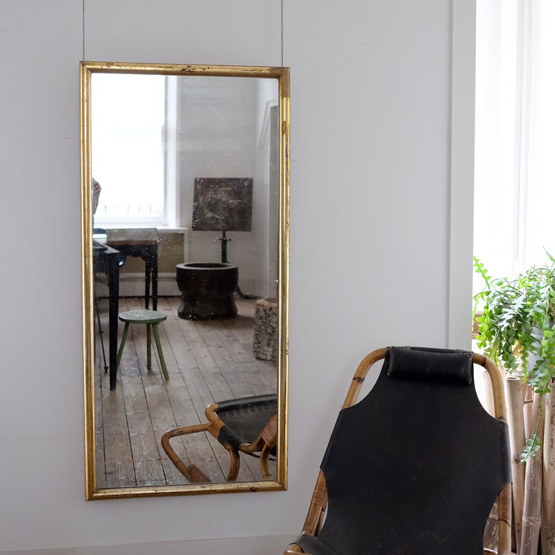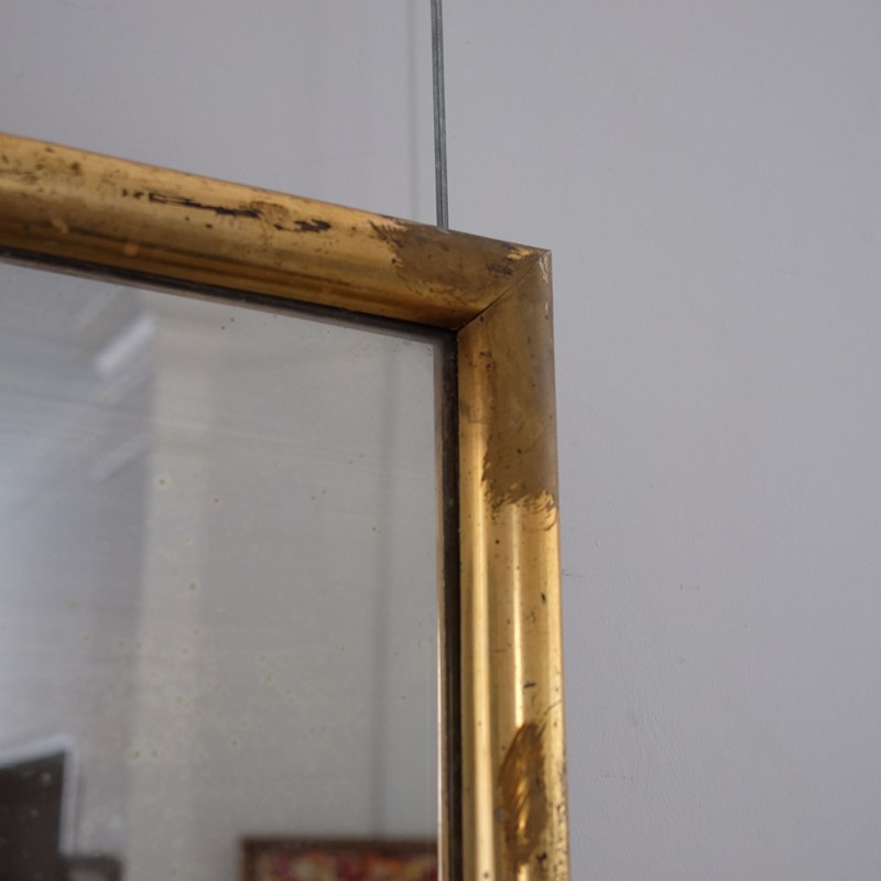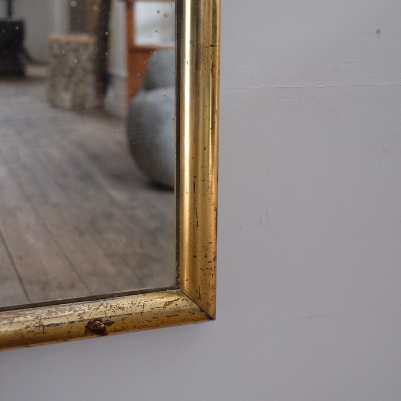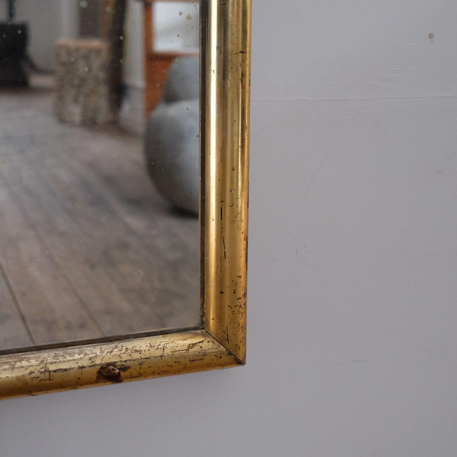 Mid 19th century French bistro mirror, original mercury plate and original back. Lovely original soft lemony gilding around the bull nose frame. Elegant proportions. Can be hung landscape or portrait.