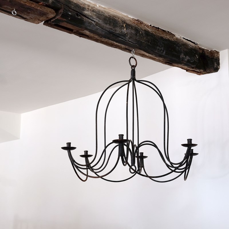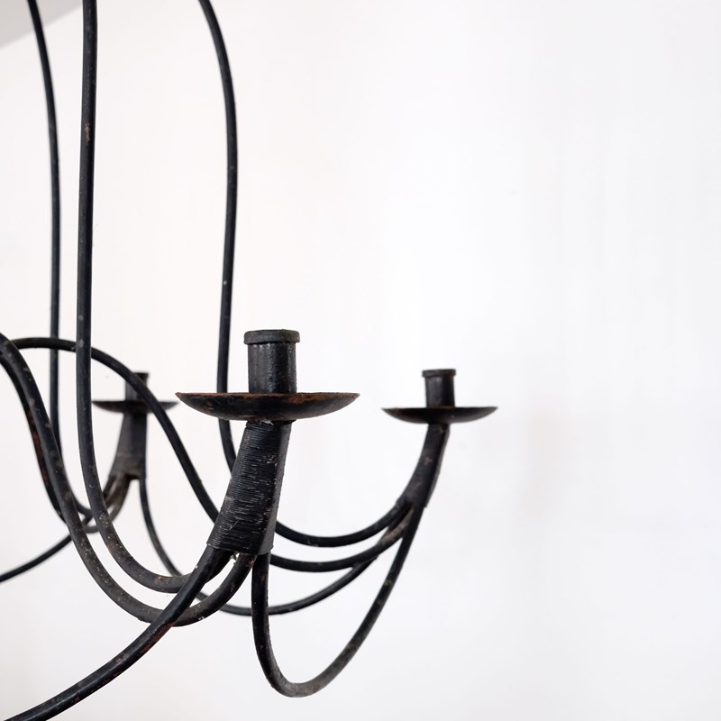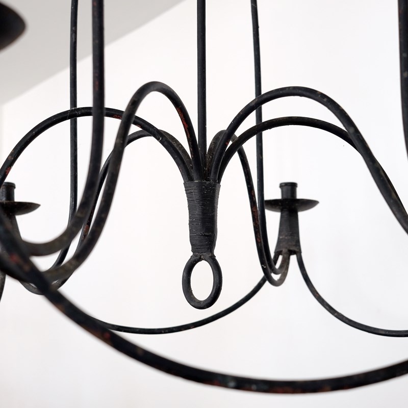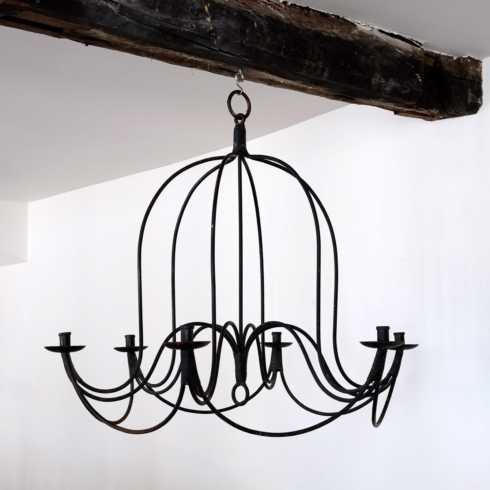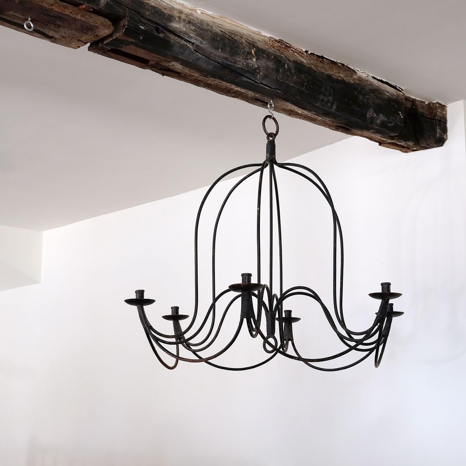Late 19th century French candle chandelier, blacksmith forged in wrought iron. Great scale, wonderful form and lovely original patna.