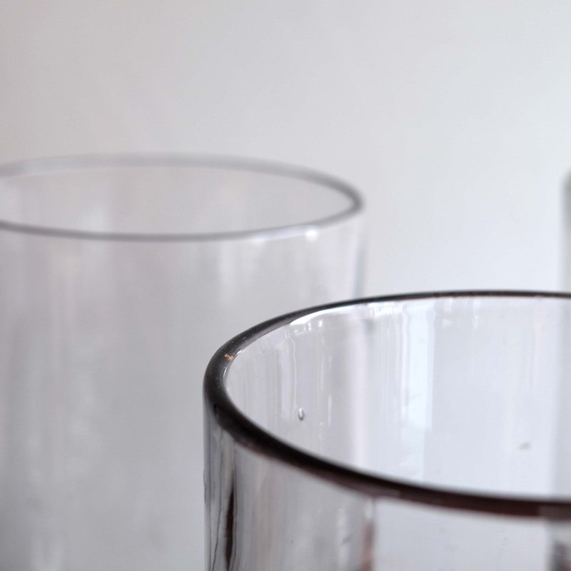 Large 19th century French hand blown vessels/ vases. Great simple forms and a satisfying weight due to the thick glass. No chips or cracks but all with lovely imperfections consistent with the hand blowing process.