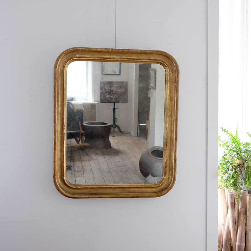 A very smart large scale French mirror, mid 19th century, original mercury plate, original back and original gilded decoration around the substantial moulded frame. Unusual example with the four curved edge corners.