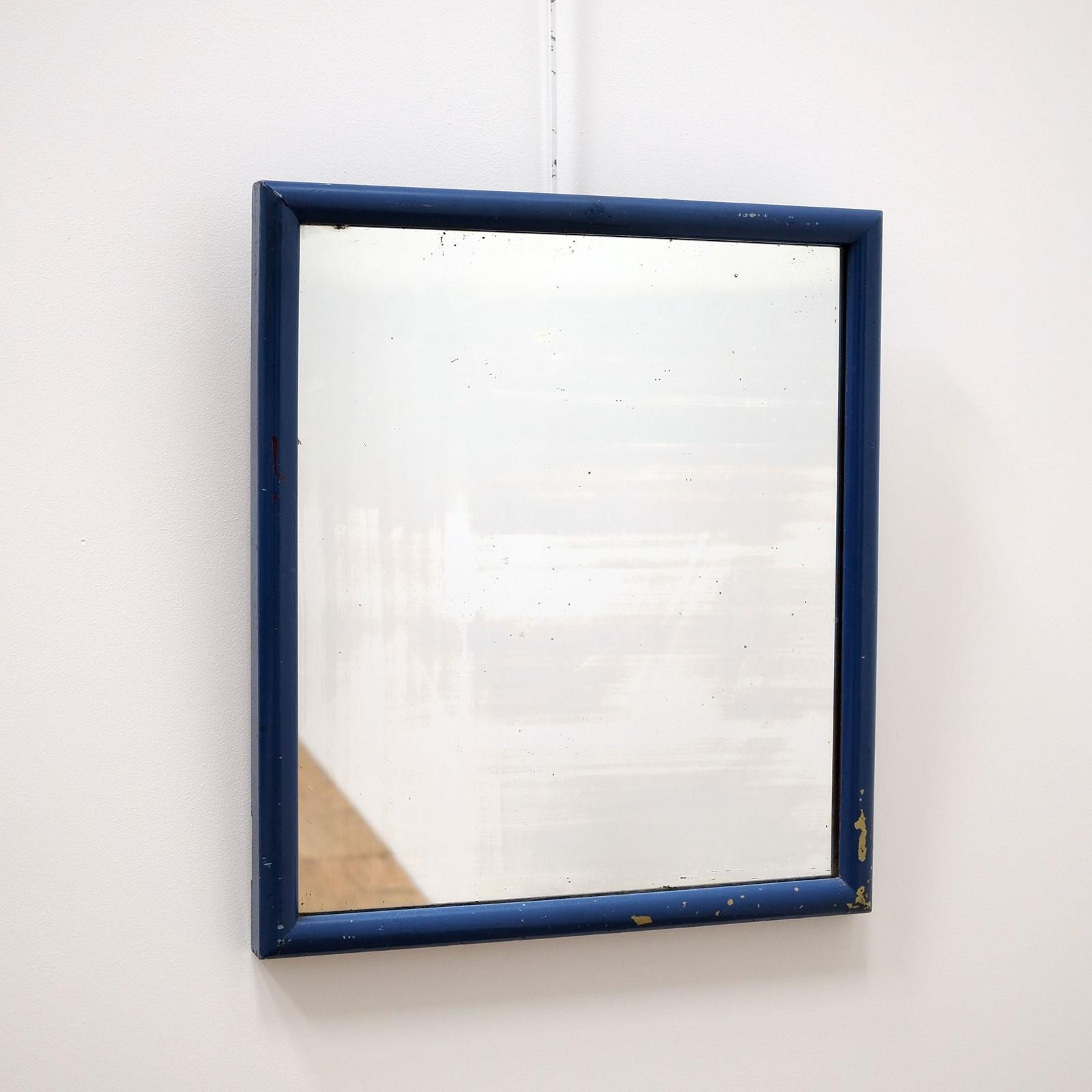 An early 20th century mirror from the London, Brighton and South Coast Railway. Original plate and original back with LB&SCR scribed. Old blue paint that we think is rather fun.
