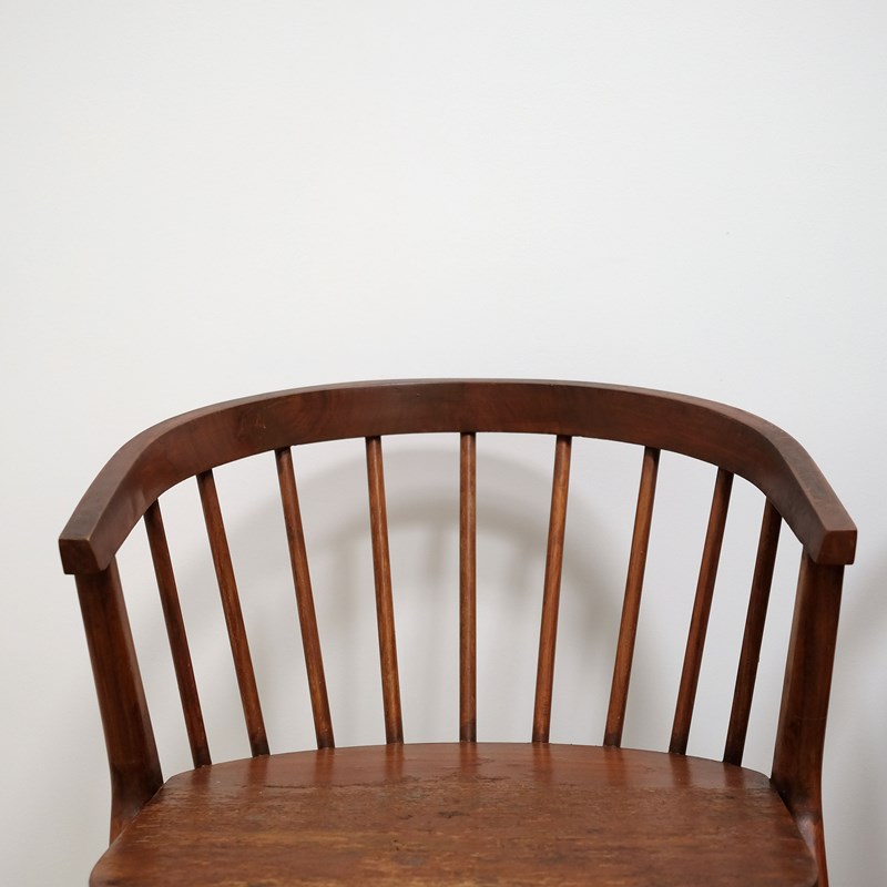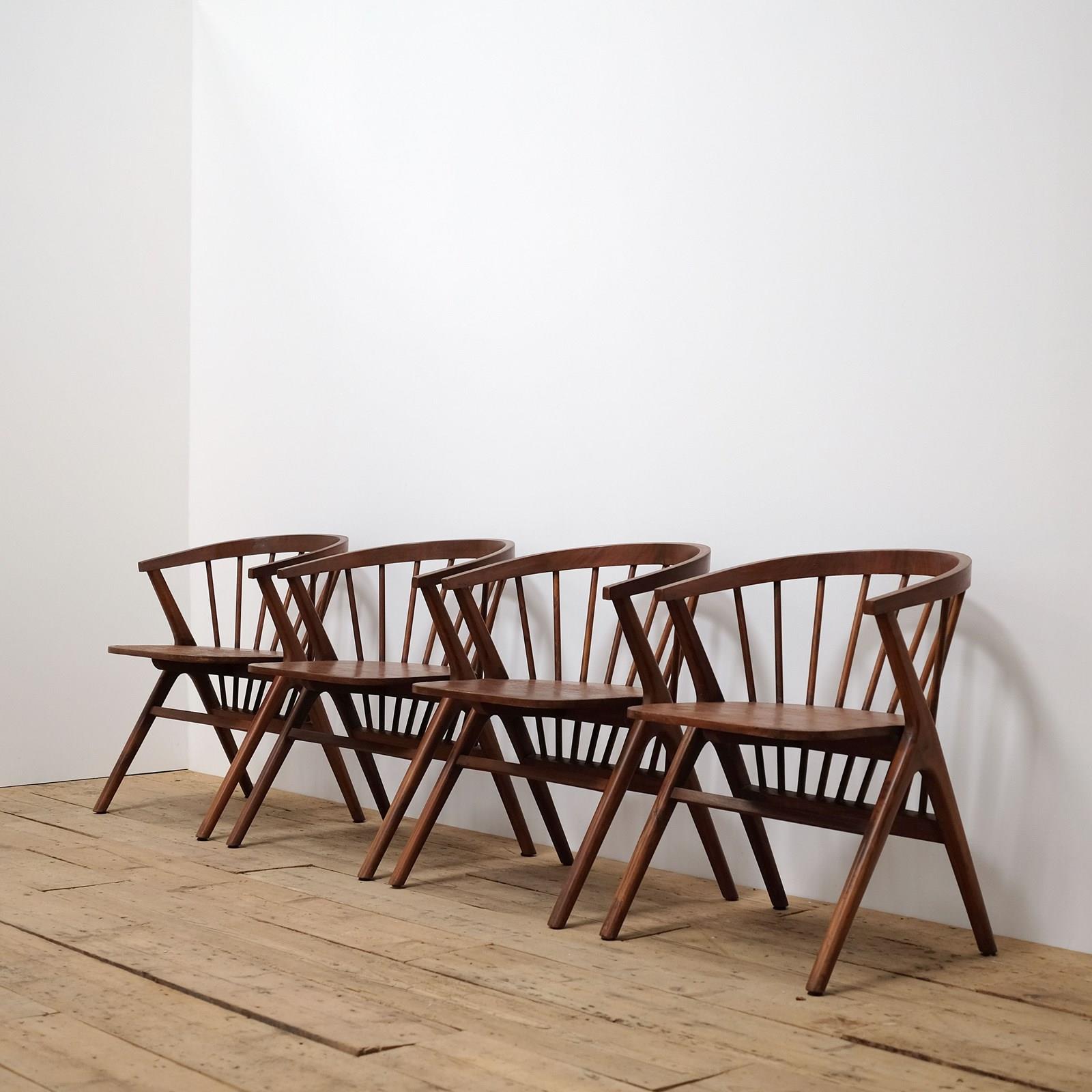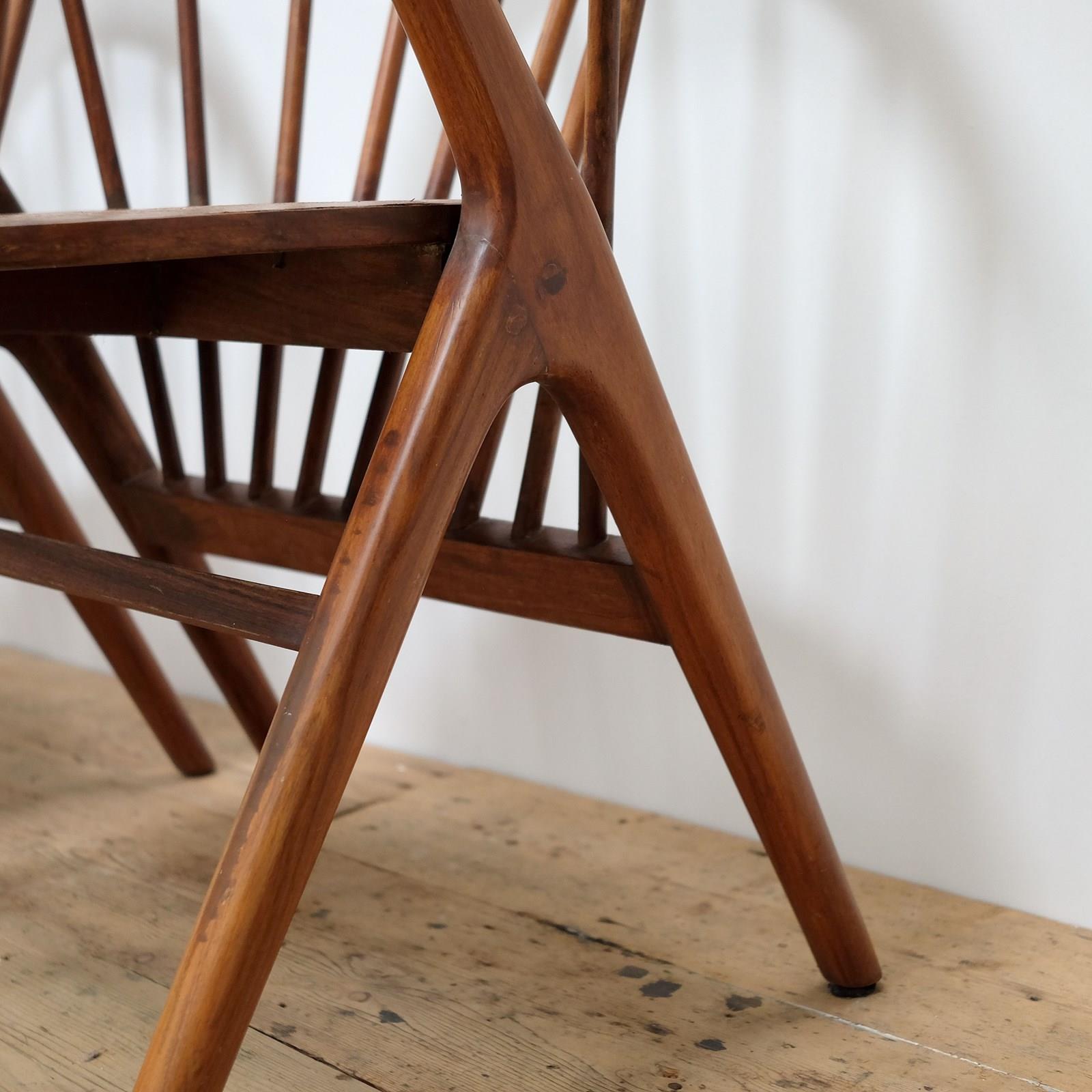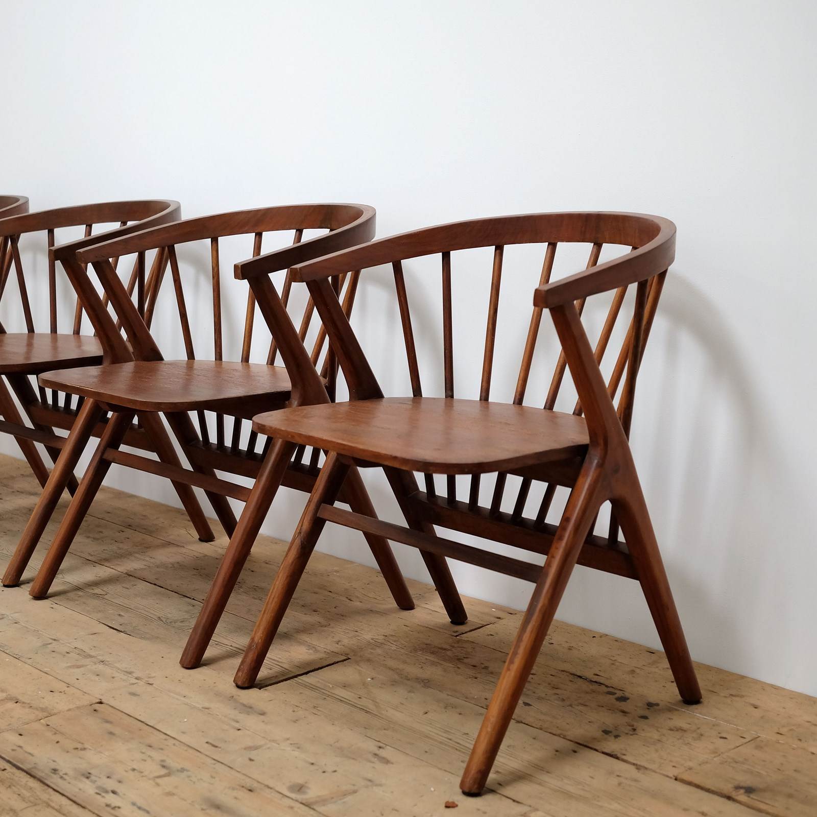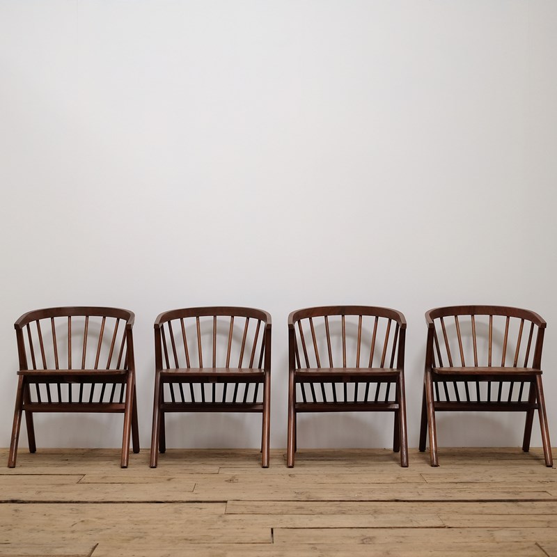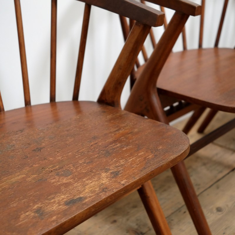 Set of four good quality mid 20th century Danish armchairs, constructed in beech. Super shape and nice stick back design detail that extends to the back rail. Lovely warm colour and patina. These chairs look great at every angle!
