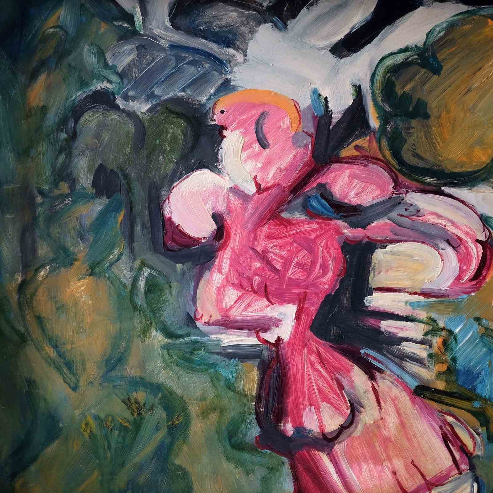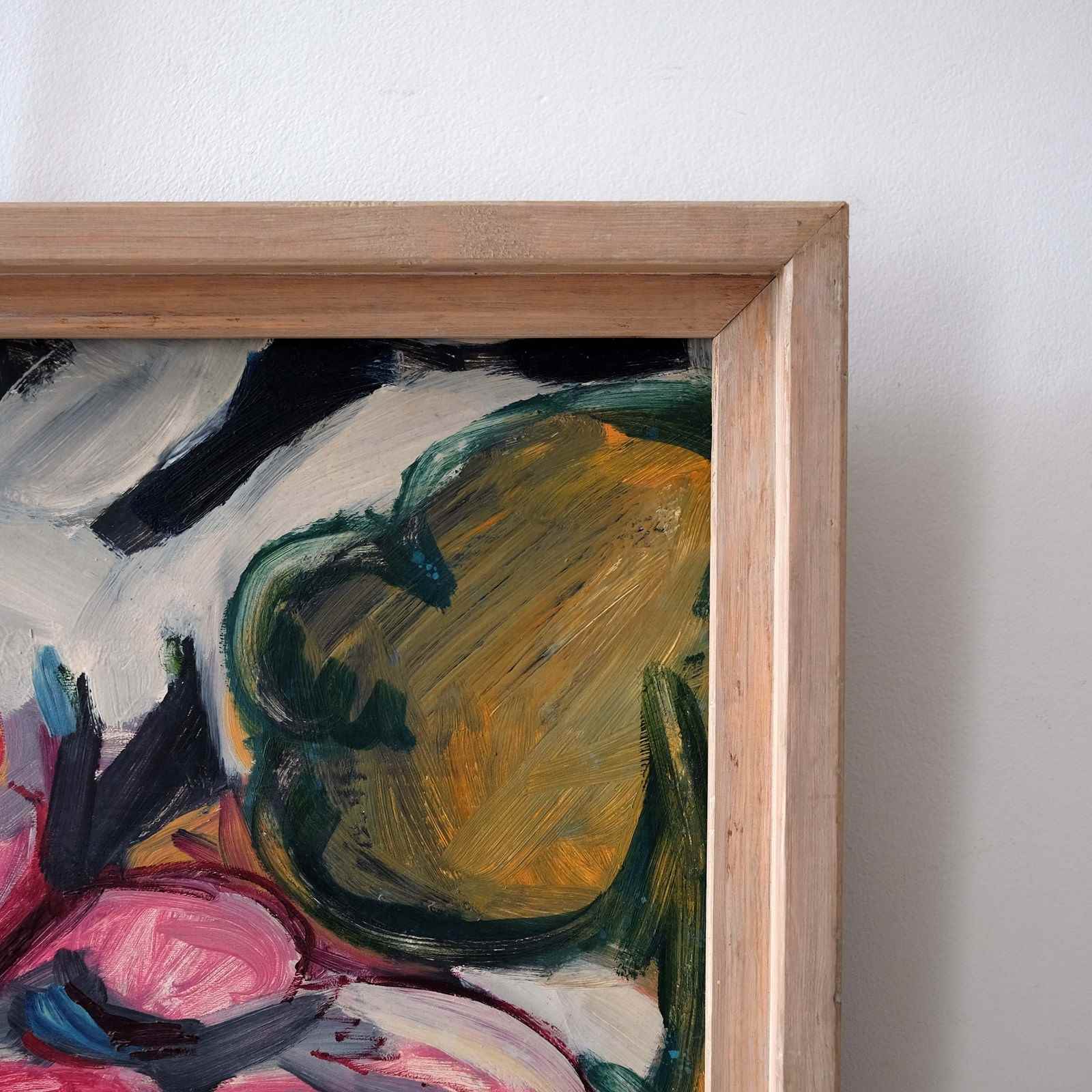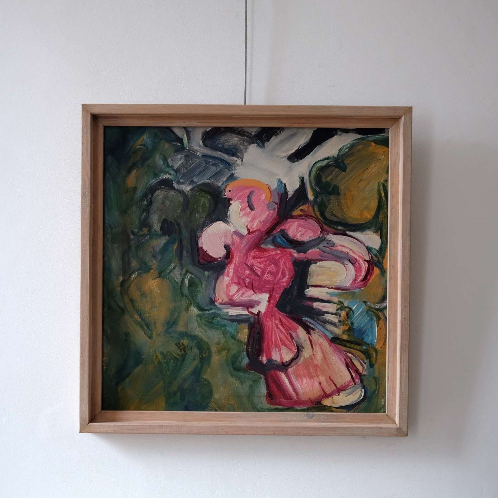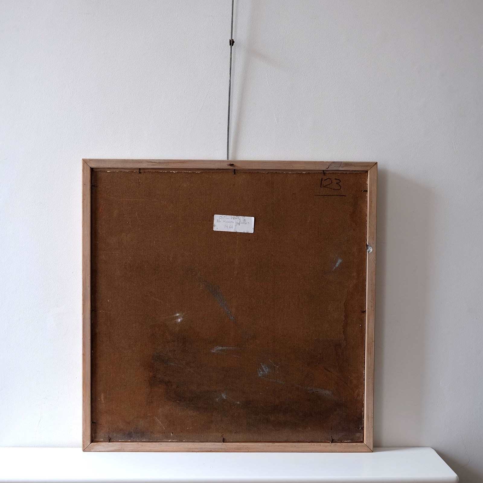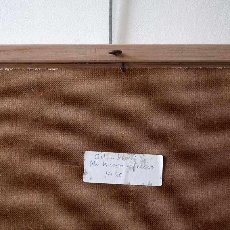 Original 1960s abstract composition, oil on board, by Johnnie Clarke, titled 'No Known Species .66'.