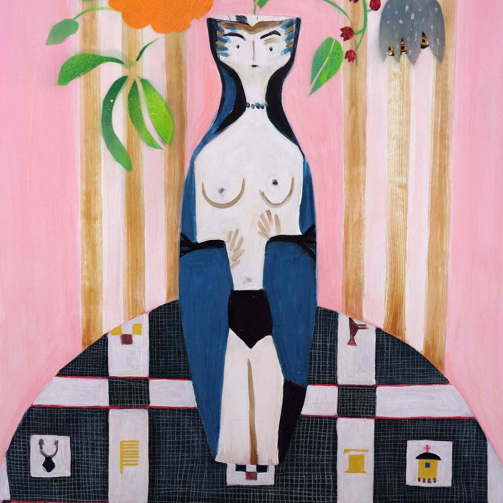 Isabelle Hayman is a French artist based in South London. She trained as a textile designer in Paris, and completed a Master of Fine Arts from Paris I. She has extensive experience in textiles and spent time living in Java. Childhood connections to Africa and a love of travel deeply inform her work as well as her background in textiles and an avid curiosity for the decorative arts. Her practice spans from a series of detailed ink drawings still life to a more rhythmic, fluid expression focusing on female portraits. She has exhibited in Paul Smith's boutiques, and one of her paintings was selected for the RA Summer Exhibition 2021.