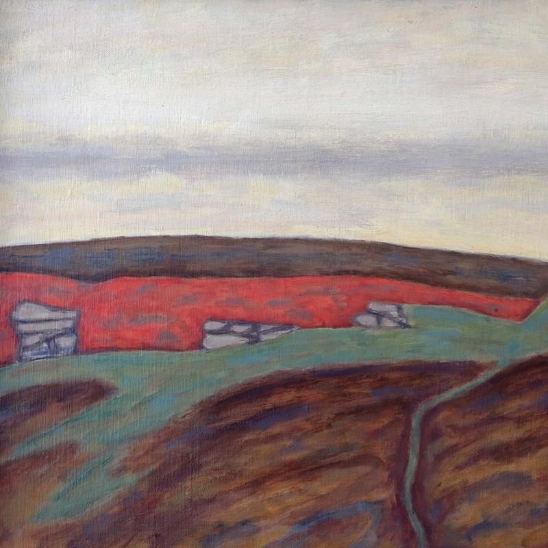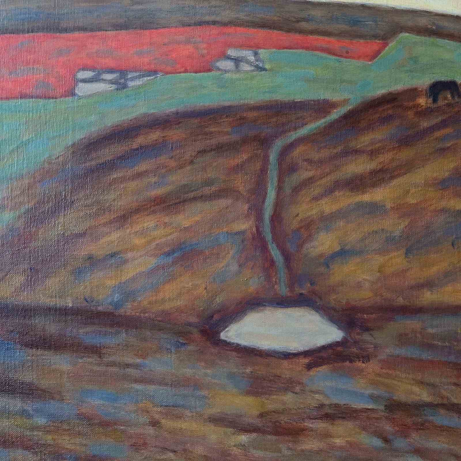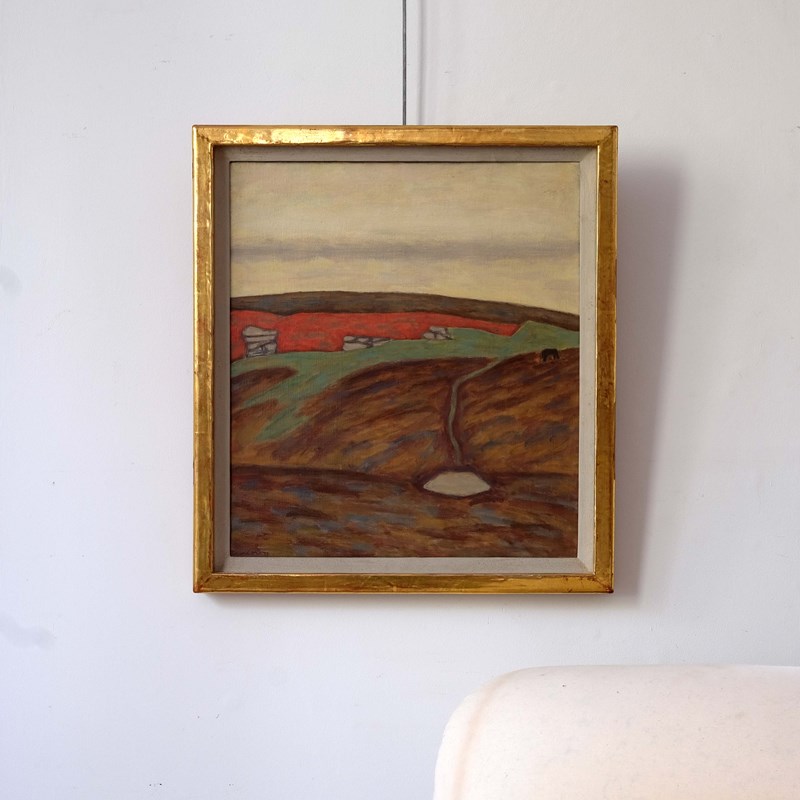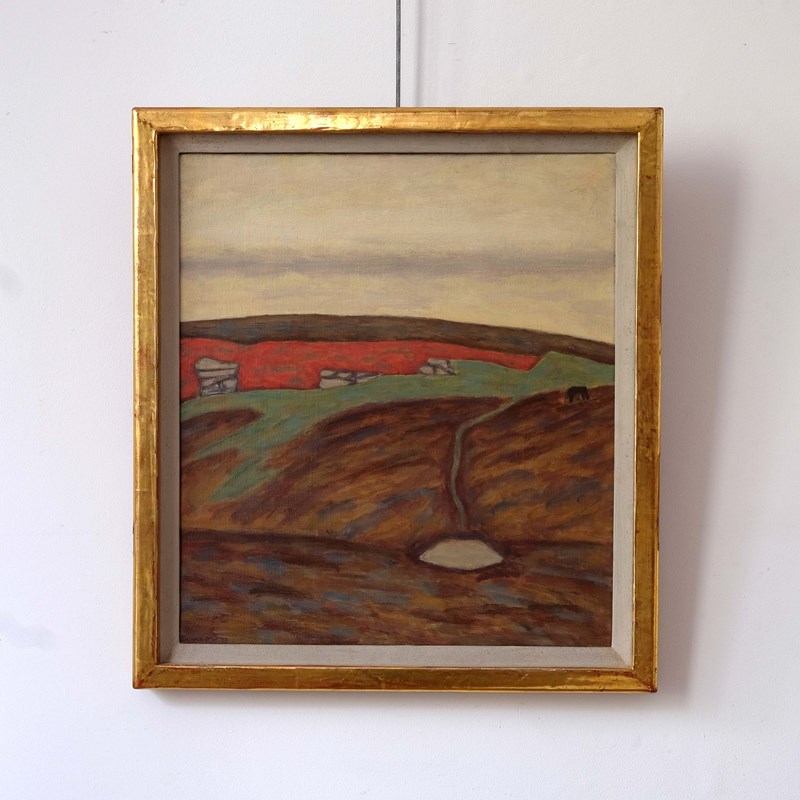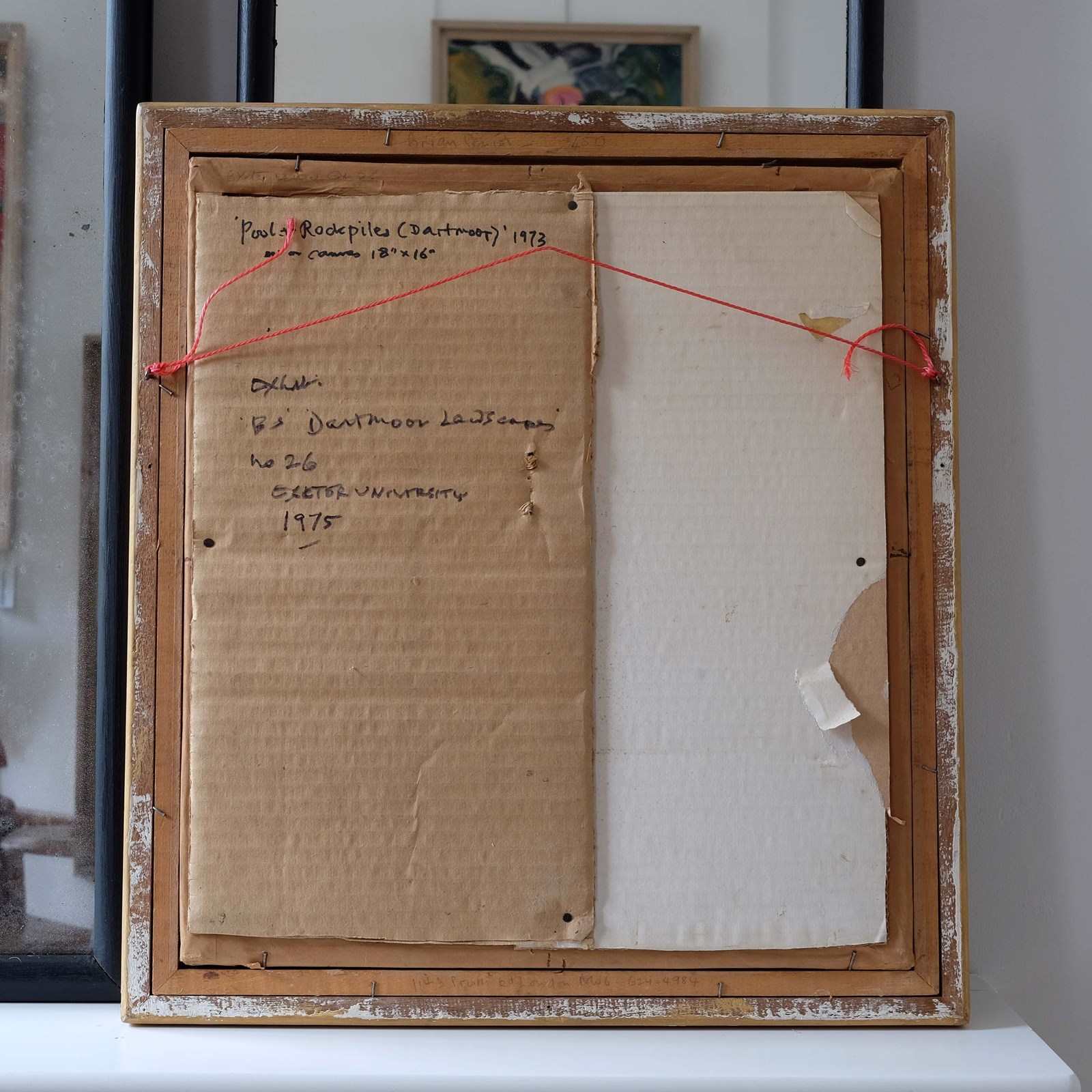 'Pool and Rockpiles (Dartmoor)' 1973 by Bryan Senior b. 1935. Oil on canvas in a gilded frame chosen by the artist. Exhibition: 'Bryan Senior Dartmoor Landscapes', no 26, Exeter University 1975.