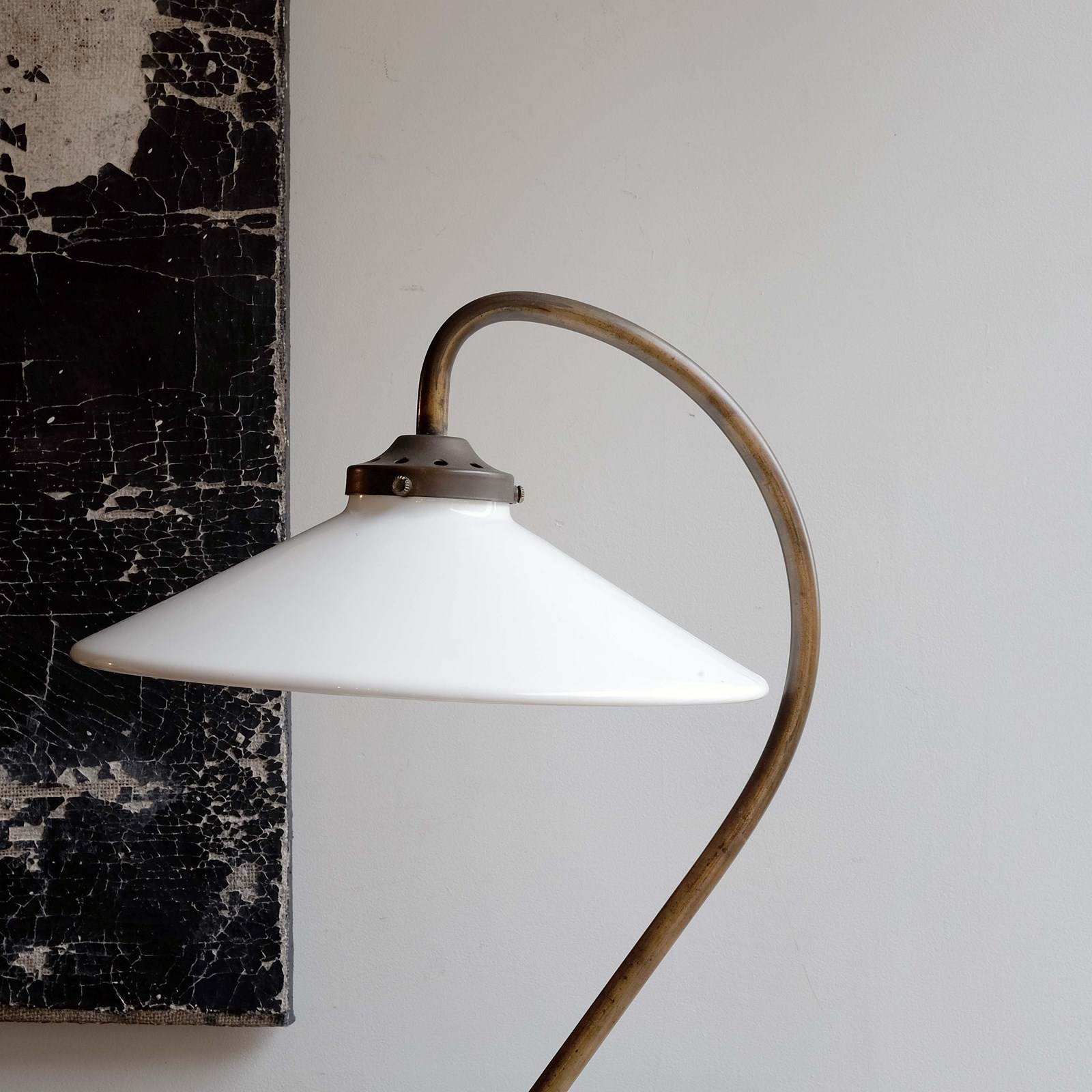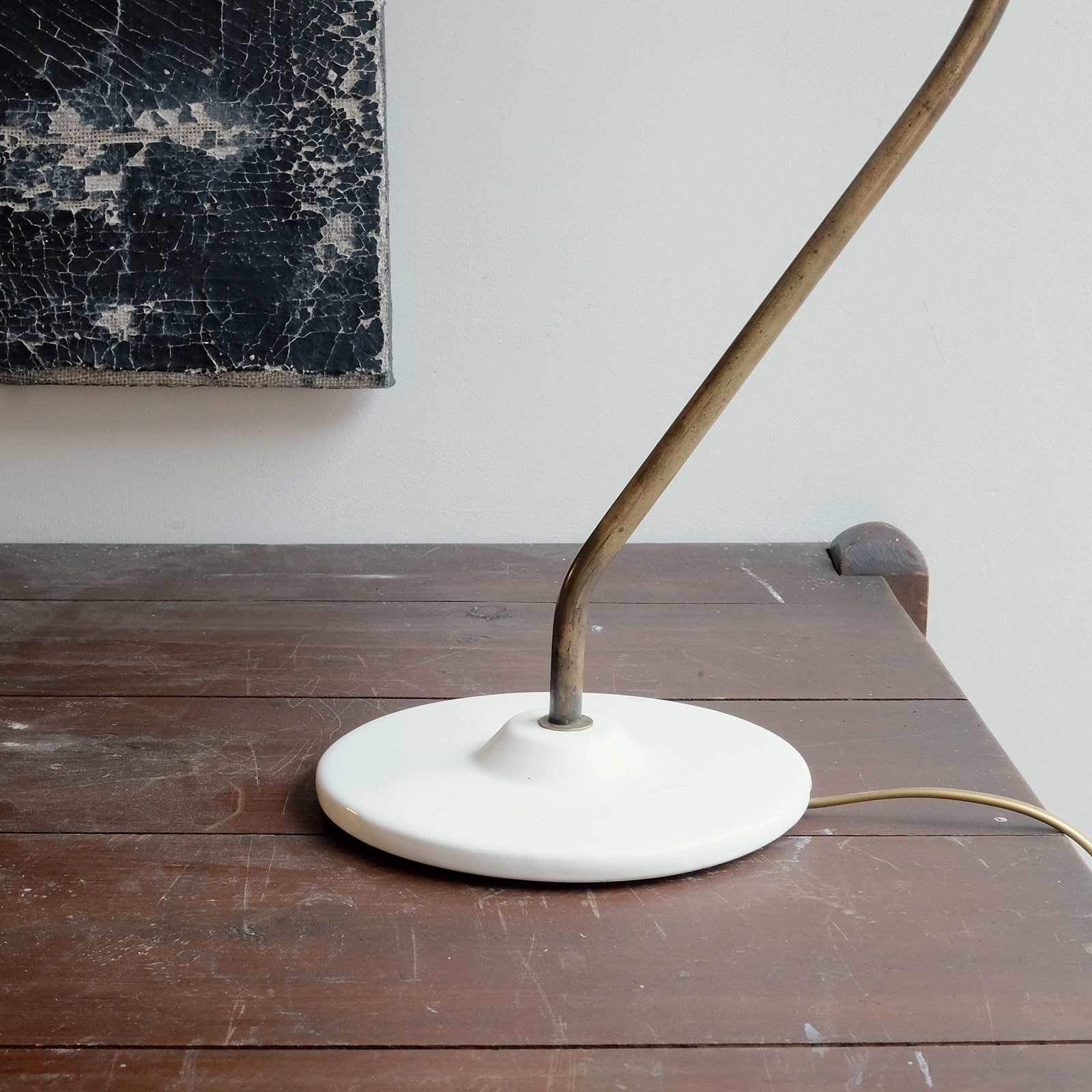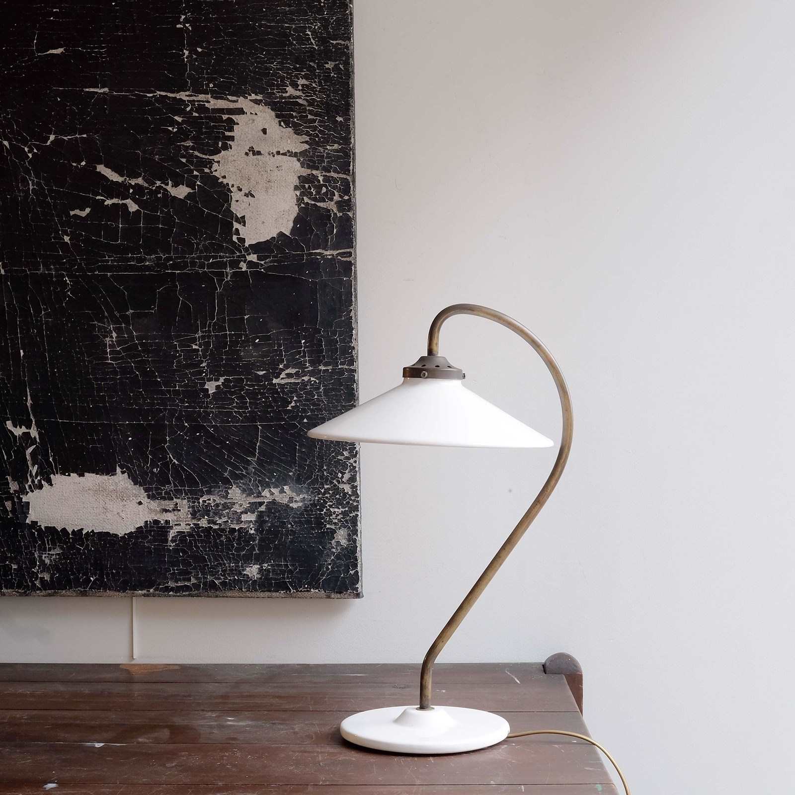 Mid - late 20th century lamp, porcelain shade and base with an elegant brass stem. Very attractive piece.