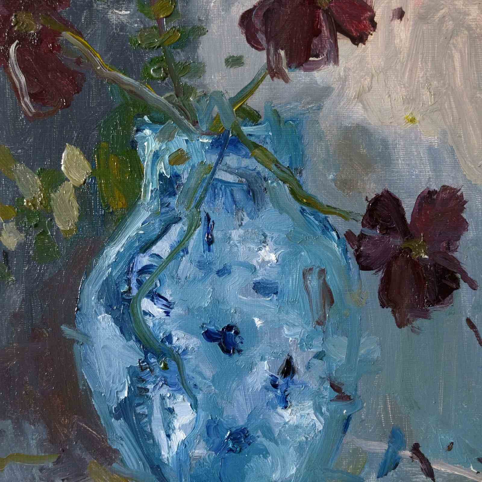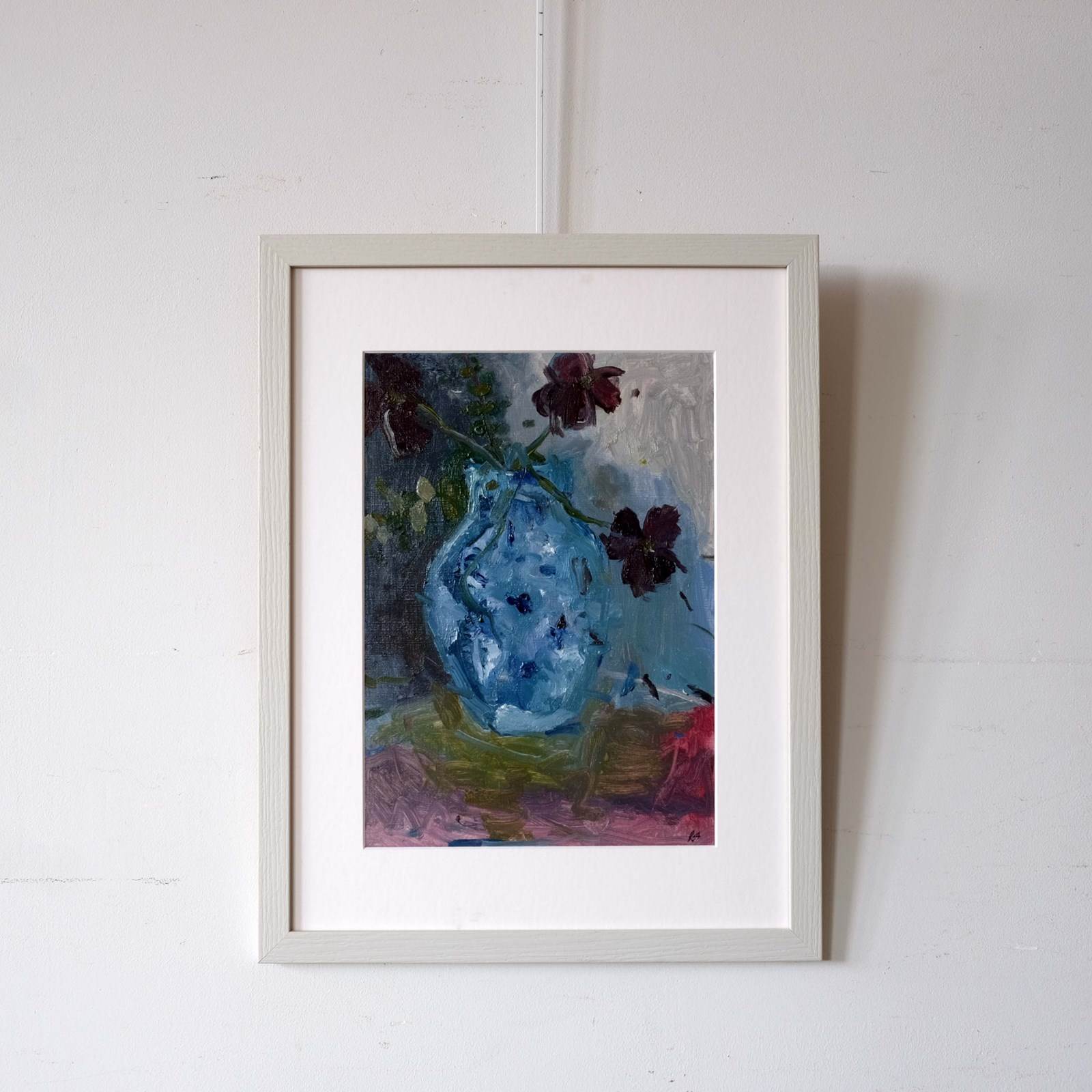 Purple Shamrock Antique Blue' by Rachel Arif ASWA MAFA SPG, oil on card.