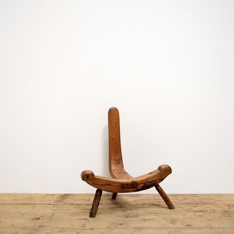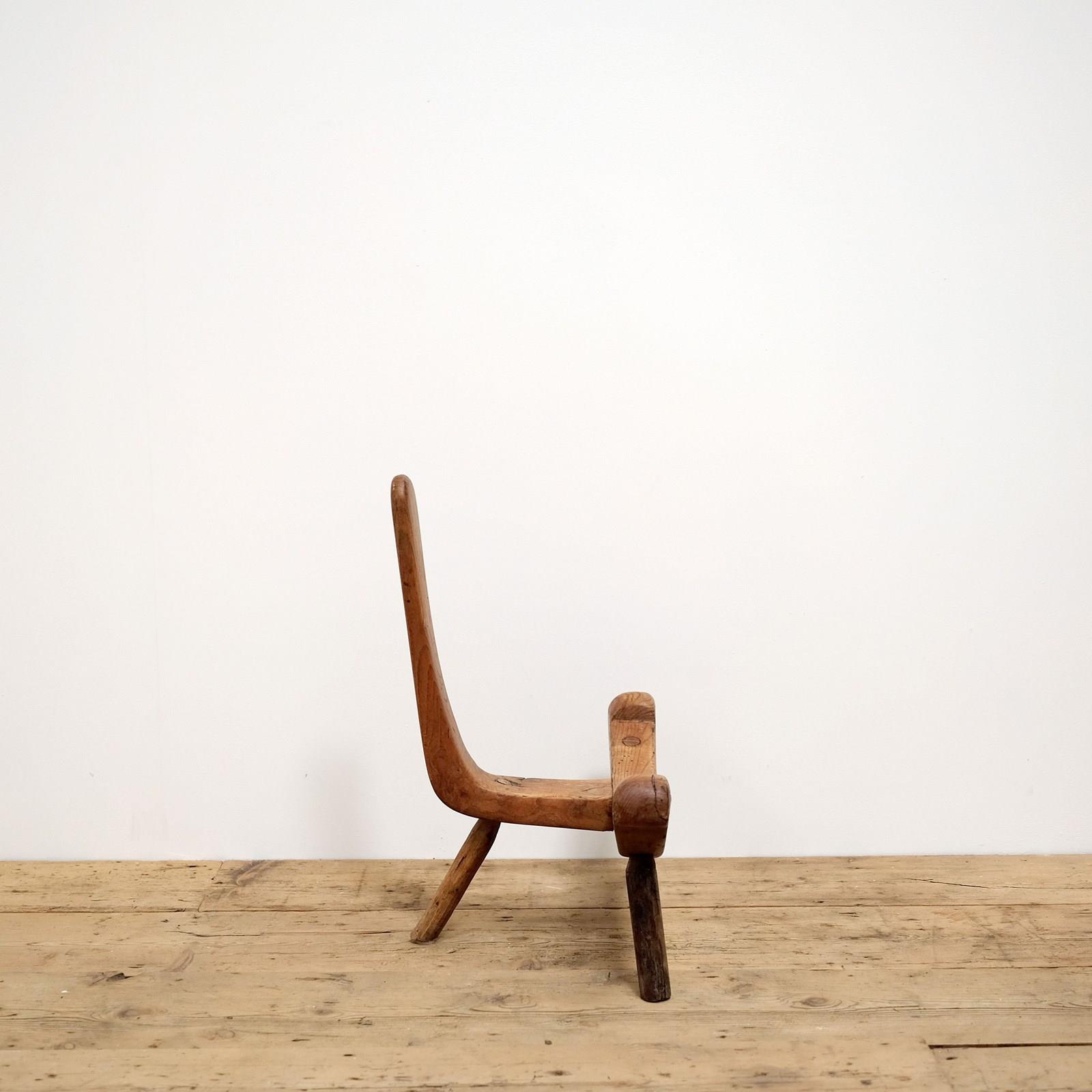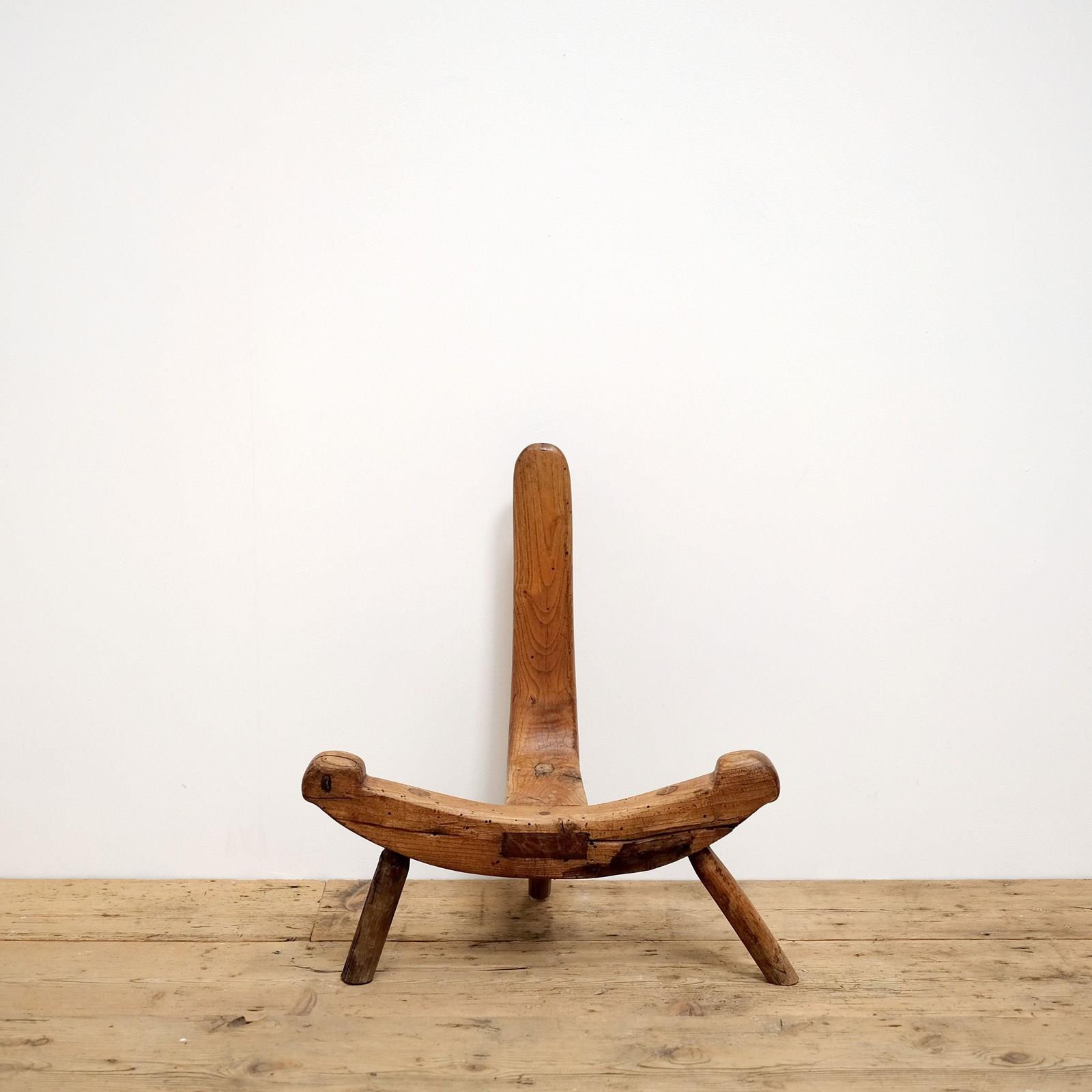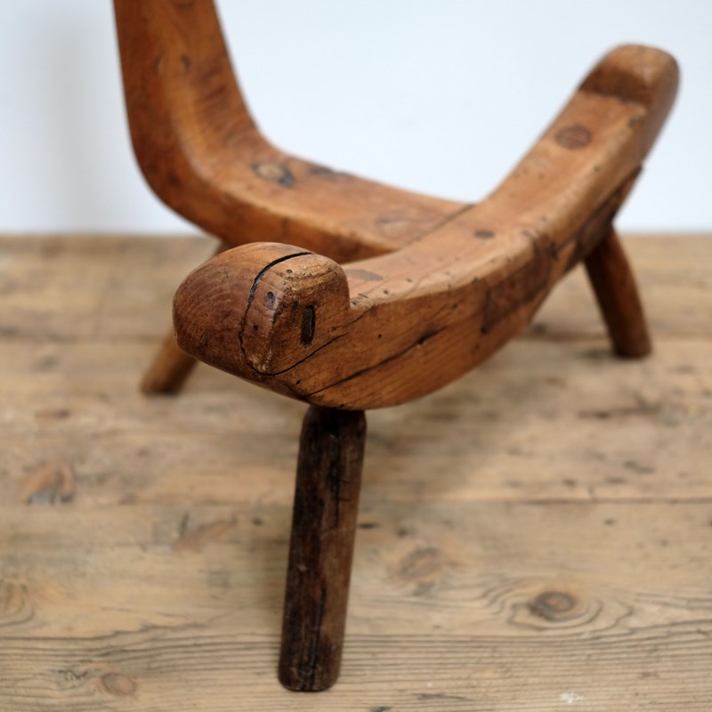 Antique Spanish country stool, circa 1890, primitive construction but organic form on peg legs. Lovely soft edges and honey colour. Sweet diminutive proportions.