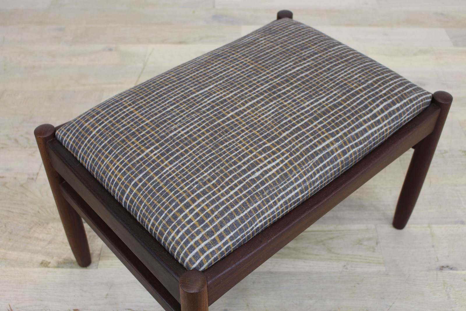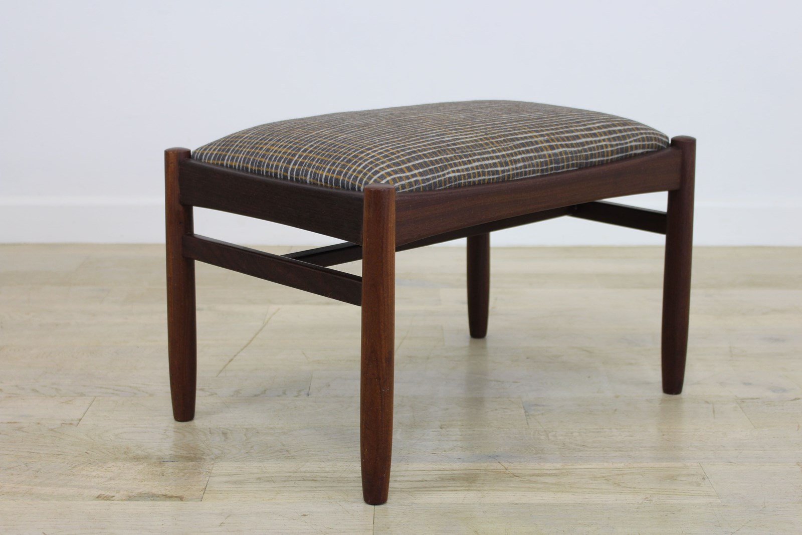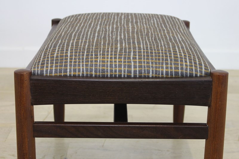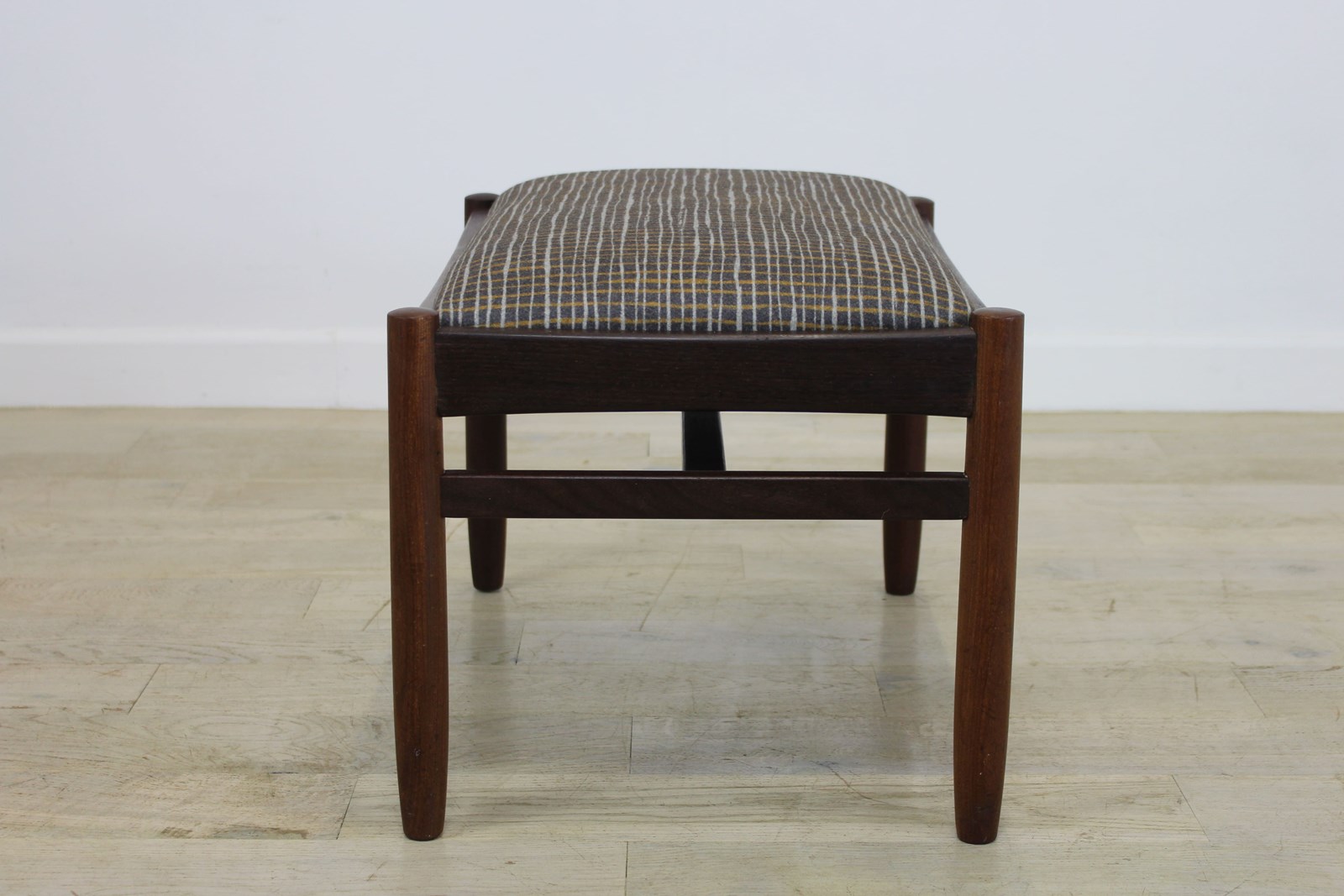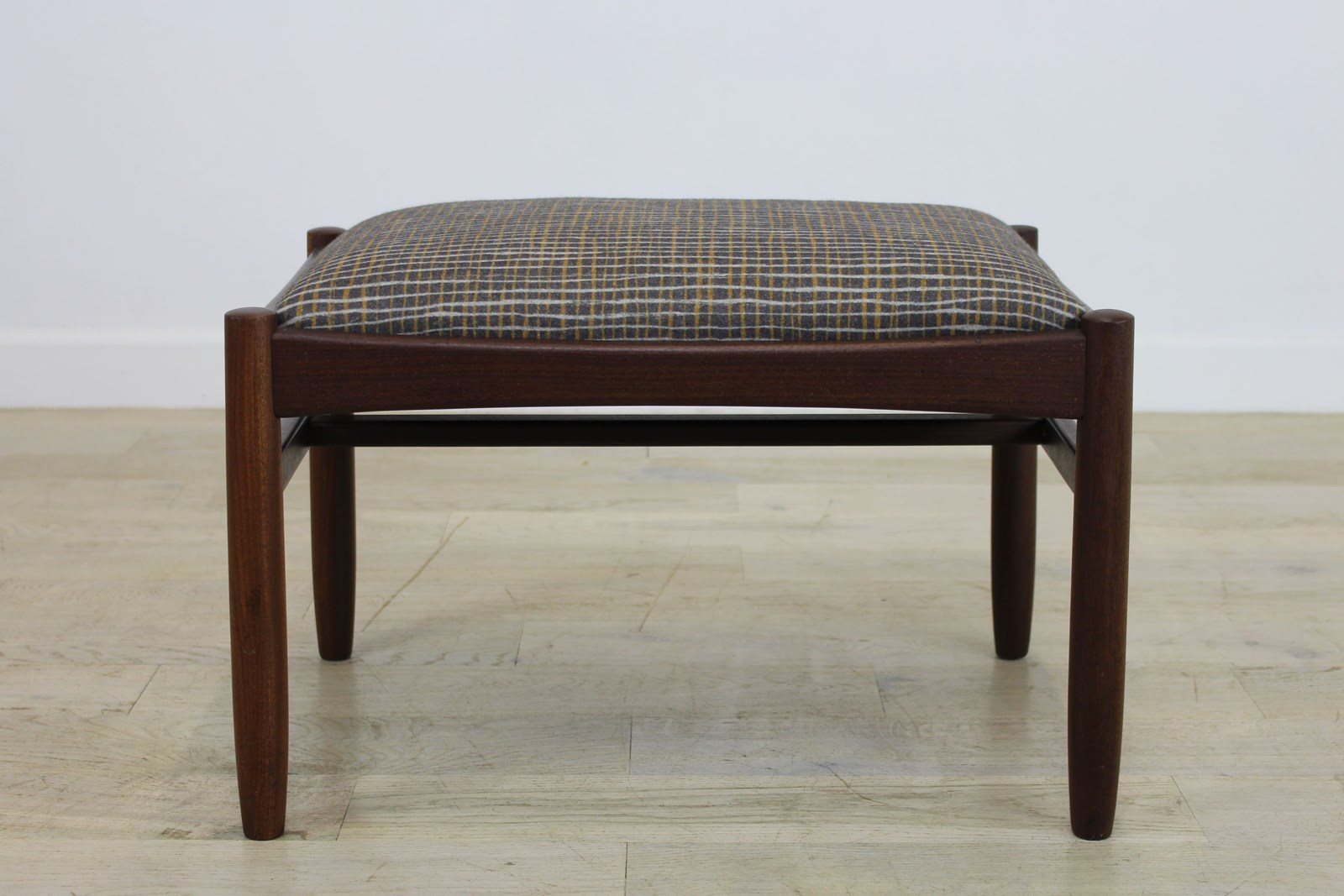 Newly upholstered in a Camira wool fabric from the Patternmaker range. This design is crosshatch, quite mid century in style and suits the stool perfectly.
