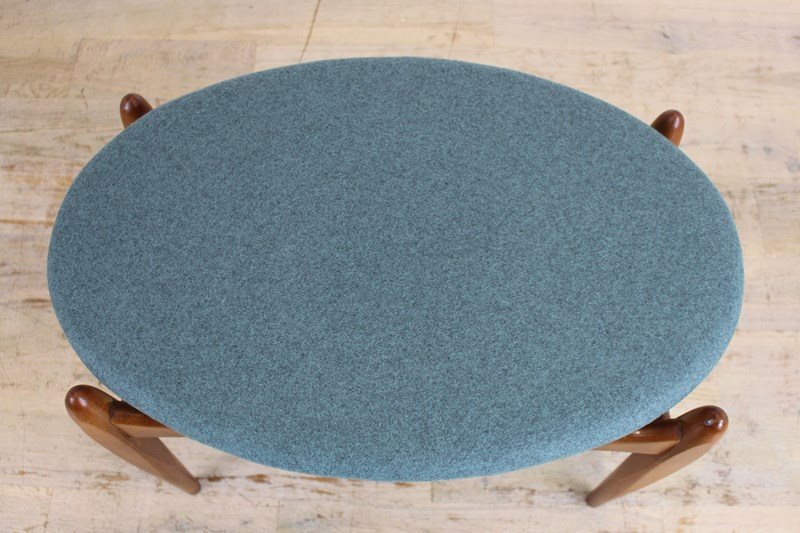 The wood is in good vintage condition, it does have a few marks but has been cleaned and oiled. The seat has new foam and upholstery in a pure new wool.