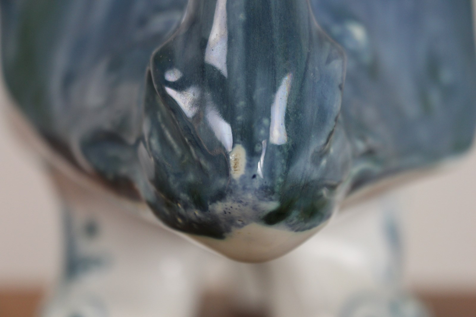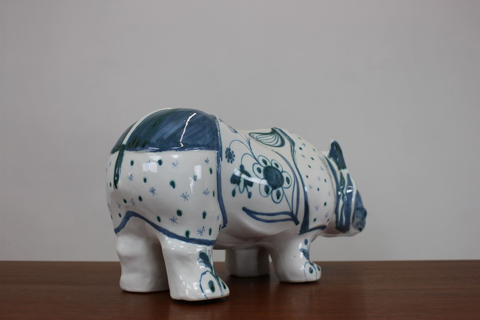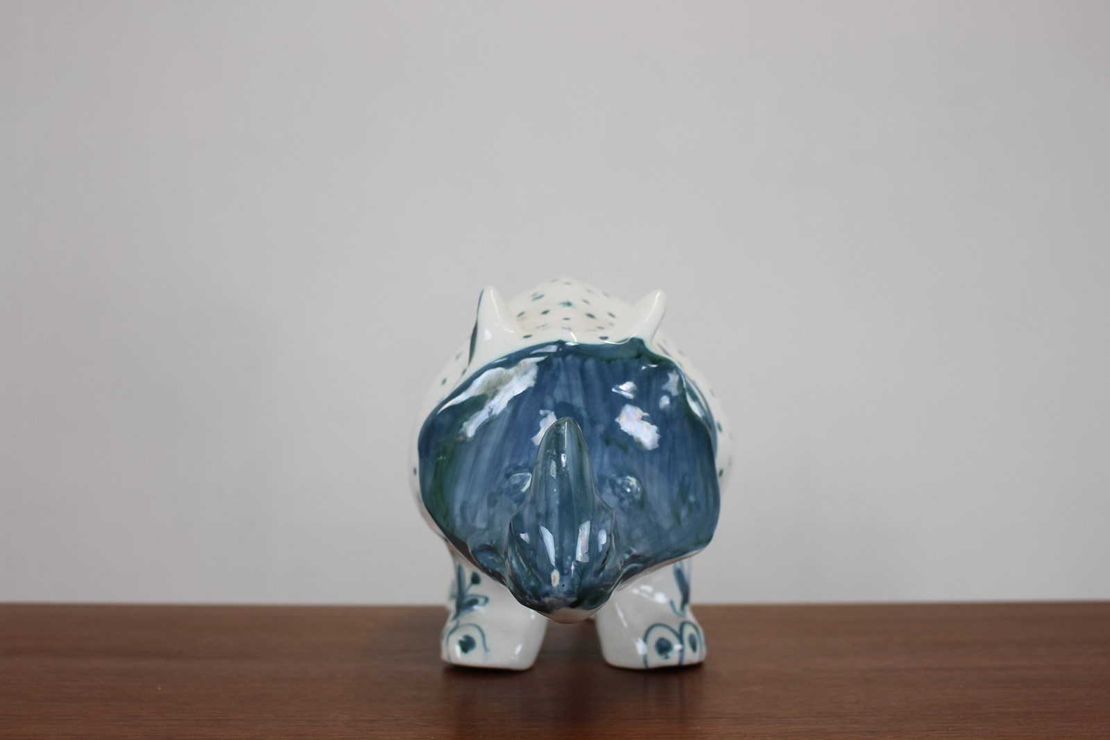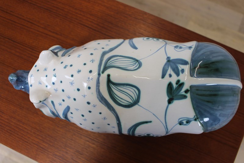 We thought Ryan was a good name, but you may want to give him or her a different name. David Sharp ran the Rye Pottery for many years and came up with various animal models in the late 1960’s and early 1970’s. The decoration is often in this lovely blue and white pallet, but some are in other colours, but the designs will vary.