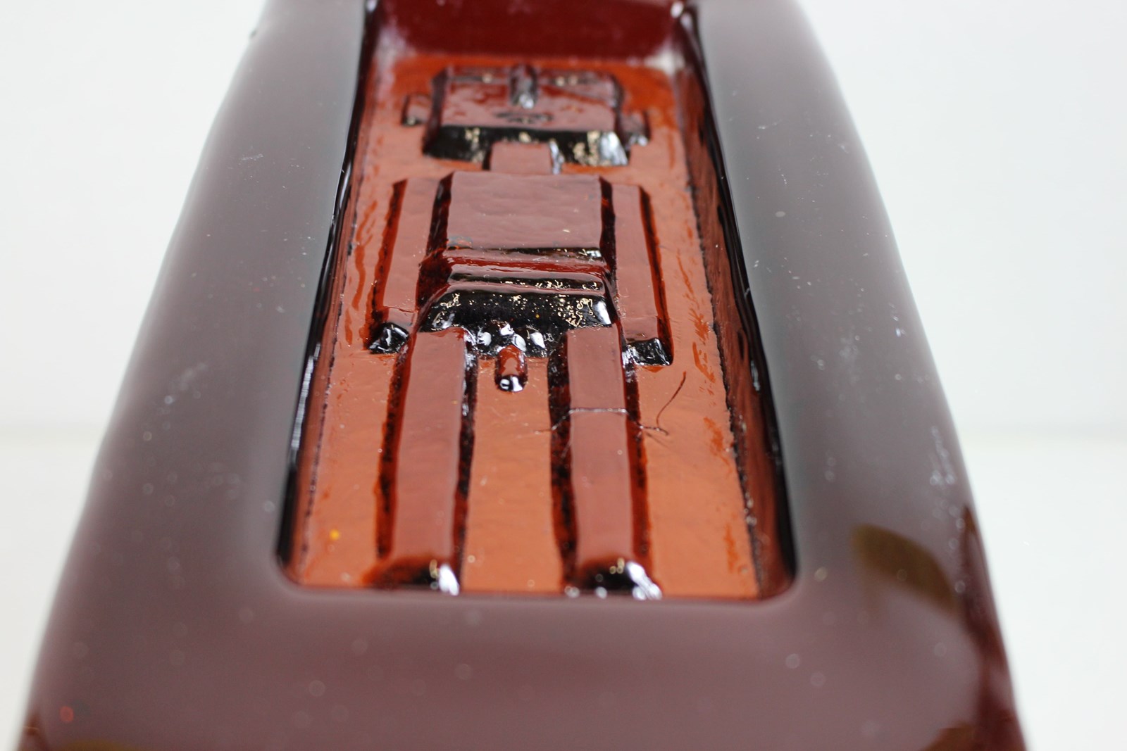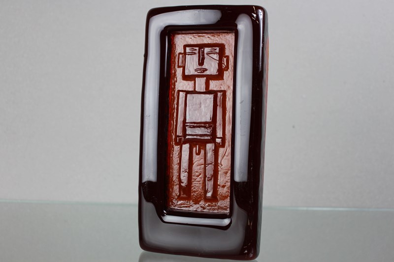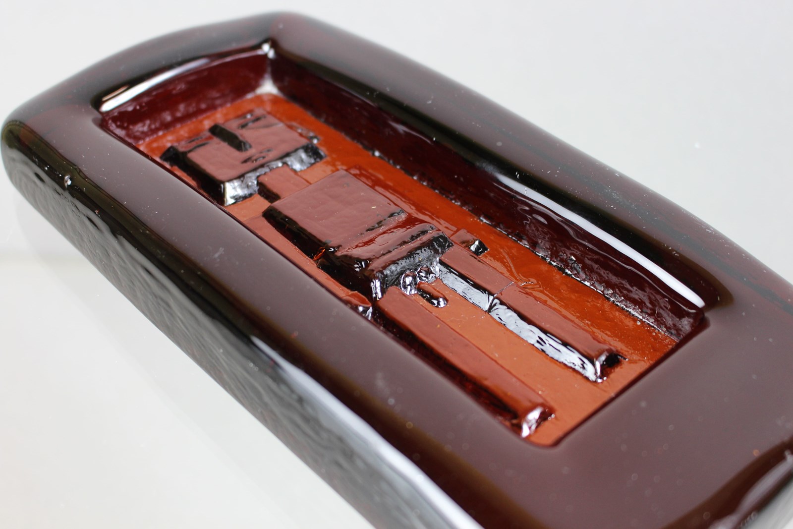 This we think is the largest size of these heavy moulded dishes designed by Erik Hoglund. This is the naked man design in amber.