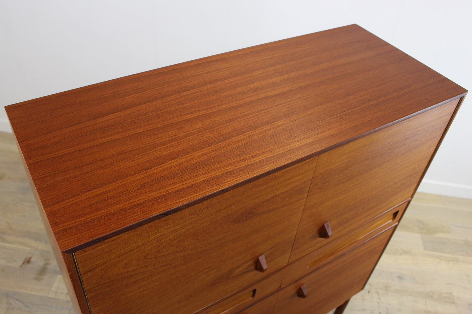 It was in good vintage condition when we bought it, but we gave it a light clean and oil as there were some small marks. It’s now looking great with no obvious marks or scratches. As with all vintage furniture you must expect to see some minor signs of wear if you look very closely.