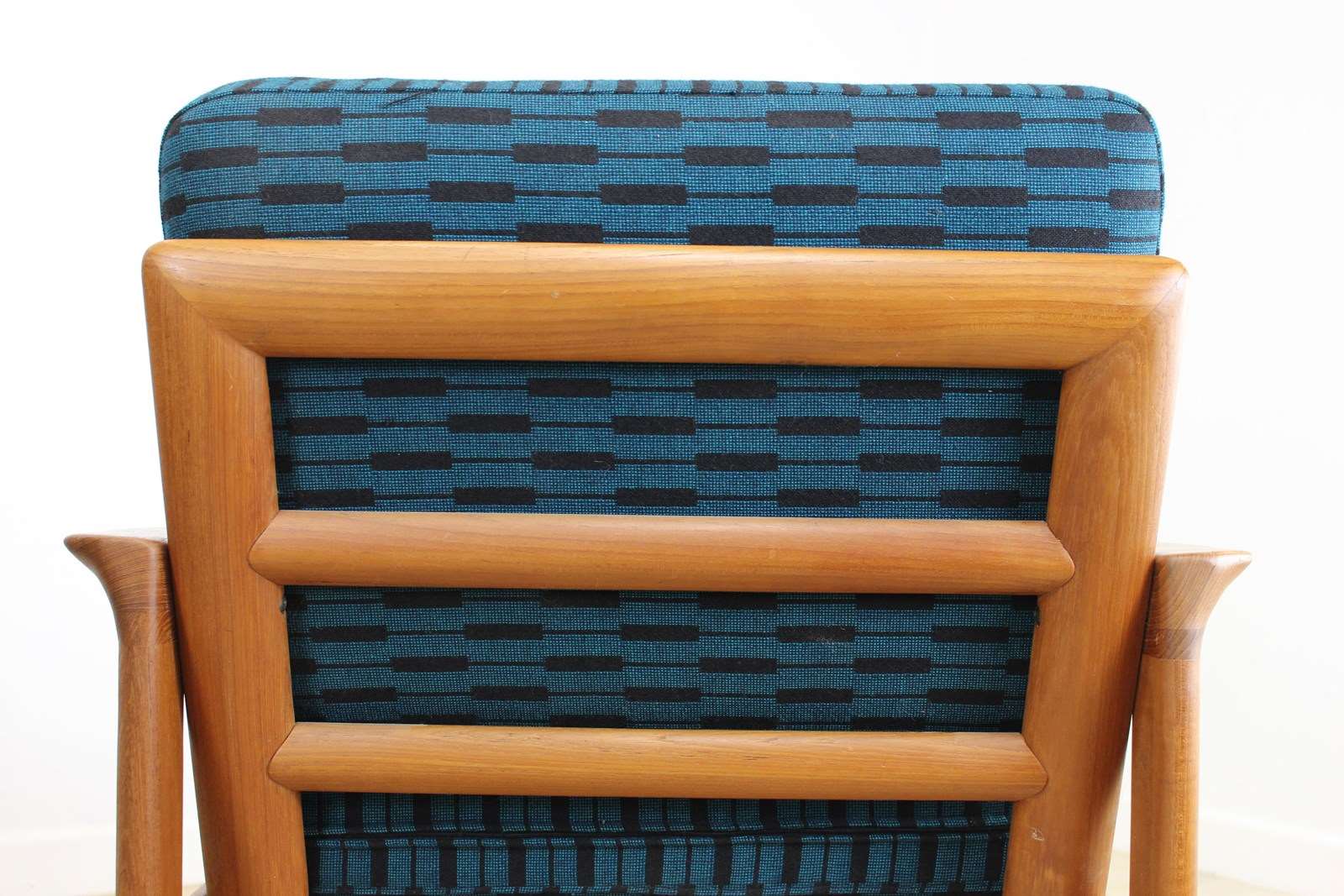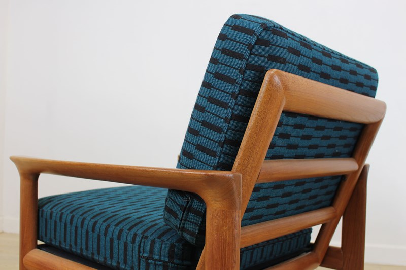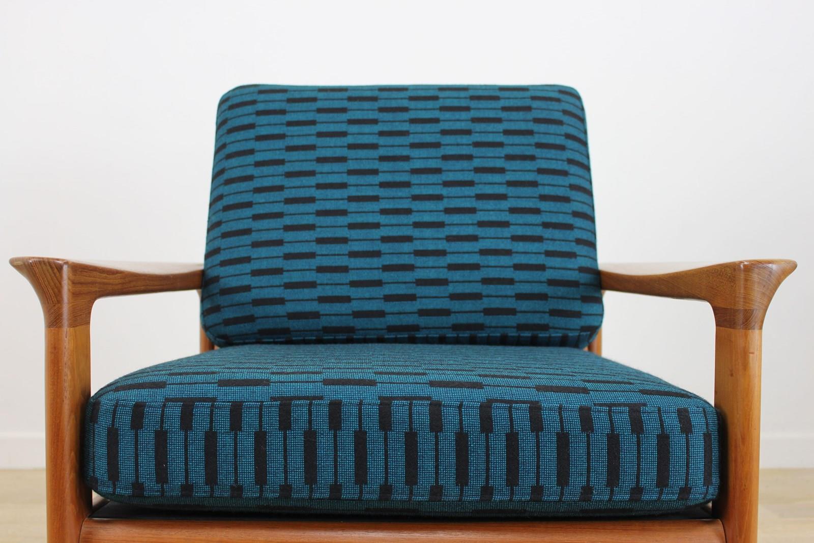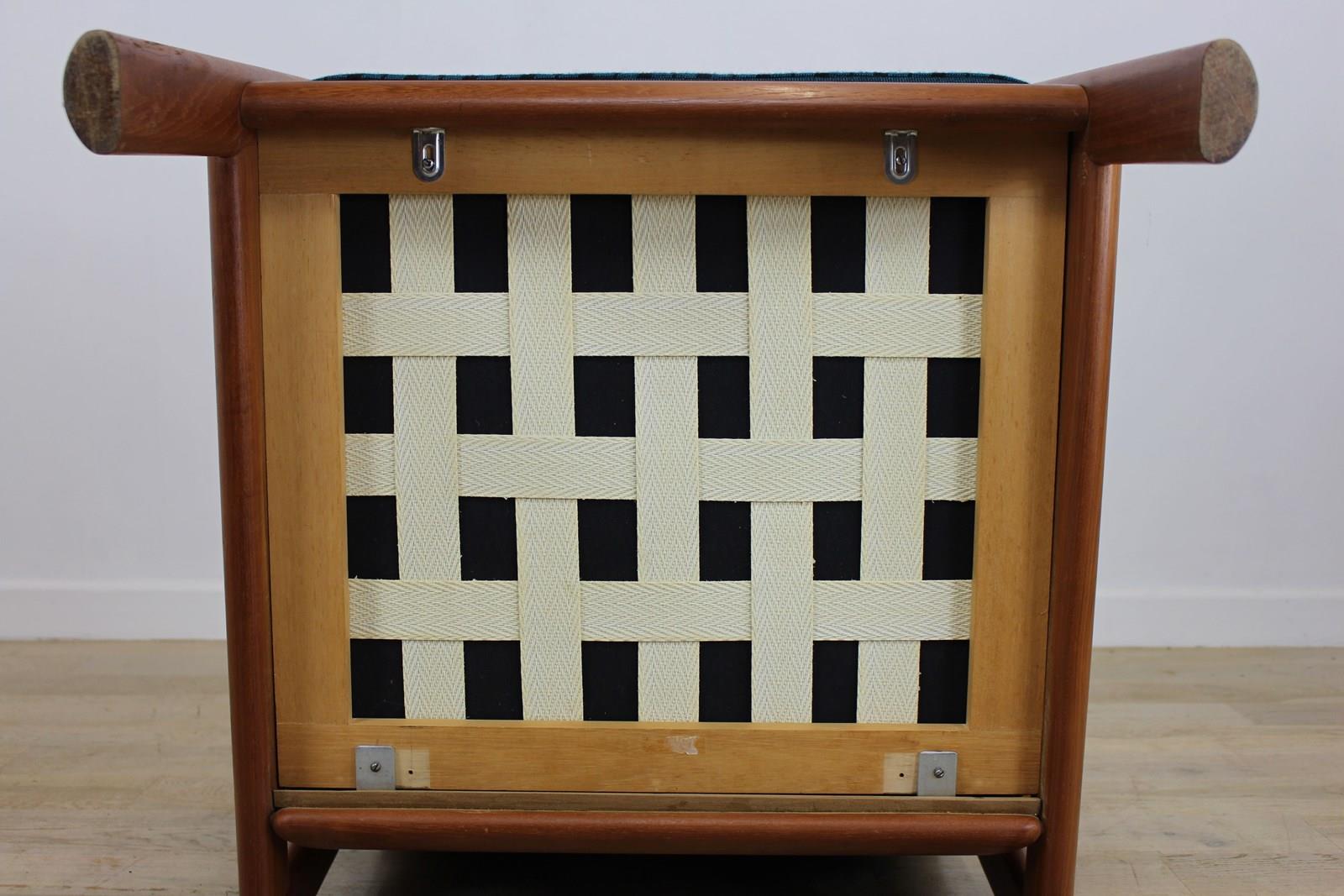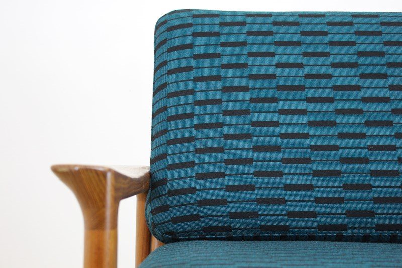 Teak fully cleaned and oiled and looking great. The zipped cushion covers are new ones made by our in-house upholsterer. As with all vintage pieces you must expect to see some minor signs of wear if you look very closely.