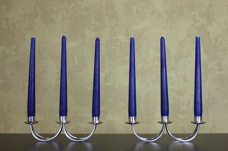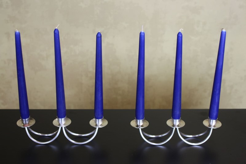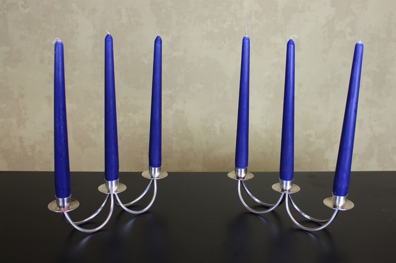 Pair Mid-Century Danish Silver Plated Candlesticks By A.P.Berg