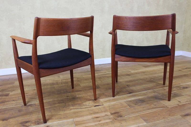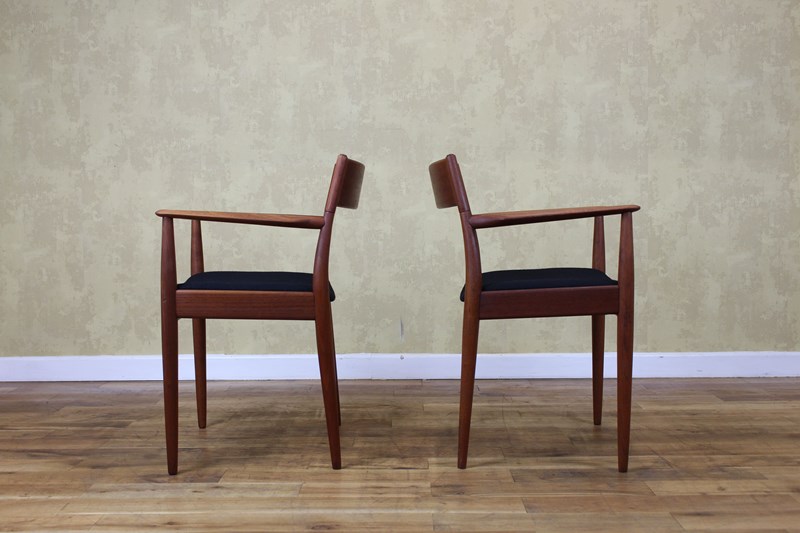 The teak frames have been cleaned and oiled and are looking great. As previously mentioned they have been newly upholstered in black wool. As with all vintage pieces you must expect to see some minor signs of wear if you look very closely.