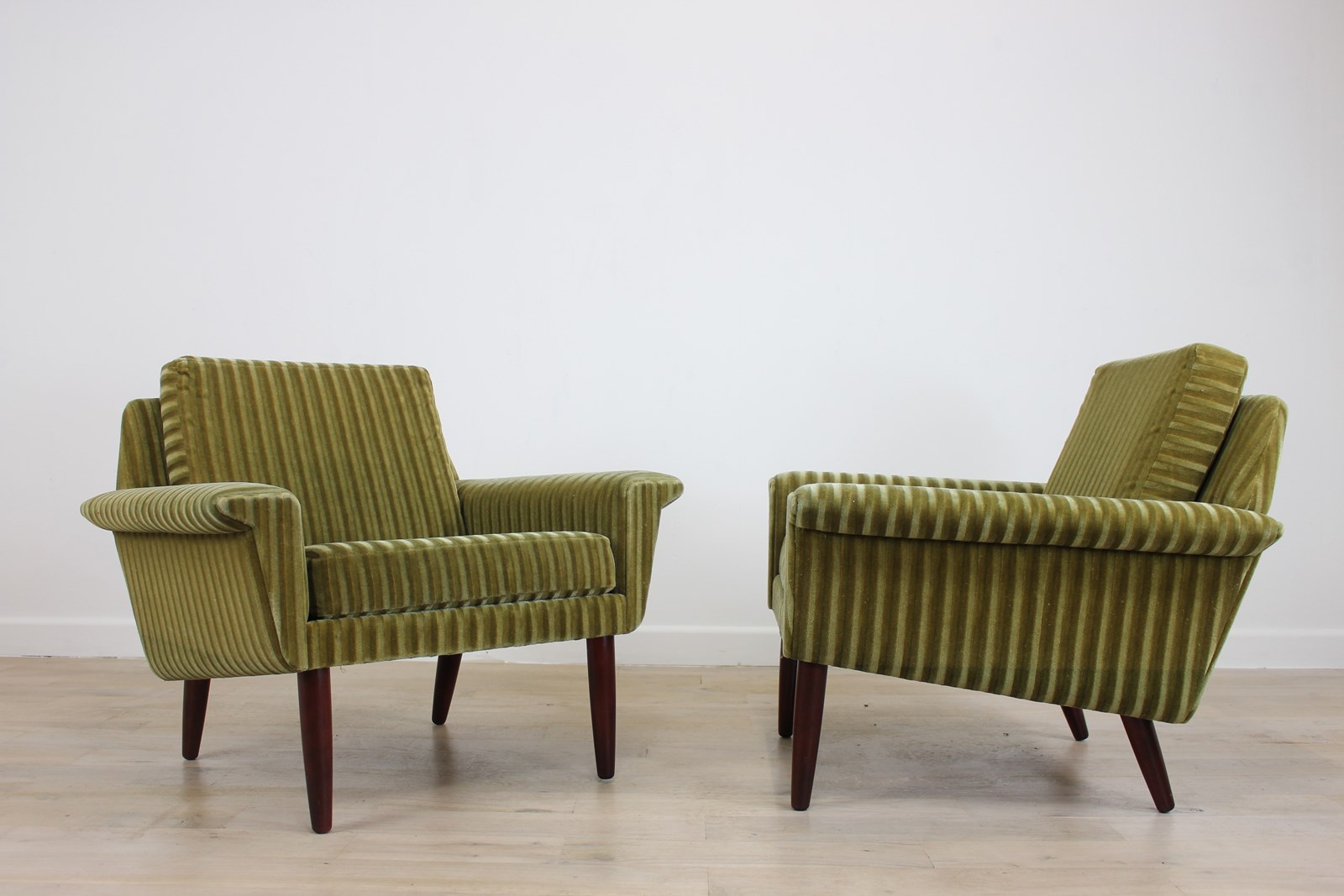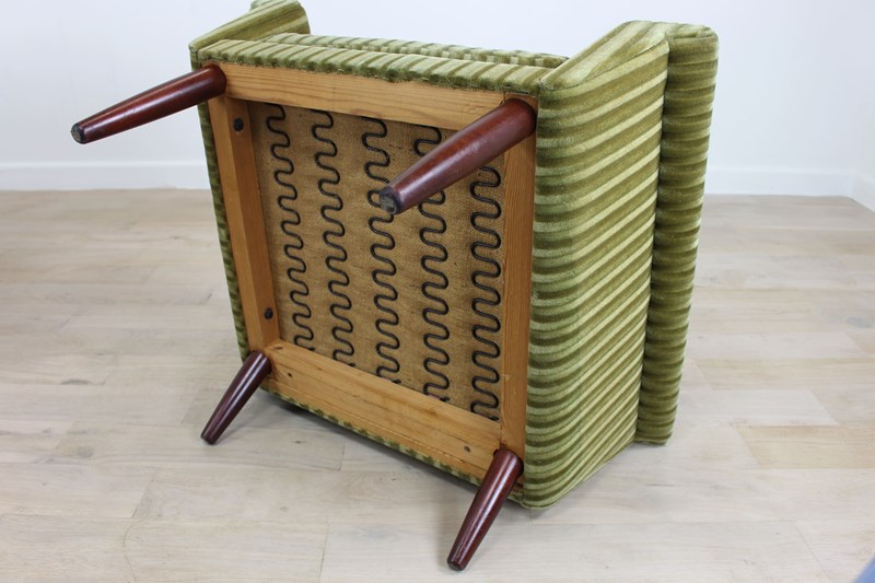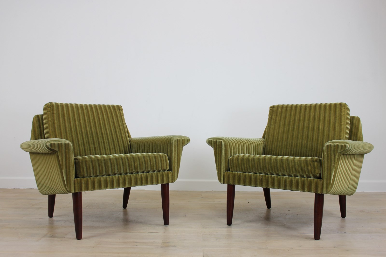 A lovely pair of Danish armchairs from the early 1960’s that are currently in their original upholstery. They need to be re-done to current UK Fire Regulation standards but this gives you the opportunity to have them redone in the colour and fabric of your choice. On original turned teak legs which as with so many Danish upholstery unscrew .