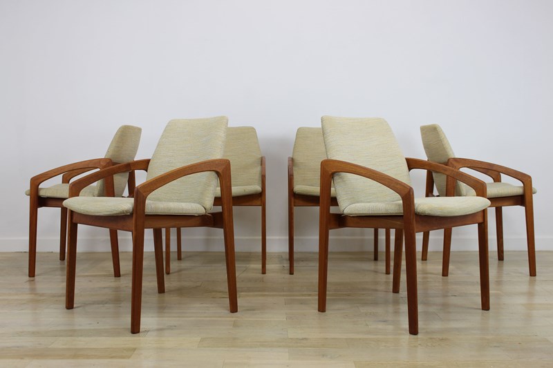 Set Of 6 Danish Teak Chairs Designed By Henning Kjernulf For Korup