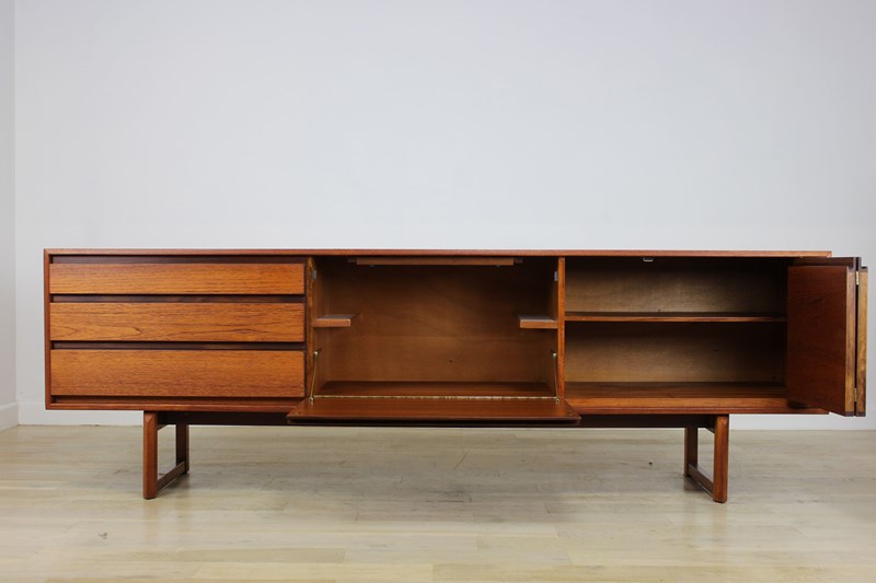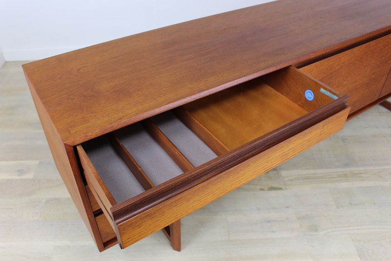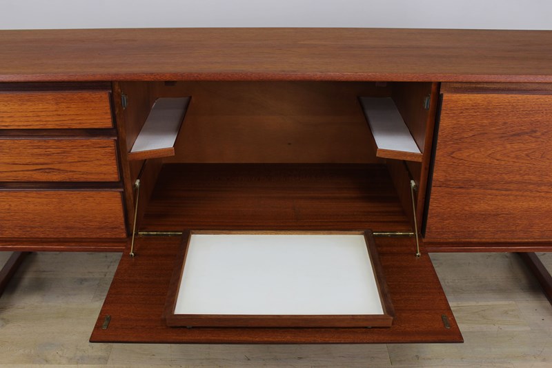 This model is in our top 10 favourites of pieces of British teak from the 1960s. White + Newton of Portsmouth employed around 300 people c 1970, and were a medium sized maker of contemporary pieces of a quality equivalent to that of G Plan and McIntosh. We rate their sideboards as being much more stylish and individual than their competitors at this time.