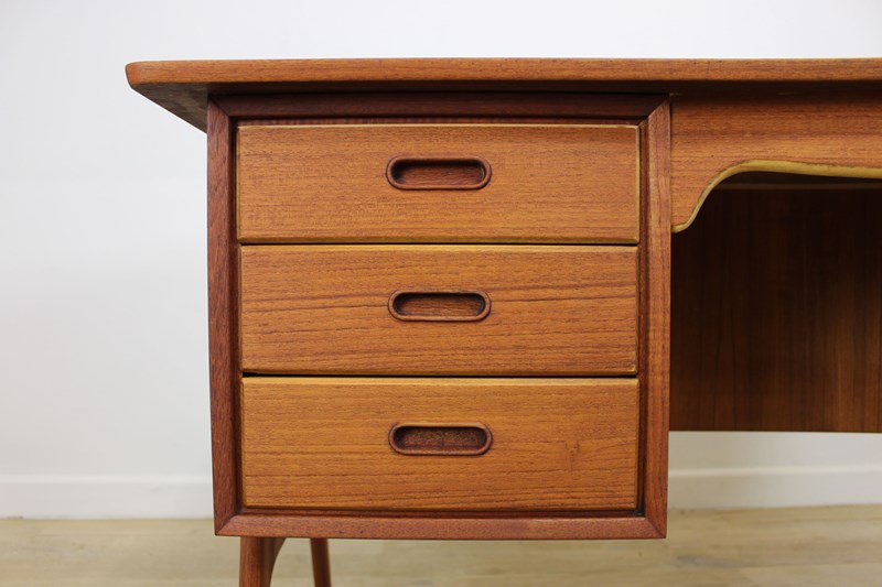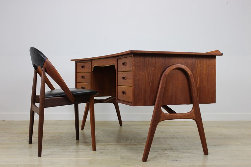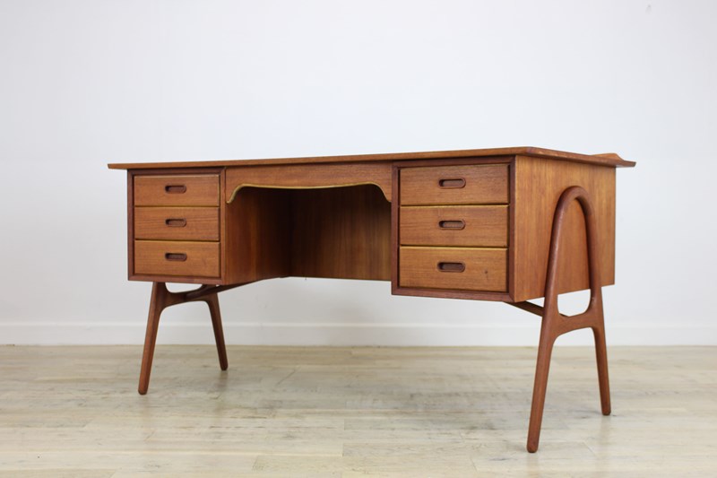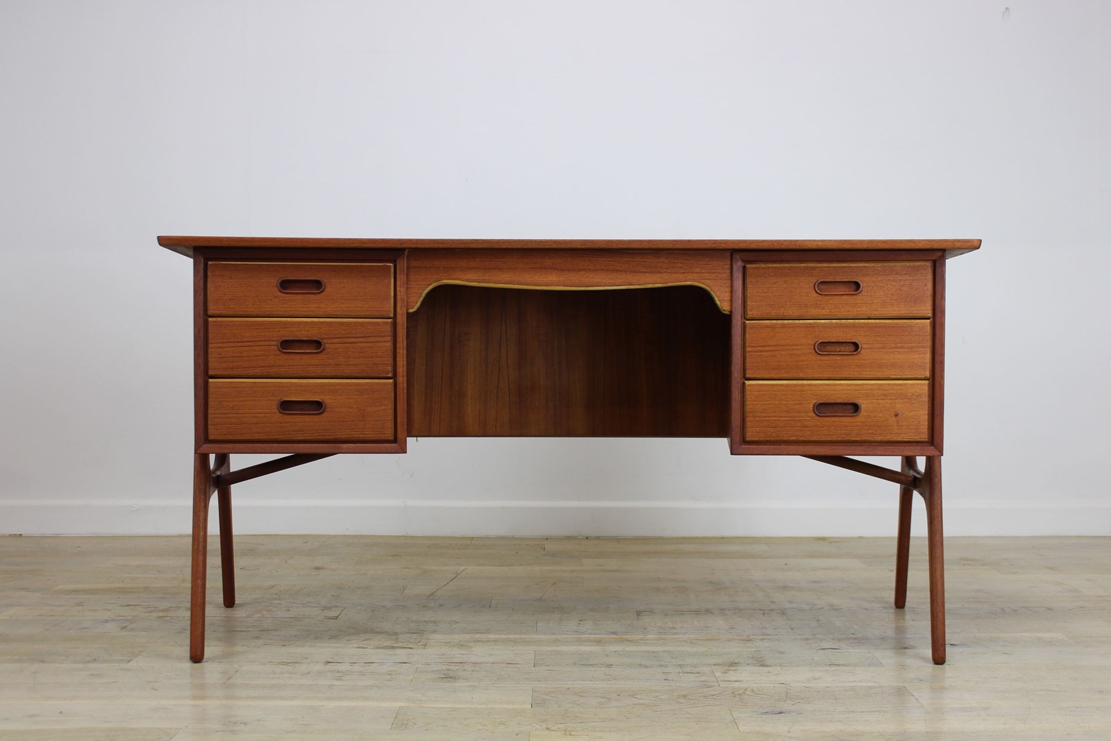 One of the most stylish Danish teak desks you’ll find for sale with it’s lovely hairpin legs and curved form. Designed by Svend Aage Madsen who is best known for the various desks he designed for the small maker Sigurd Hansen.