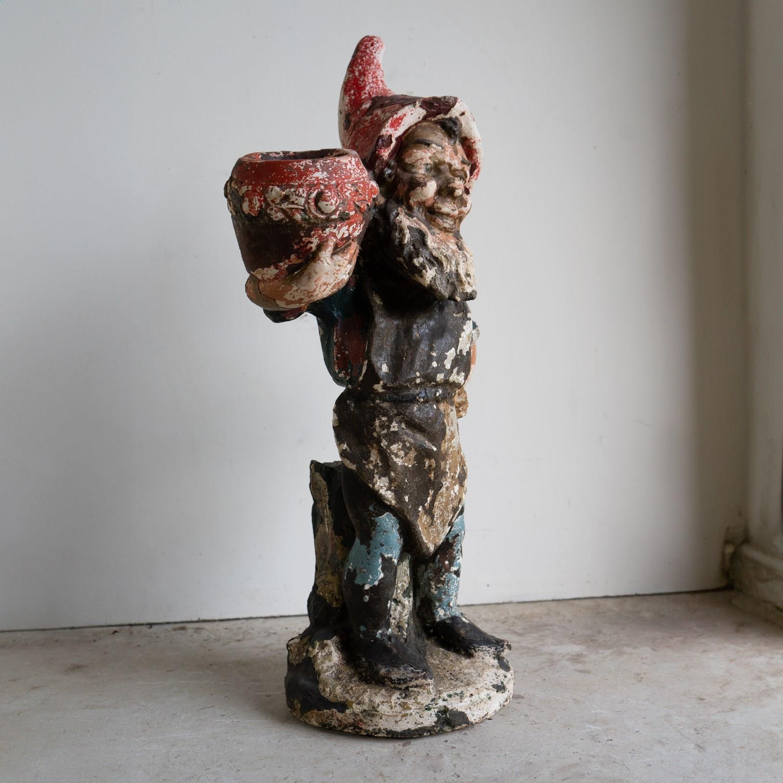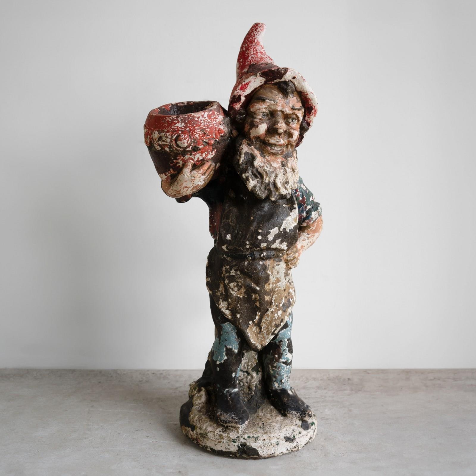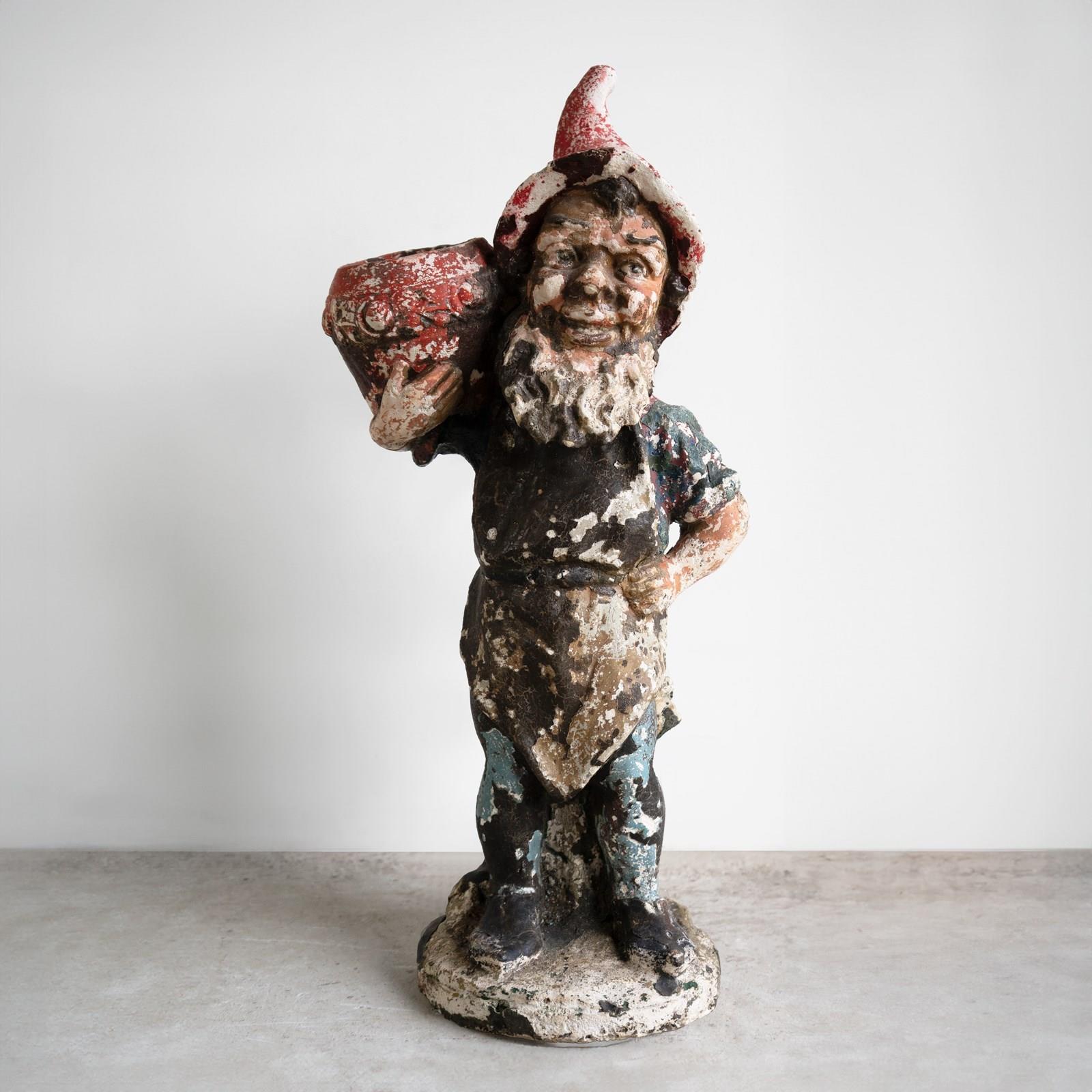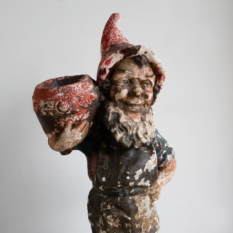 An early and larger-than-average example of a garden gnome.