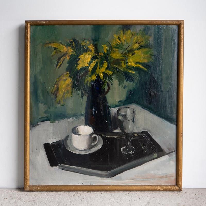Large Dutch Expressionist Still Life, Vintage Original Oil Painting, C. 1940S