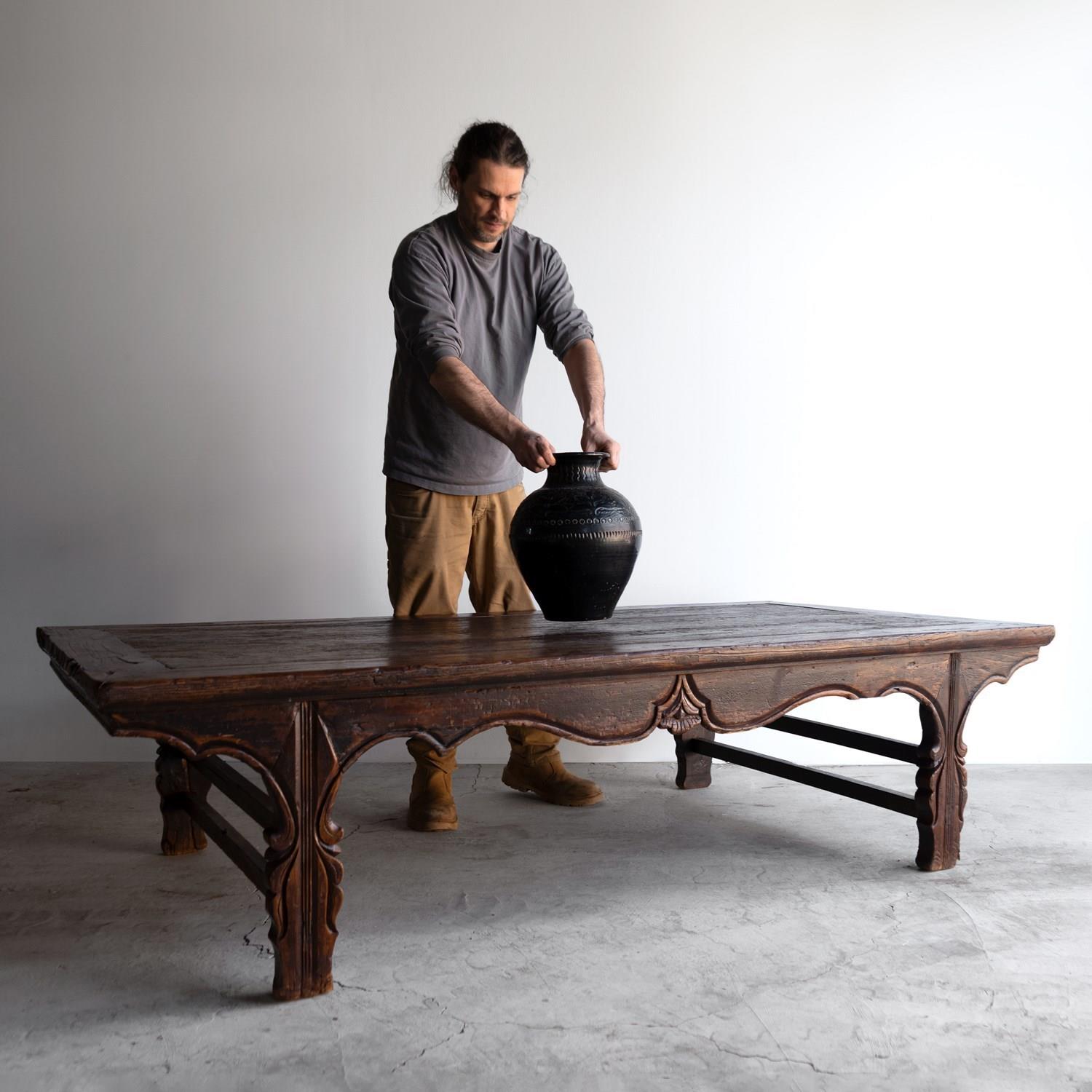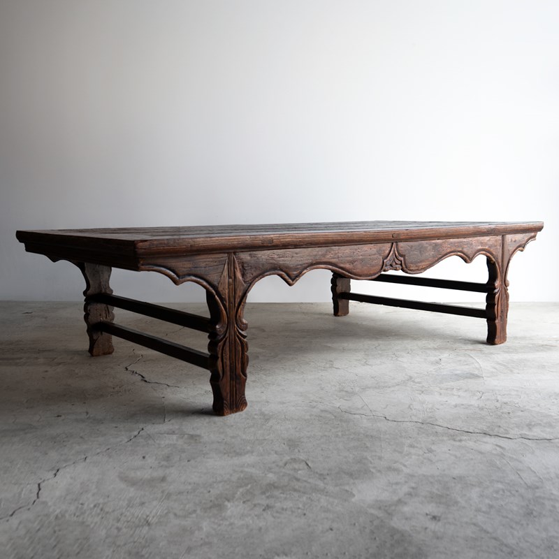 Antique Chinese Elm Low Table / Day Bed, Large Coffee Table, 19Th Century