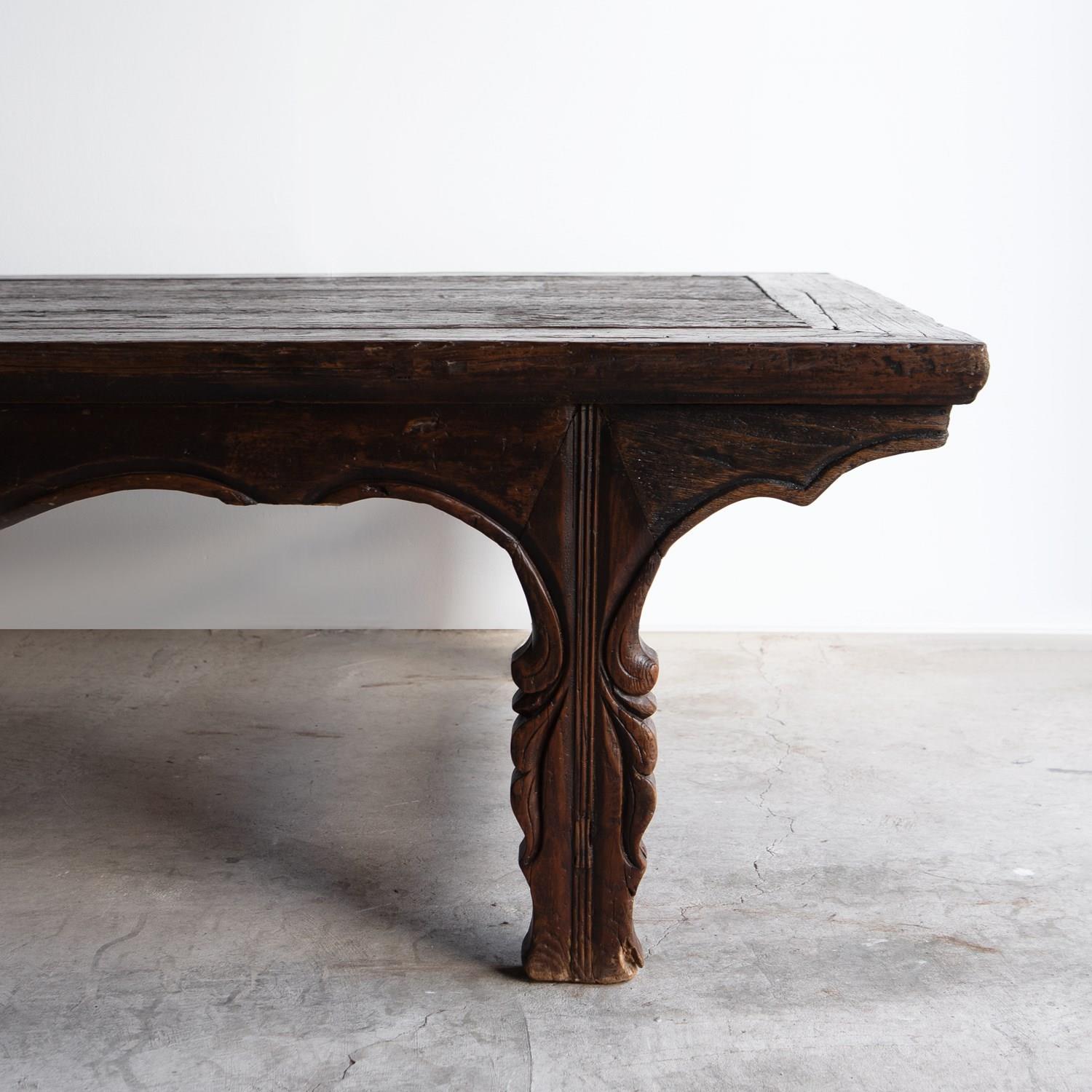 A larger than average Kang type table which would have originally sat over a heated brick platform (Kang), these tables were generally multi purpose, the focal point of the home and were used for communal dining, serving tea, as writing tables and sometimes slept on too.