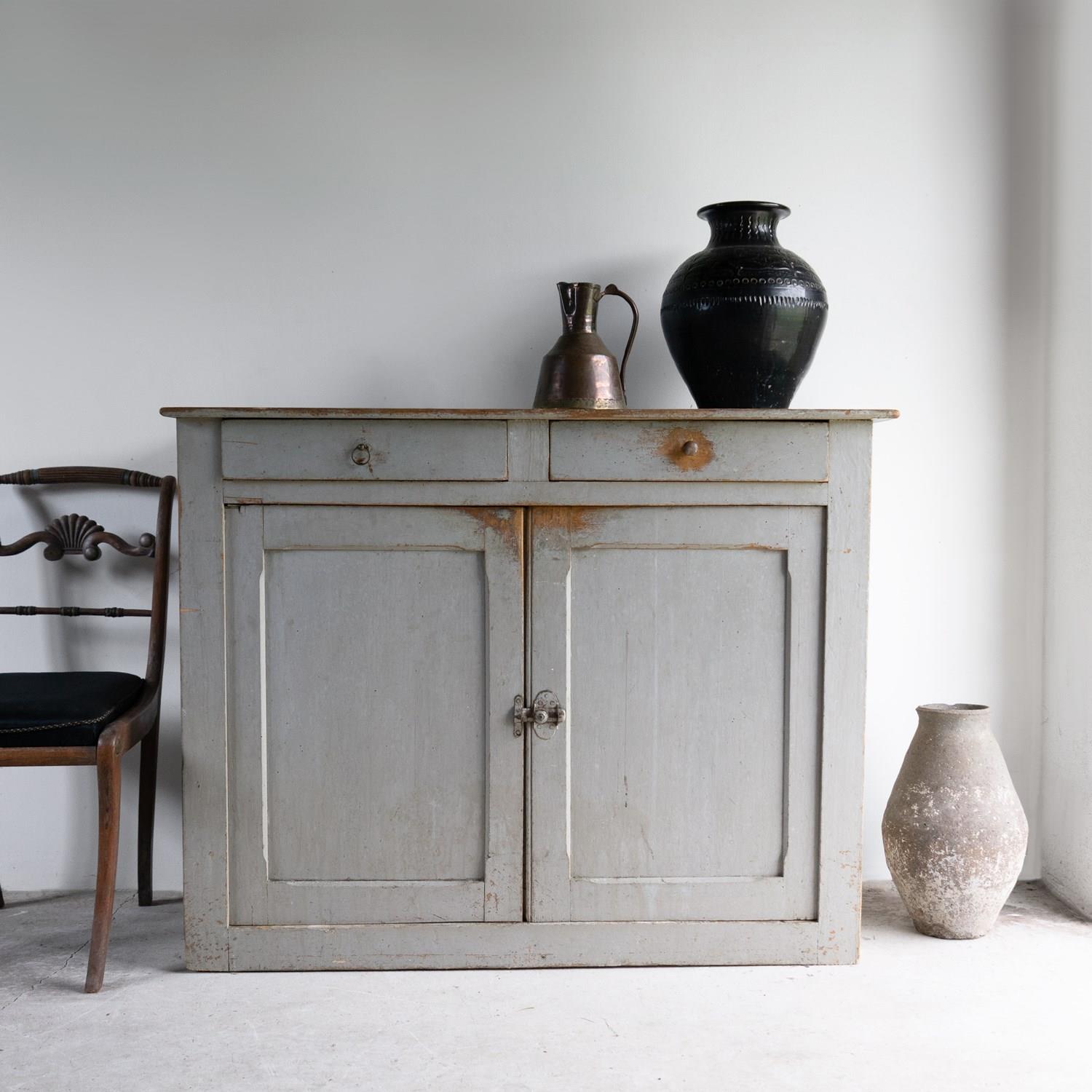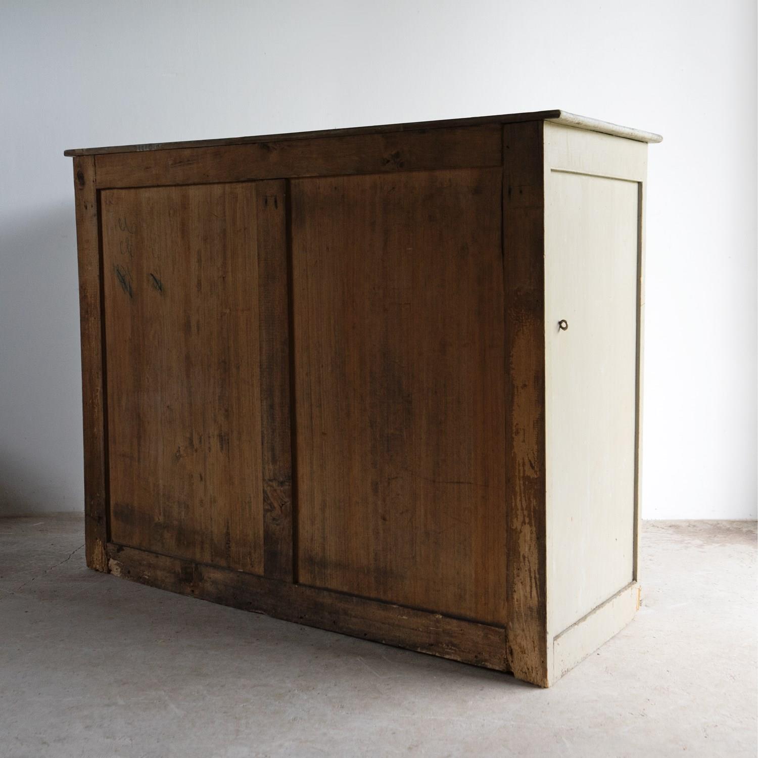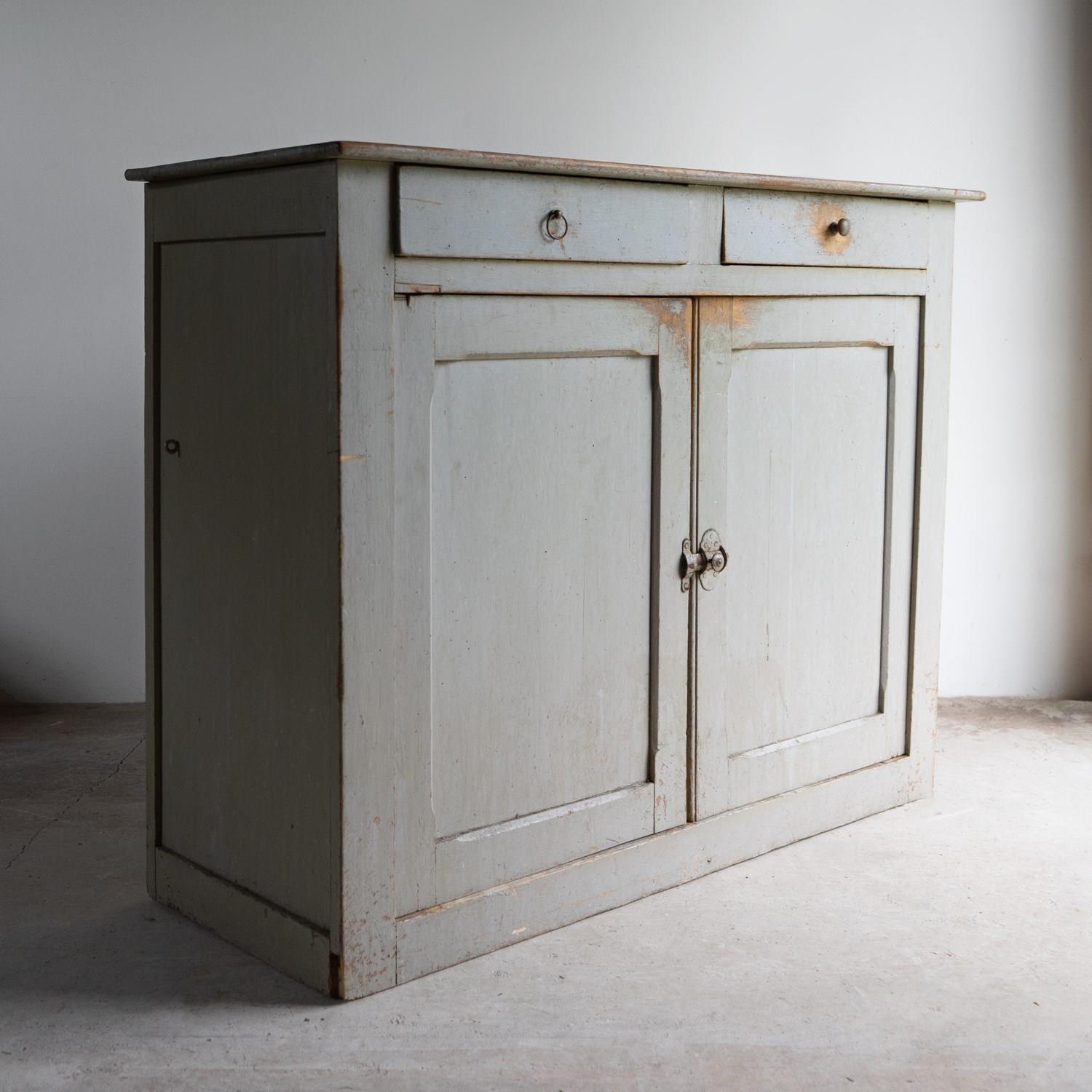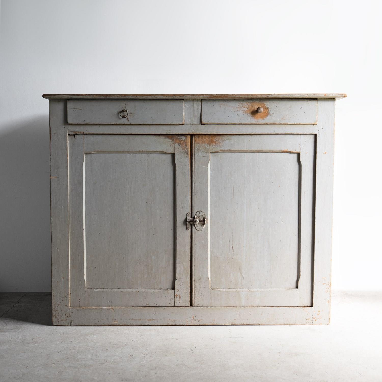 Antique French Grey Painted Walnut Buffet Cabinet, 19Th Century