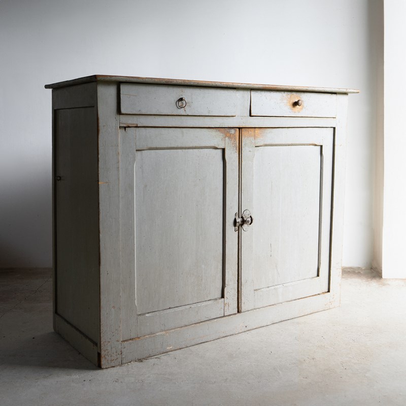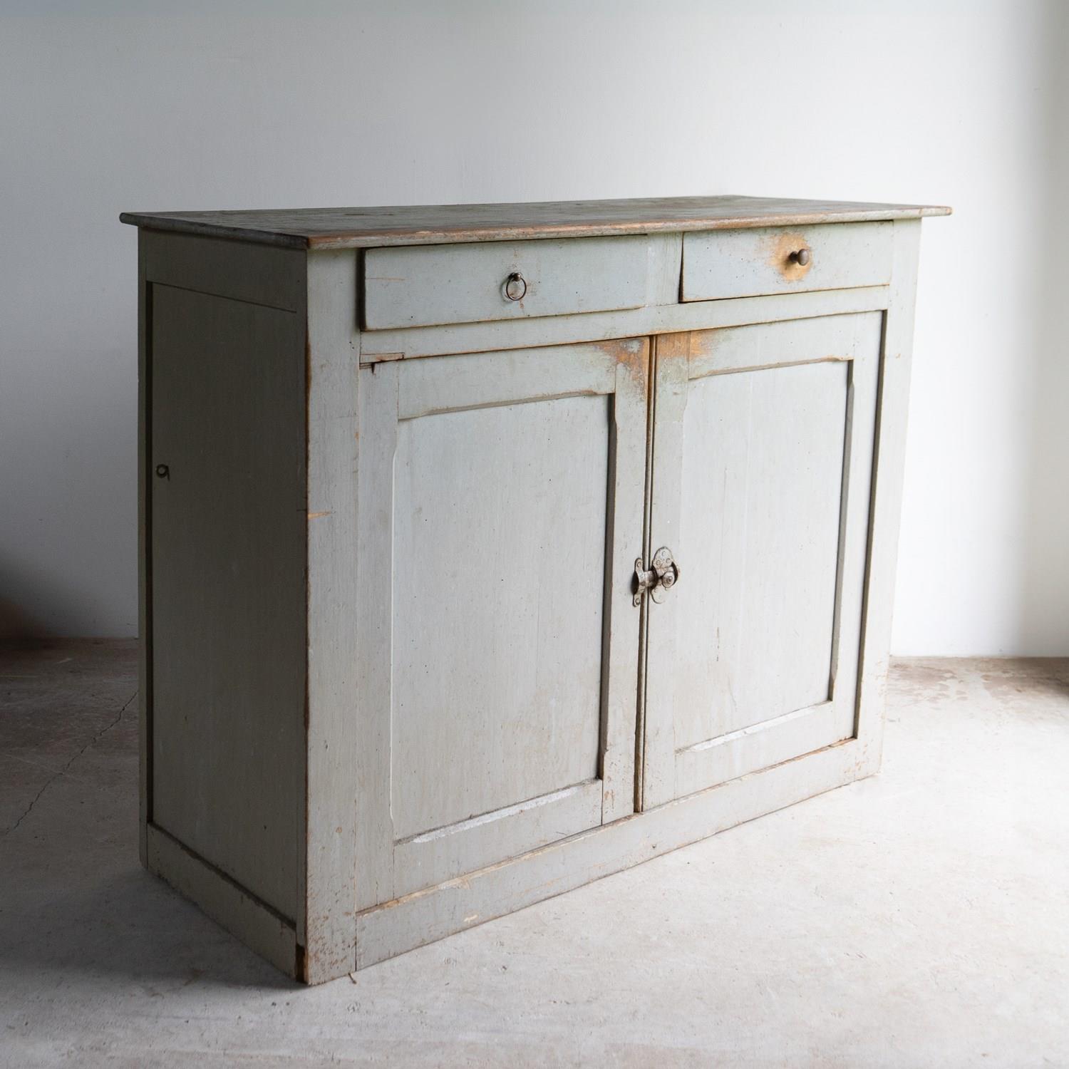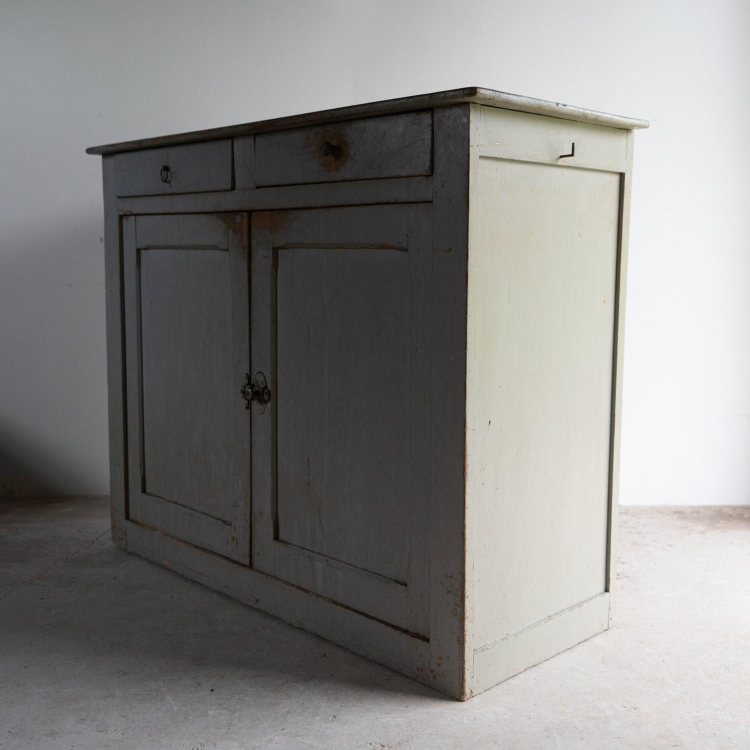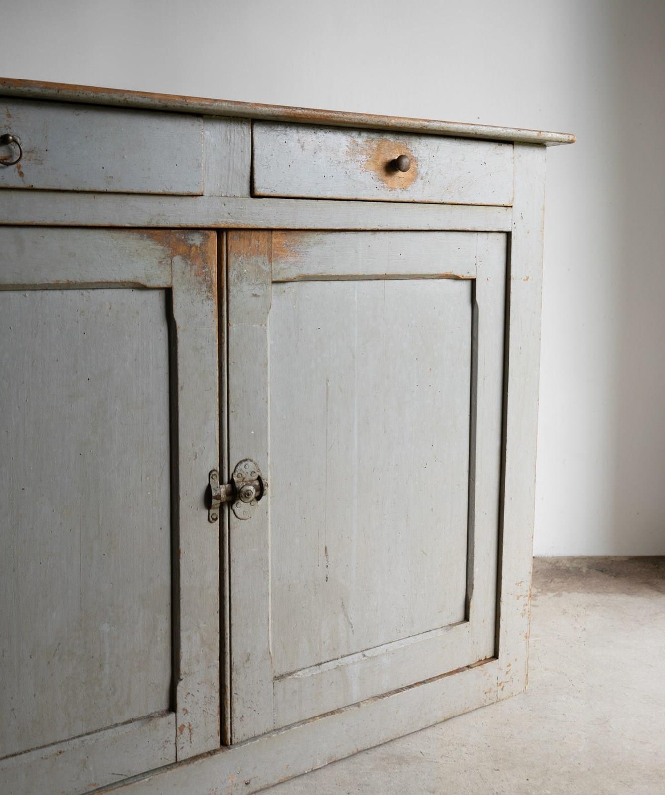 Antique French Grey Painted Walnut Buffet Cabinet, 19Th Century