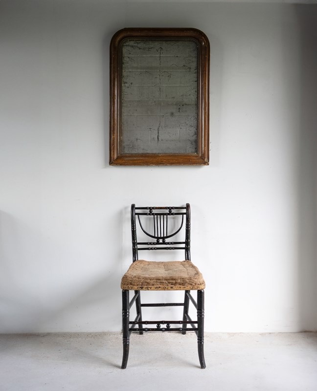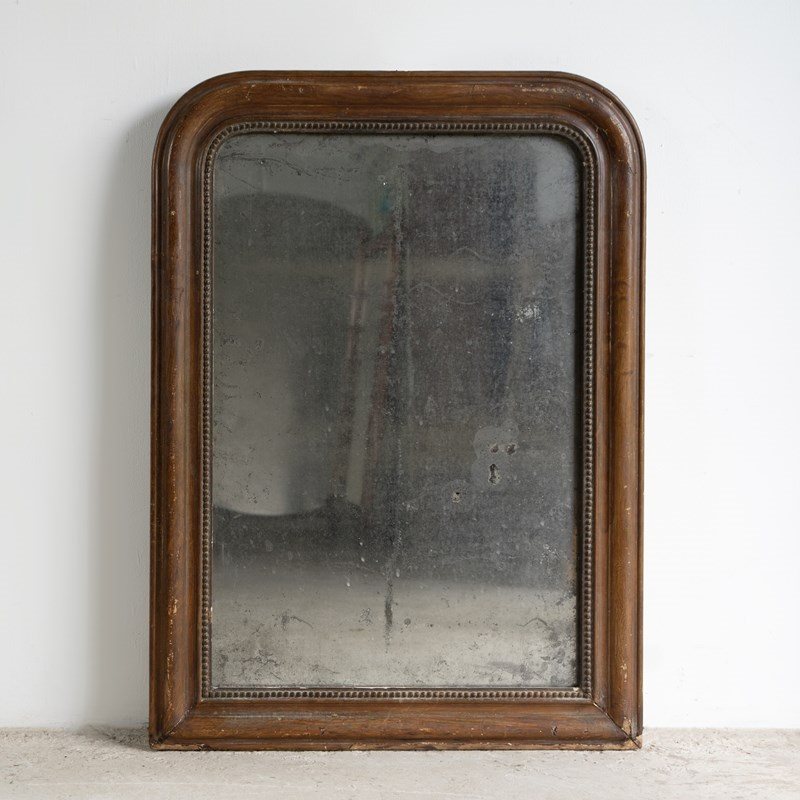 The frame is largely in good vintage condition; it is distressed in places, which we think adds a romantic charm to the piece. The original mirror plate is foxed; again, we think this adds to its aesthetic. The overall look is the reason we fell for the piece in the first place. There are some old, dead wormholes visible from the reverse; we have treated the mirror for good measure.