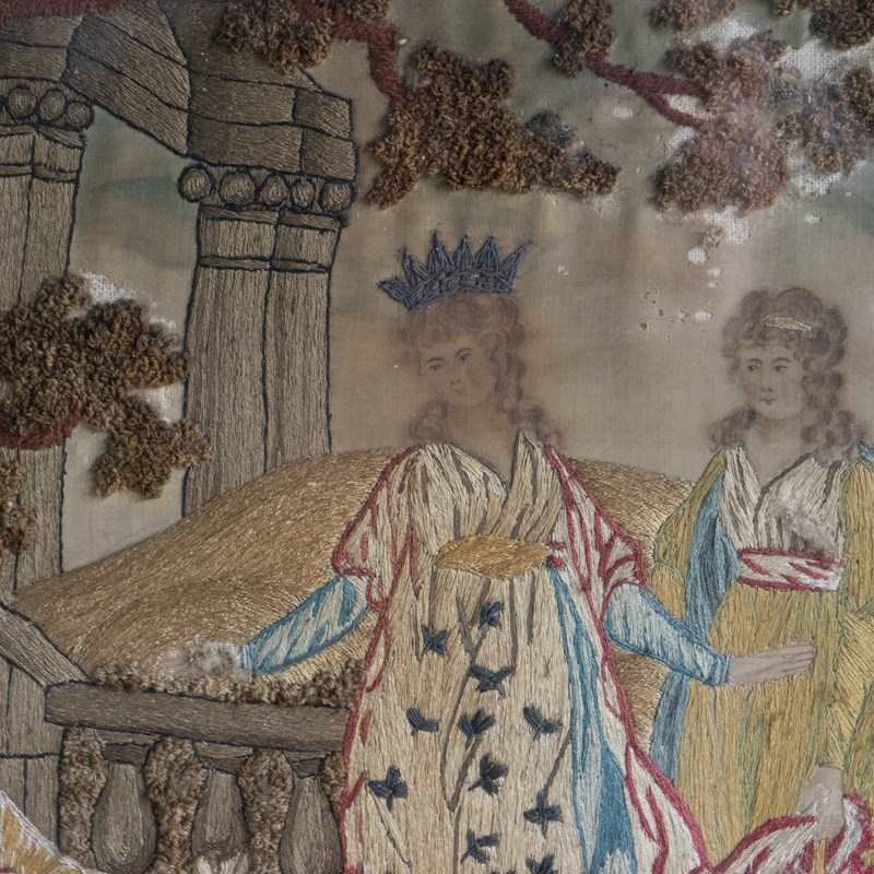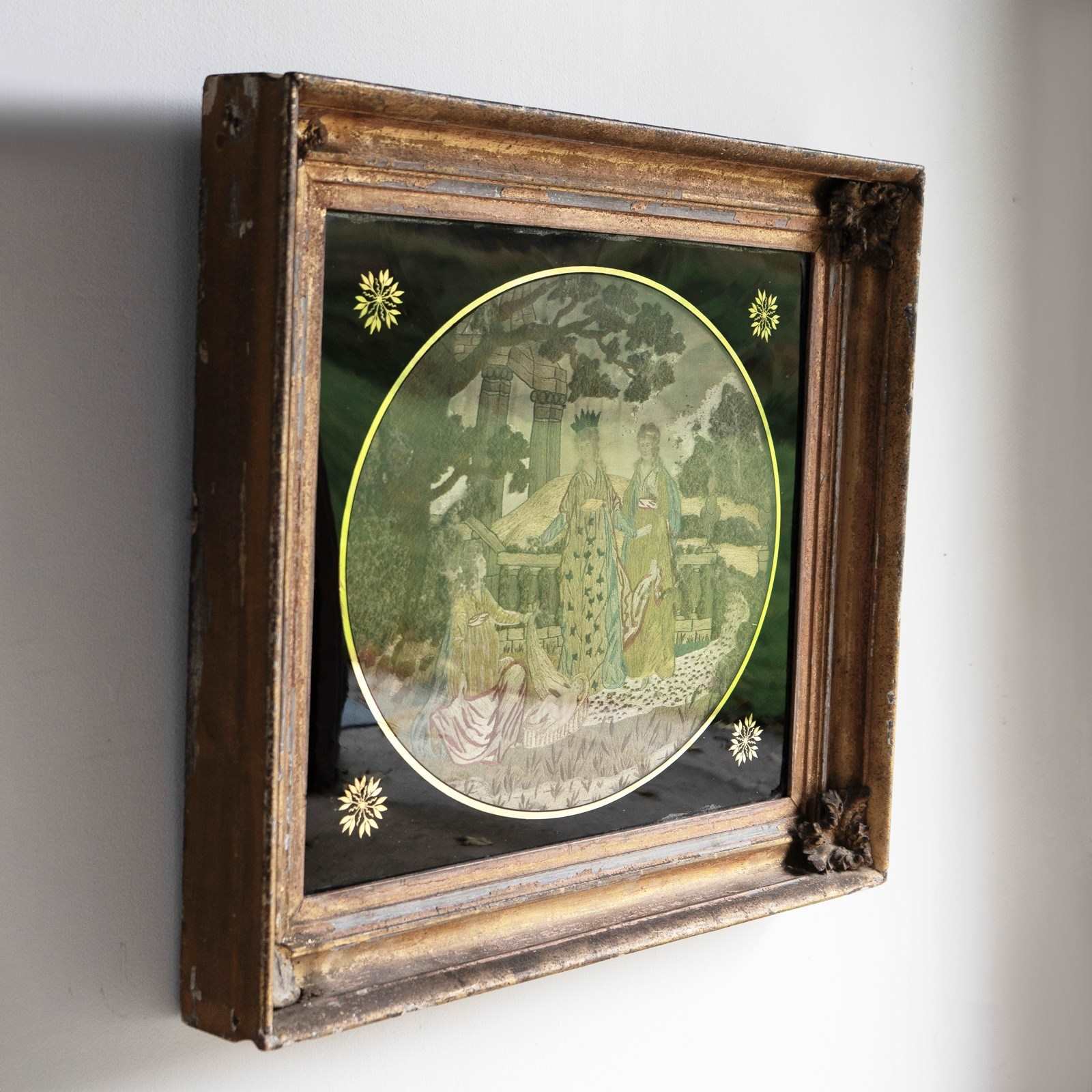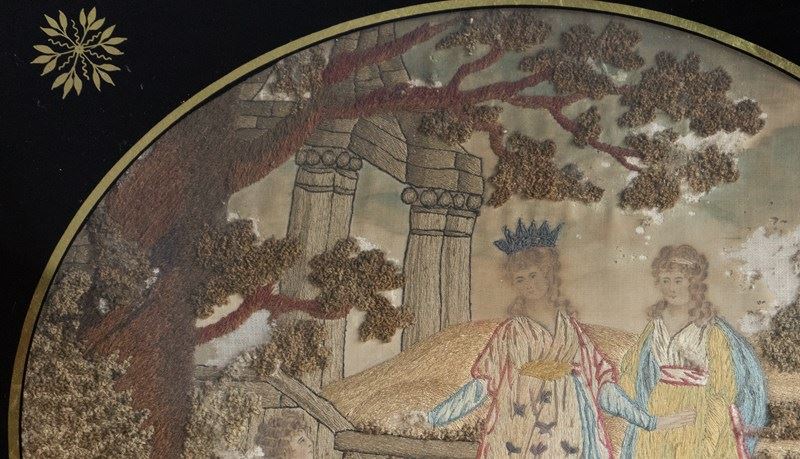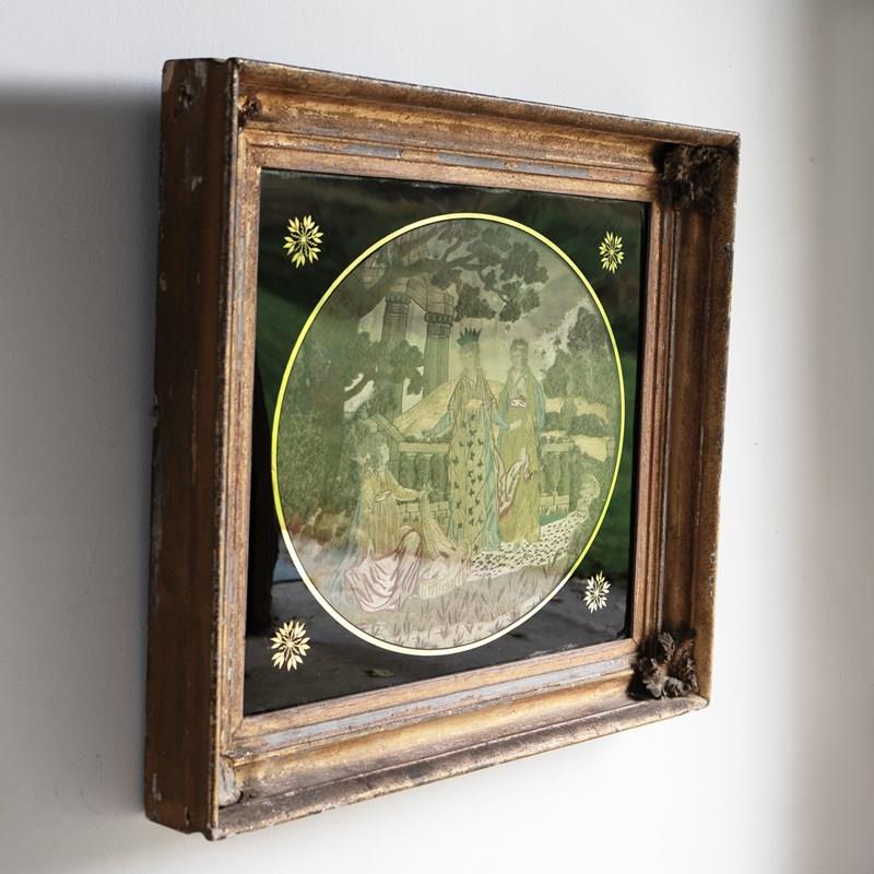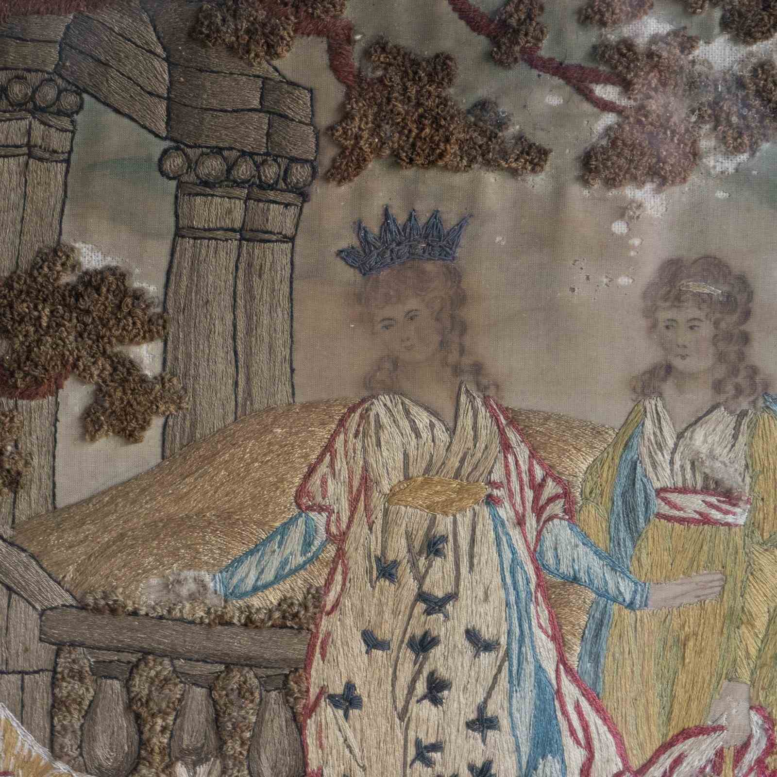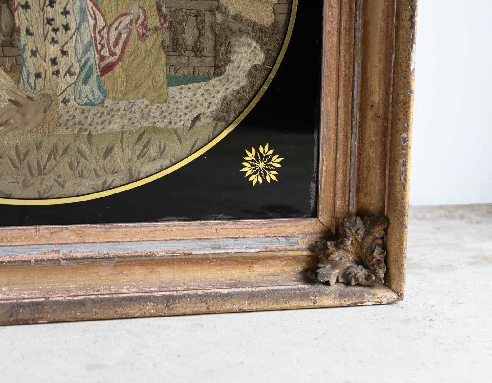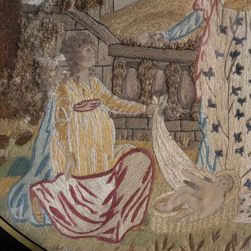 Antique Georgian Silkwork Embroidery, Moses In The Bullrushes, Verre Eglomise