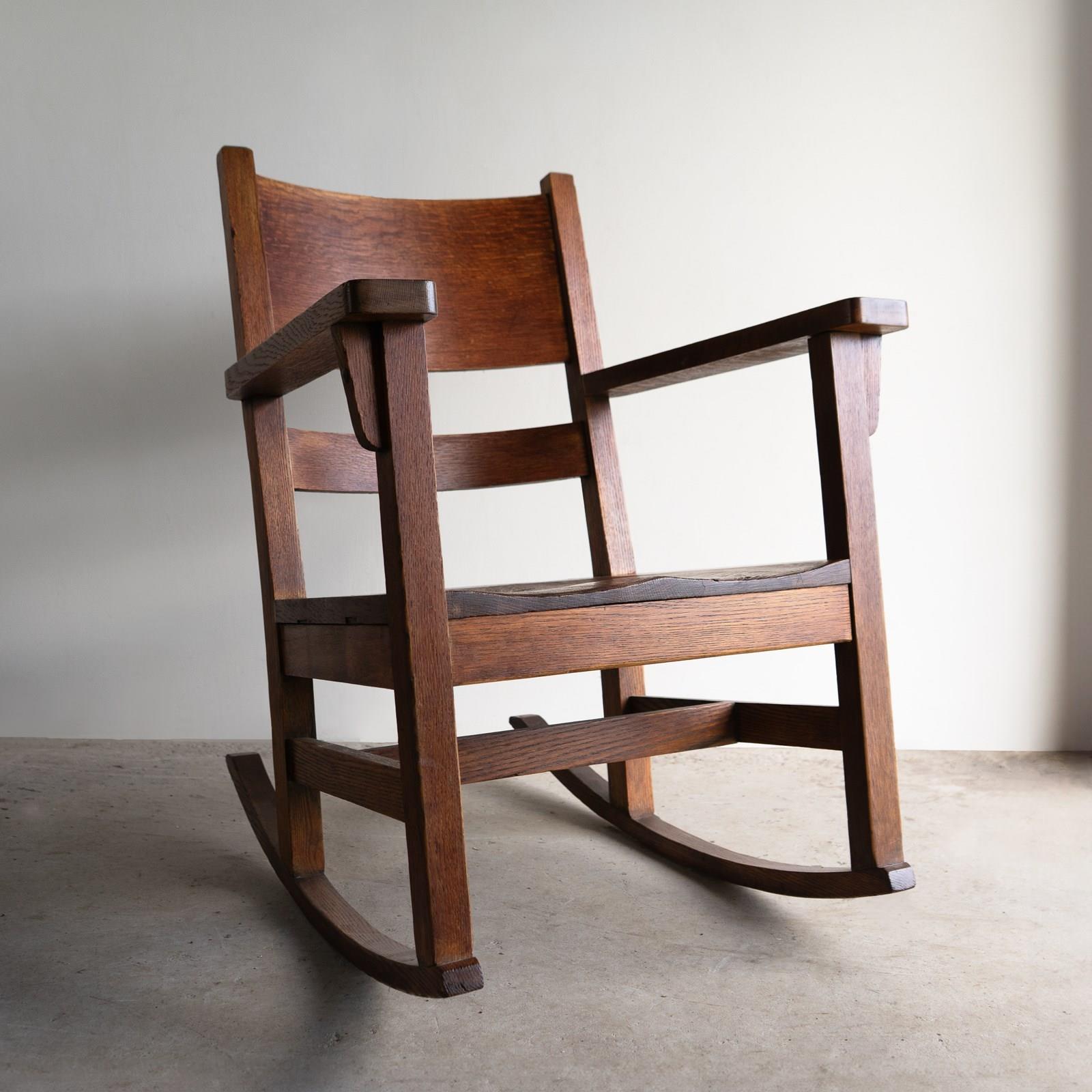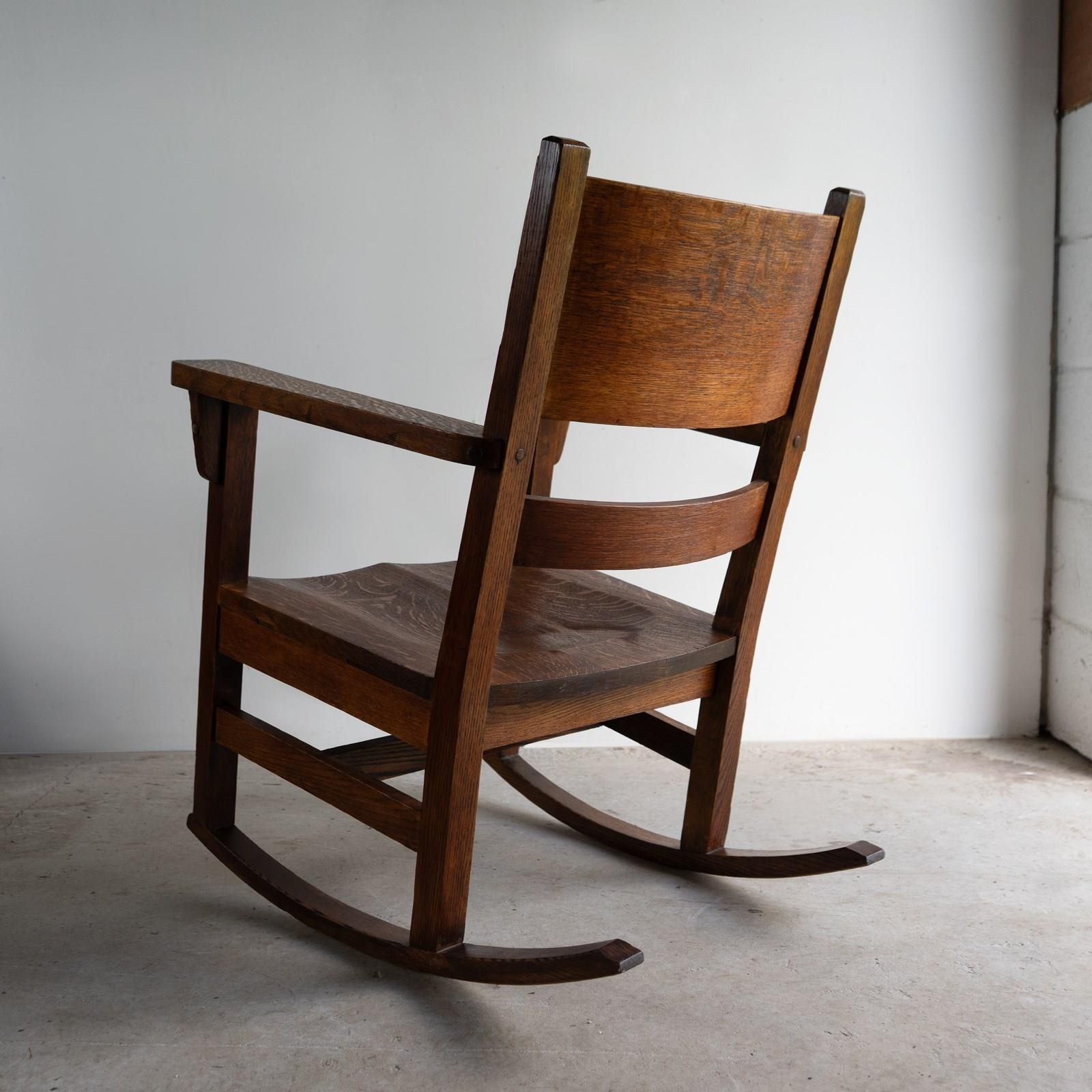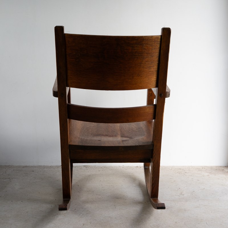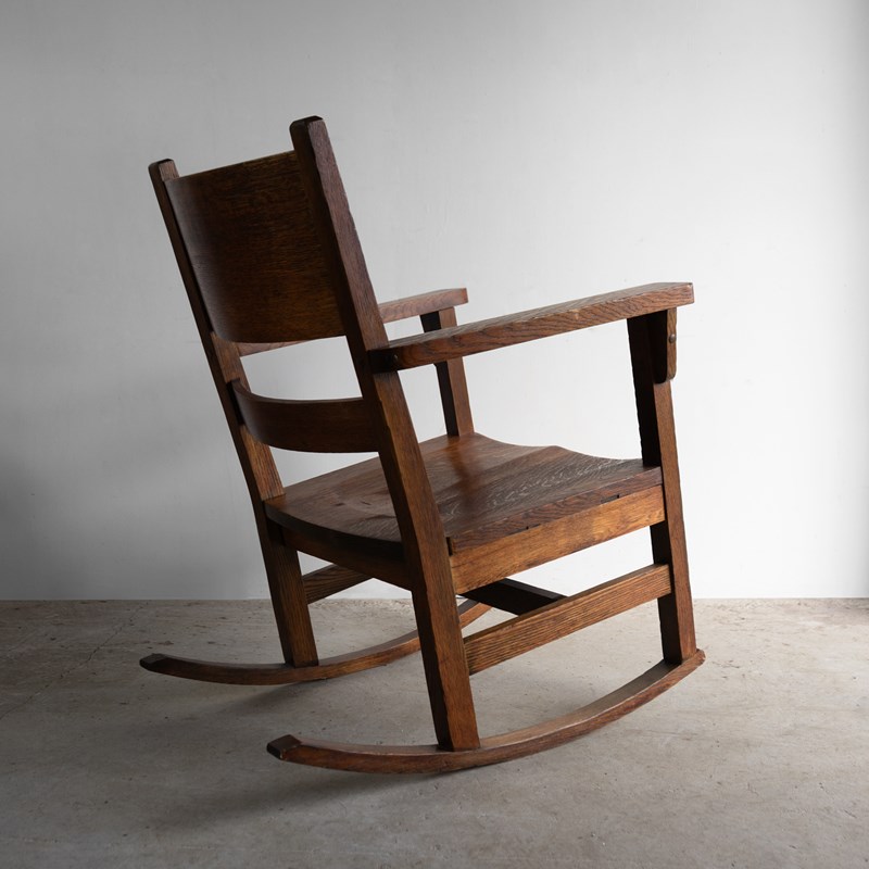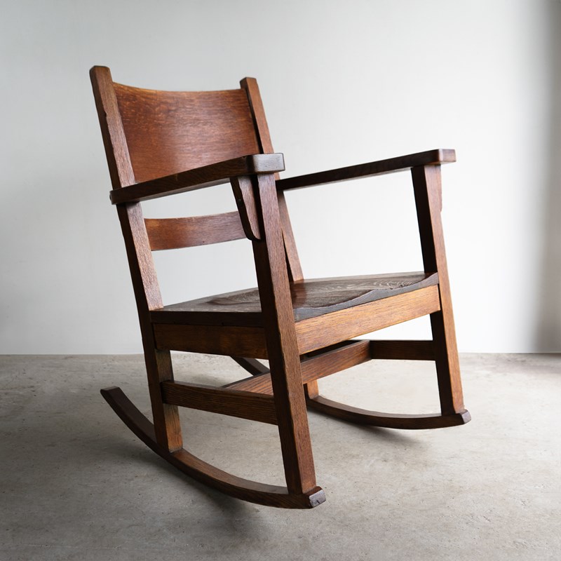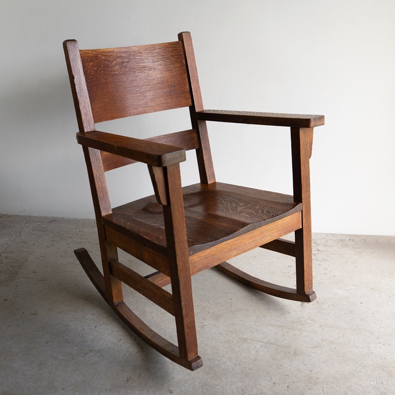 Antique Oak Arts And Crafts Rocking Chair, Manner Of Gustav Stickley, 20Th C