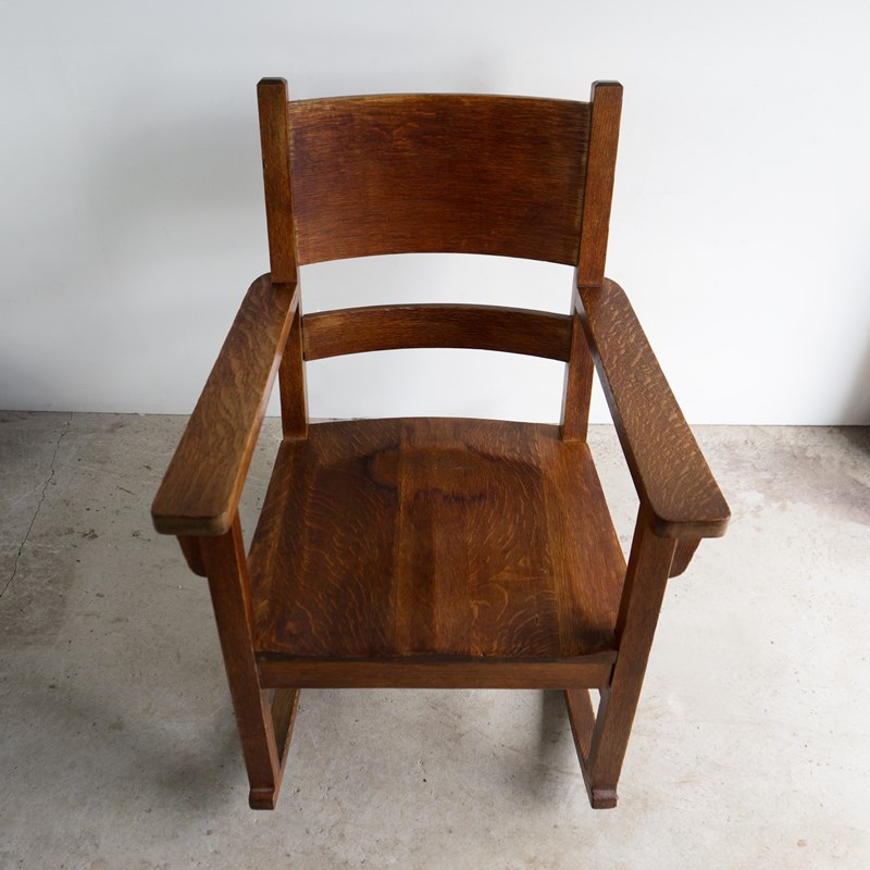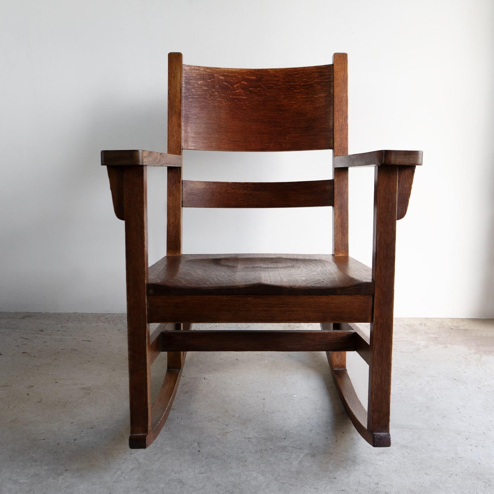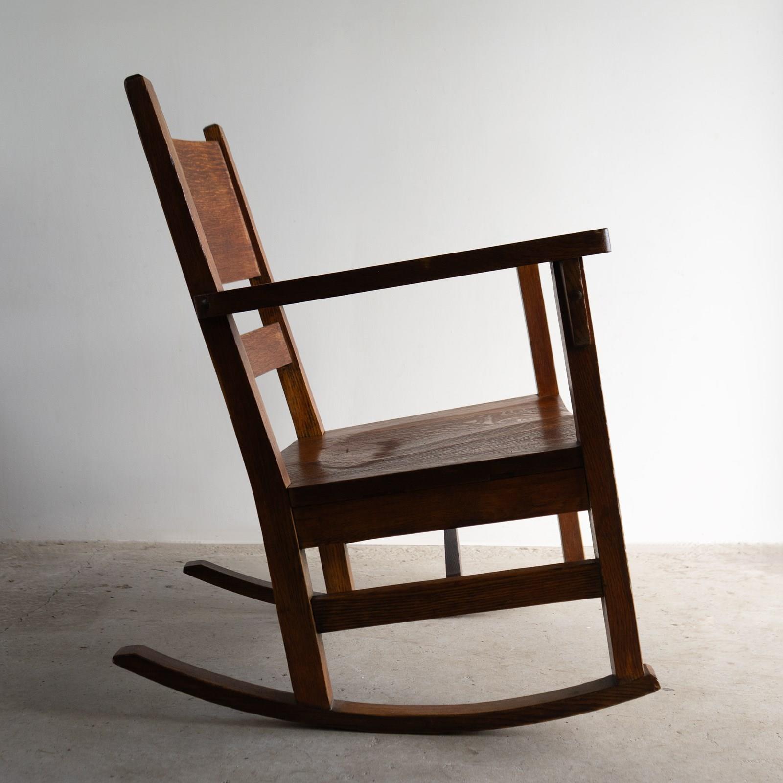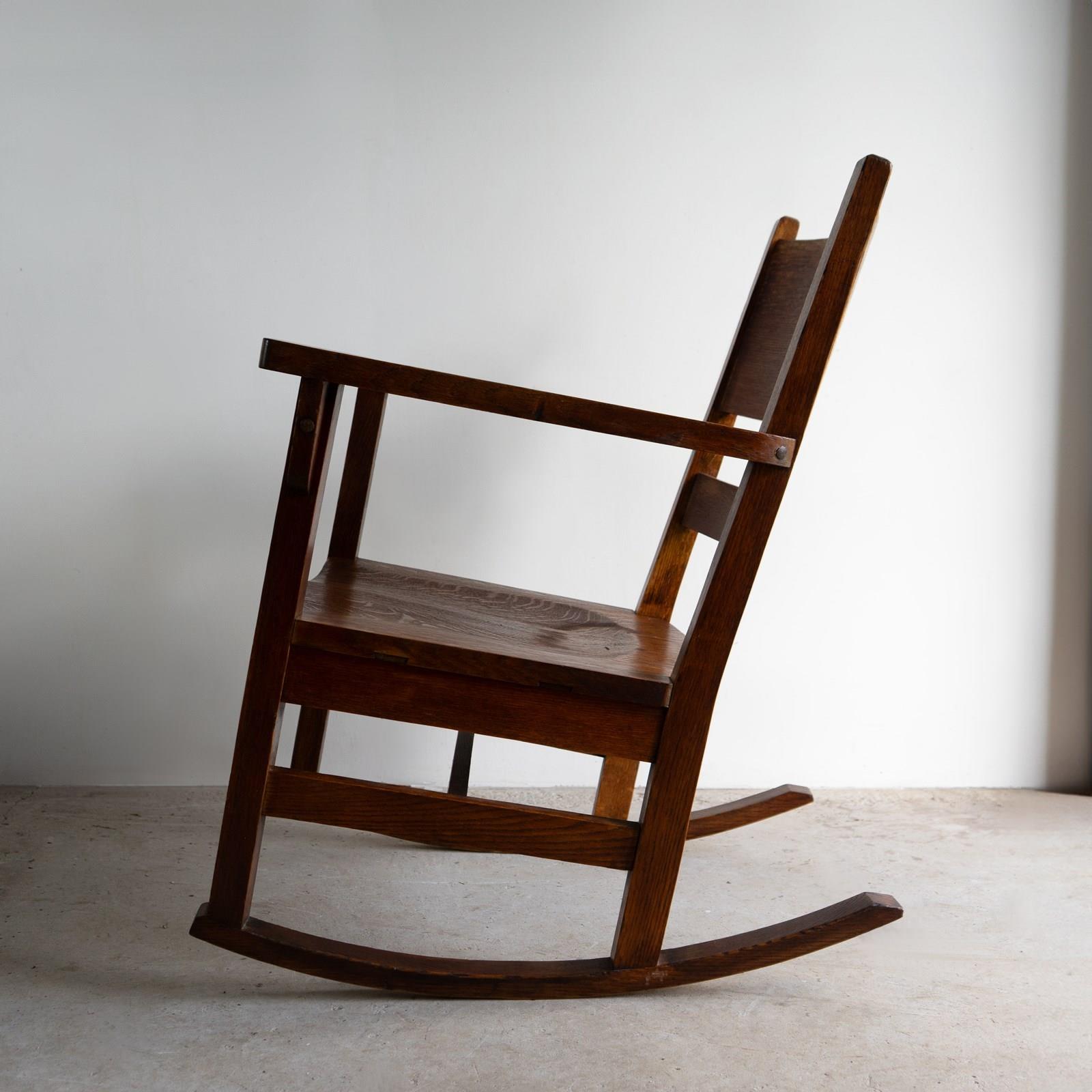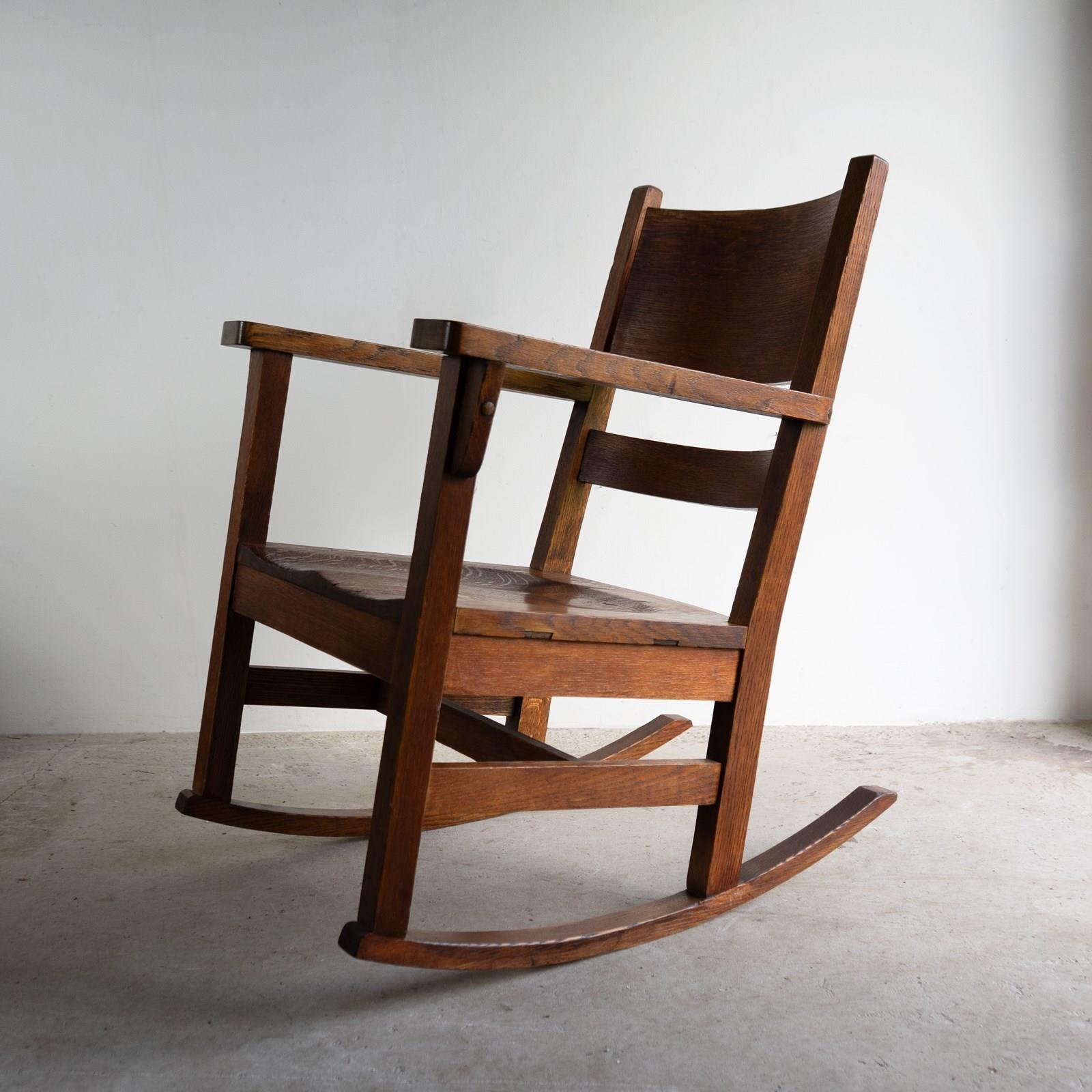 Antique Oak Arts And Crafts Rocking Chair, Manner Of Gustav Stickley, 20Th C