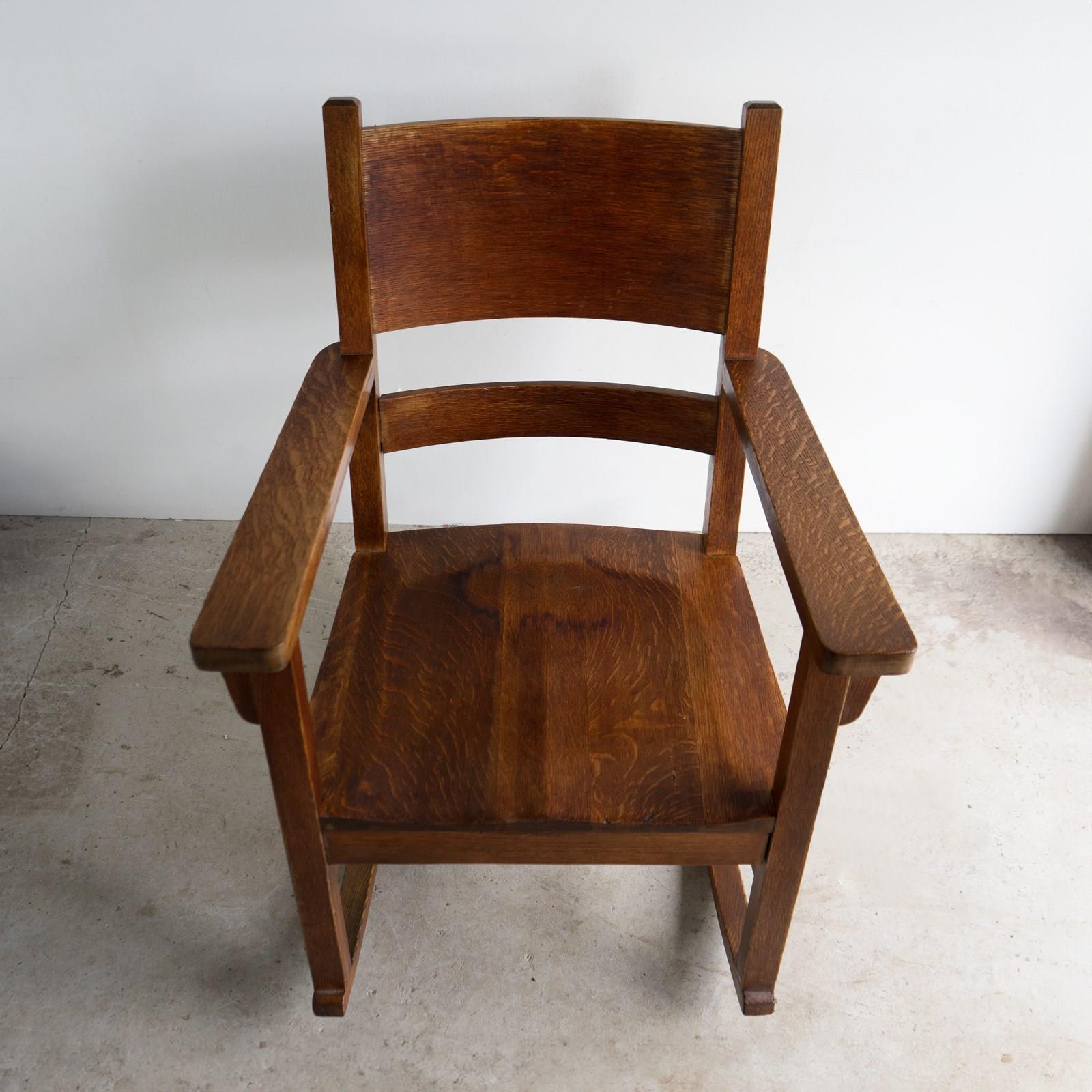 The chair is unsigned but it is very much in the manner of Gustav Stickley and almost certainly American in origin.