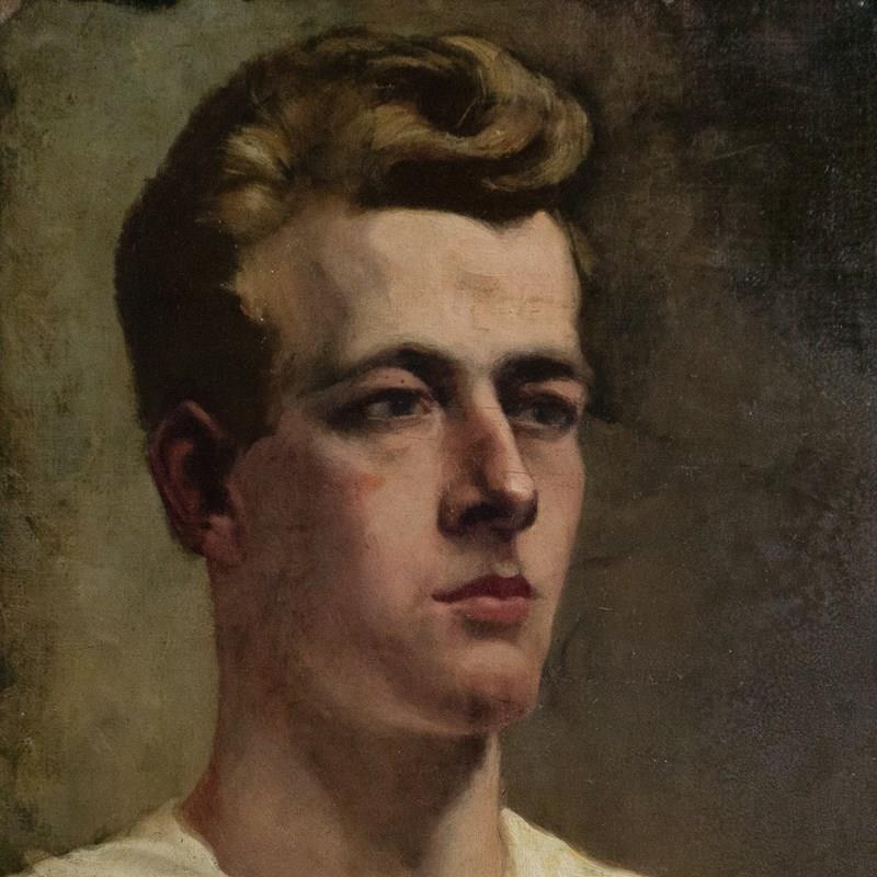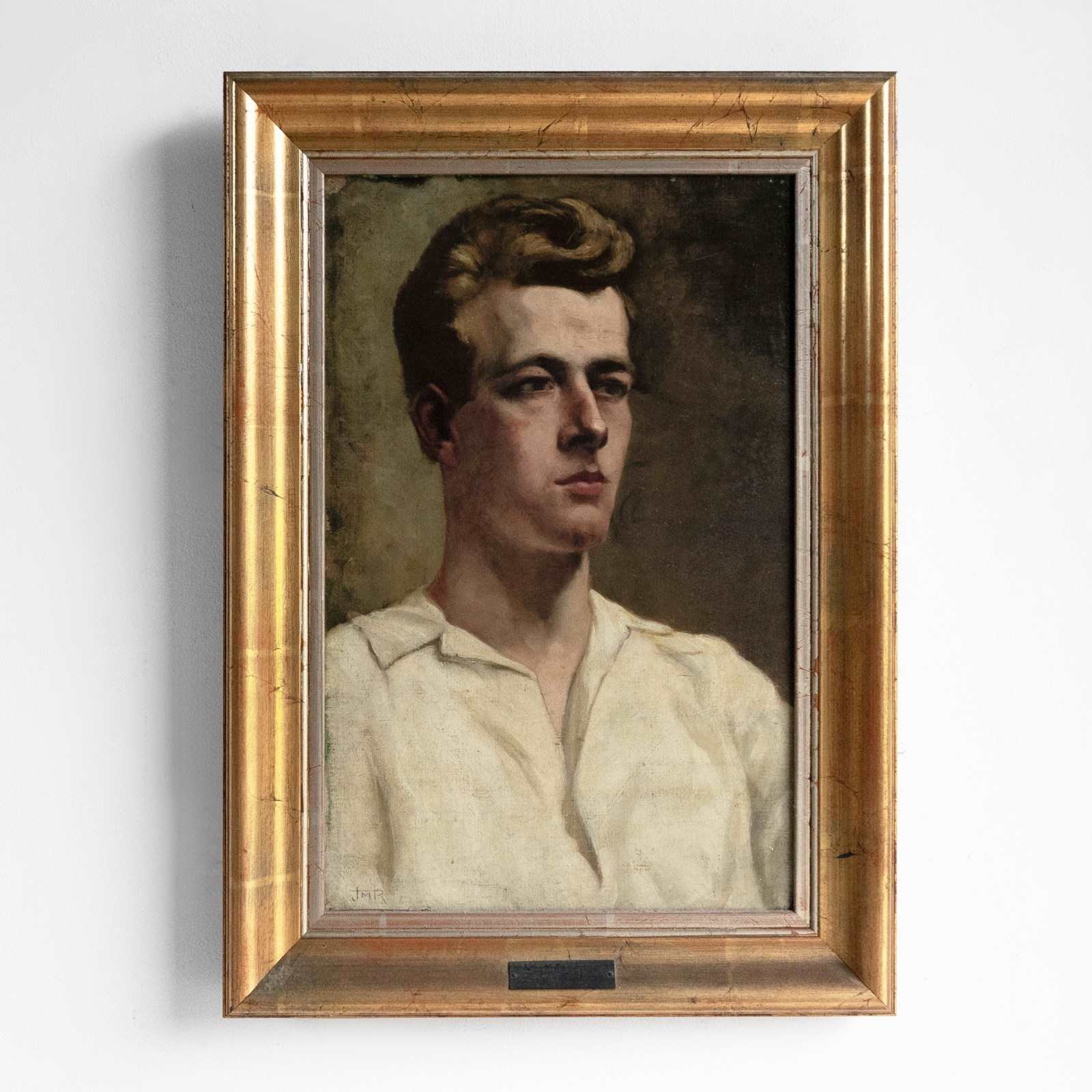 Probably dating from the early to mid 20th century period. If I had to guess I would say it probably dates from the 1930s. If the sitter was 30 when the portrait was painted this would date to 1937.