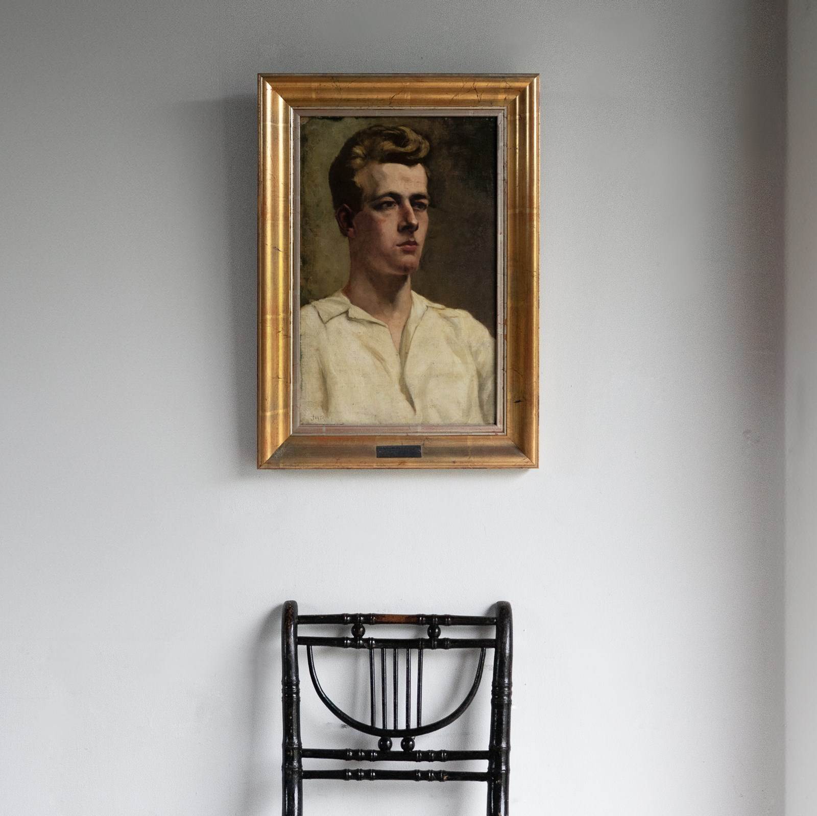ANTIQUE ORIGINAL OIL ON CANVAS PAINTING DEPICTING A MALE SITTER, EARLY TO MID 20TH CENTURY