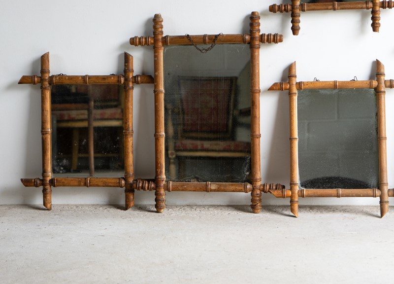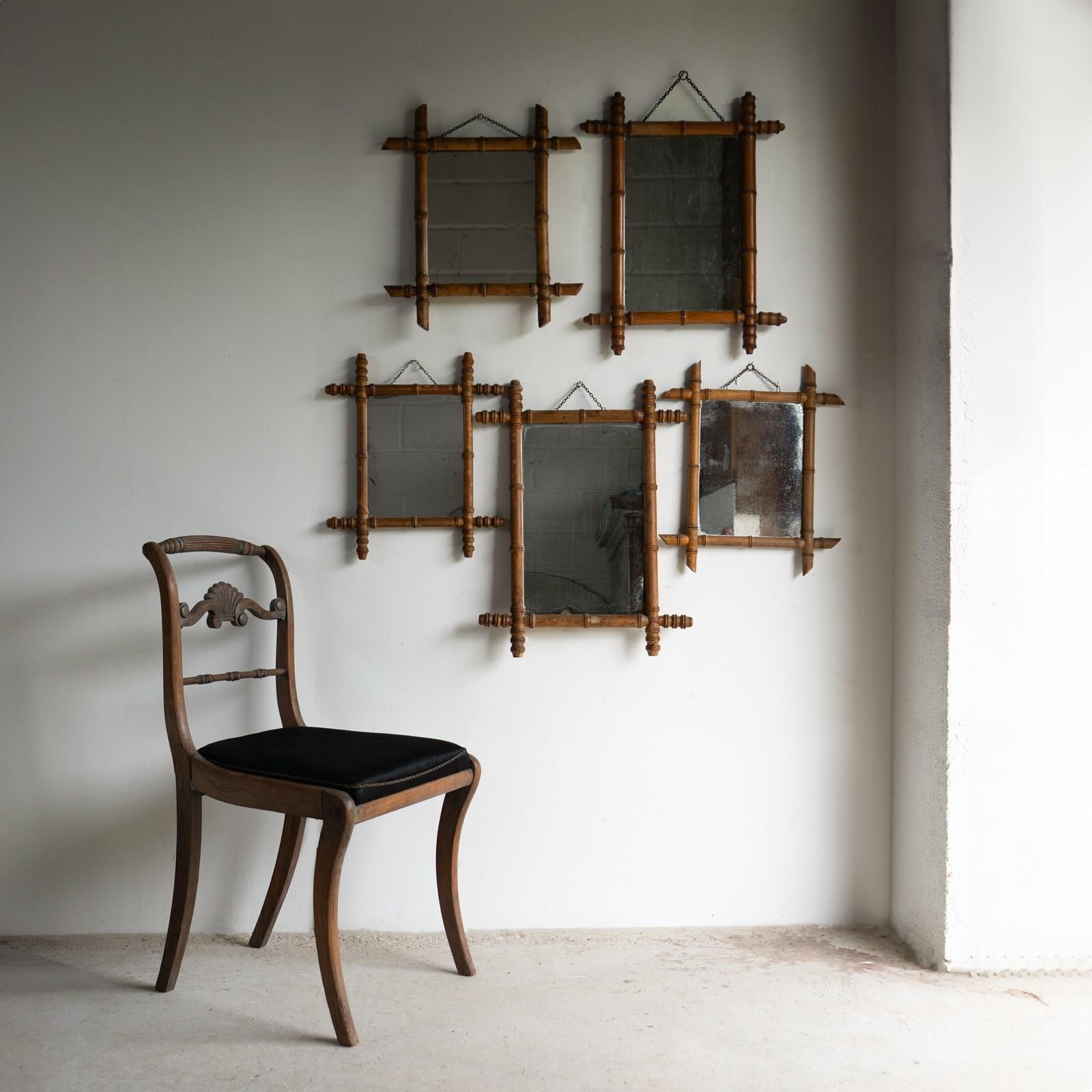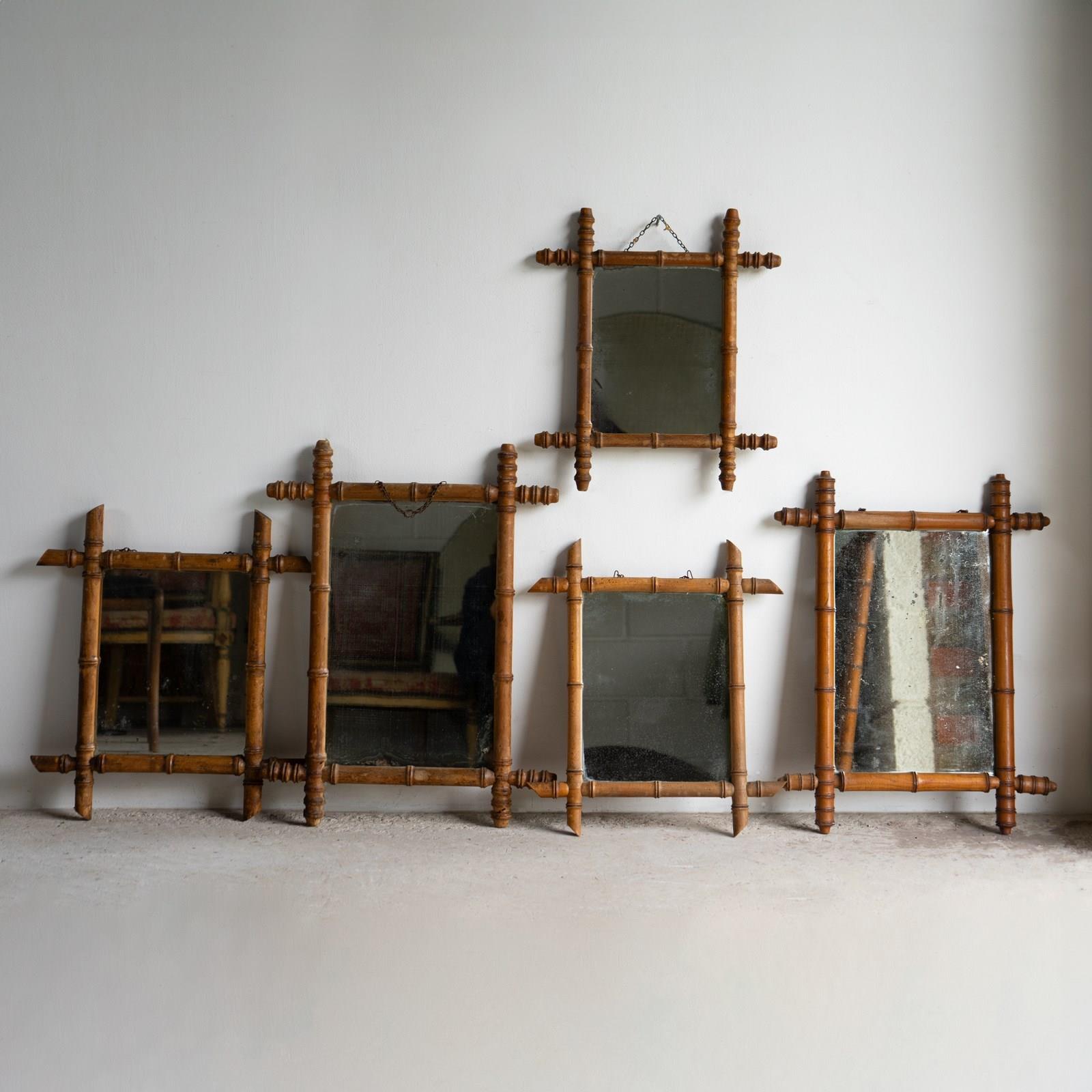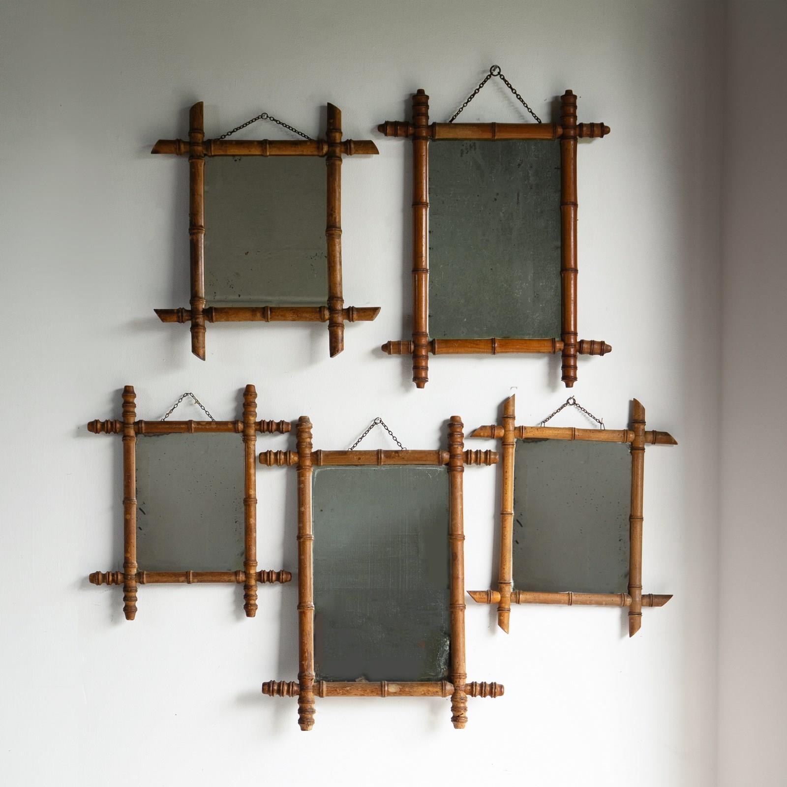 Five original examples of French faux bamboo wall mirrors.