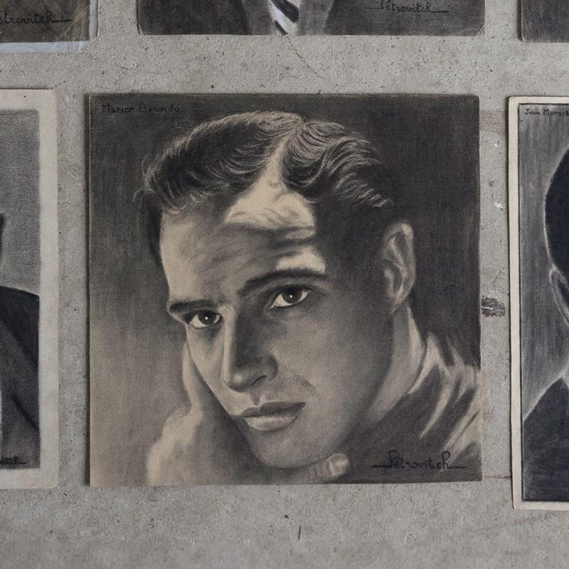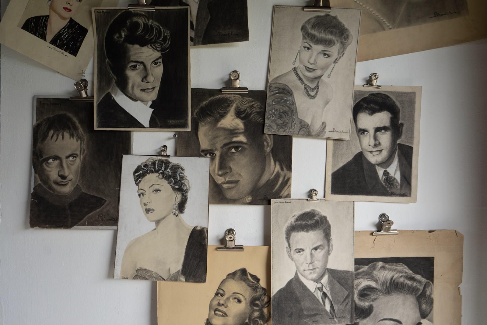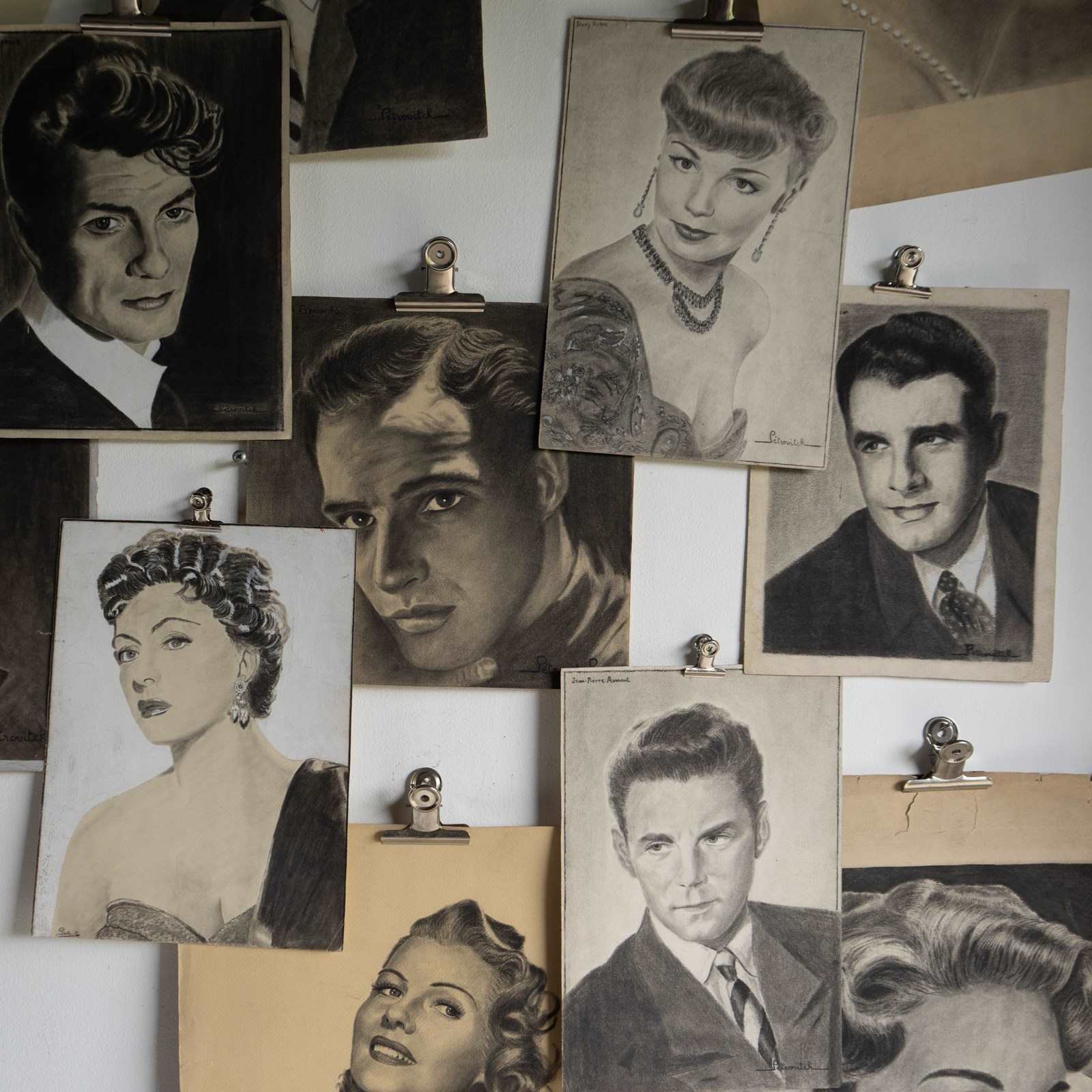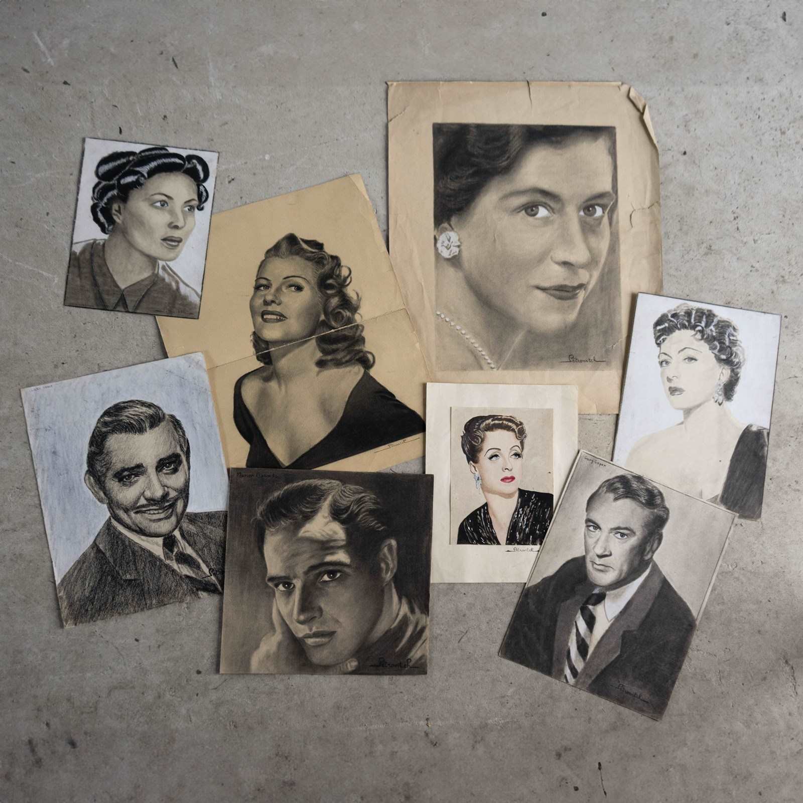 A collection of fourteen original portrait drawings of Hollywood and French film stars.
