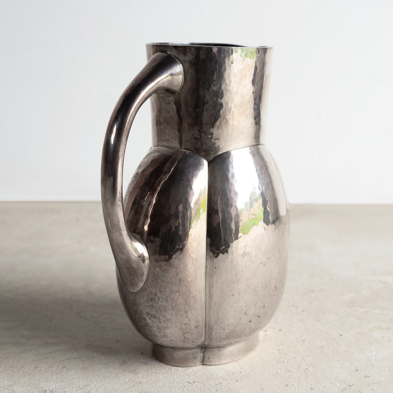 Antique jug or pitcher, designed in 1926 by Danish silversmith and sculptor Christian Fjerdingstad (1891-1968) for high-quality French goldsmiths and silversmiths Christofle, forming part of their Gallia range.