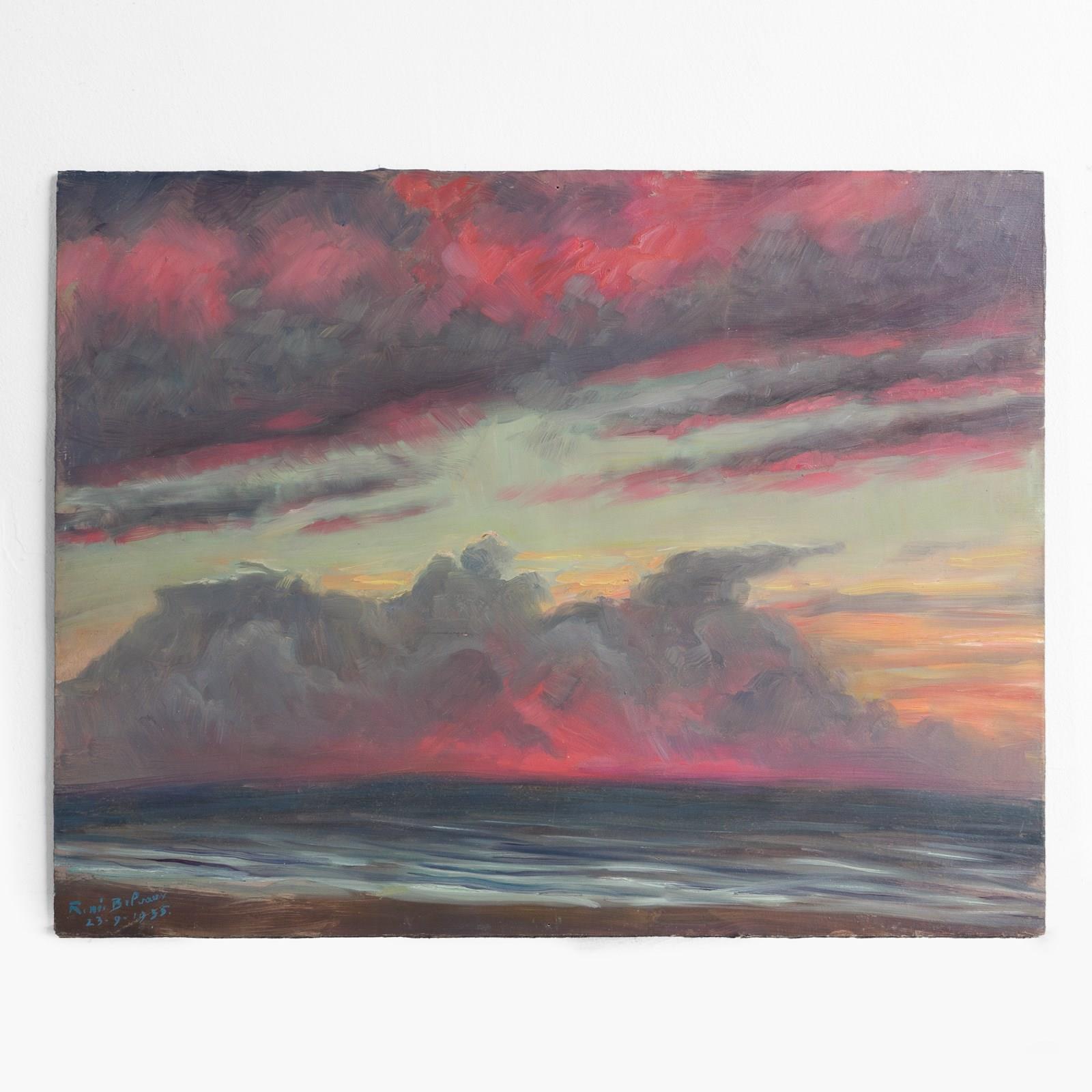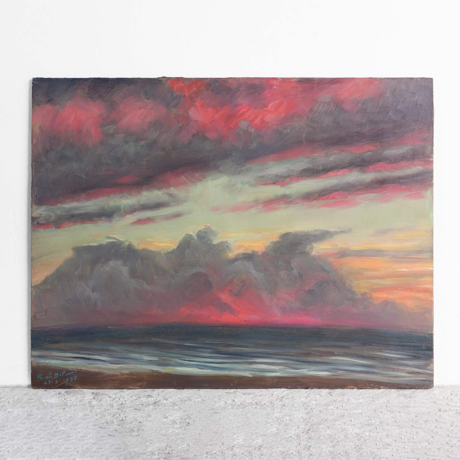 French Impressionist Sunset Seascape Vintage Original Landscape Painting, 1930S