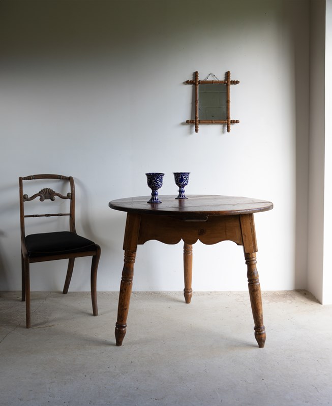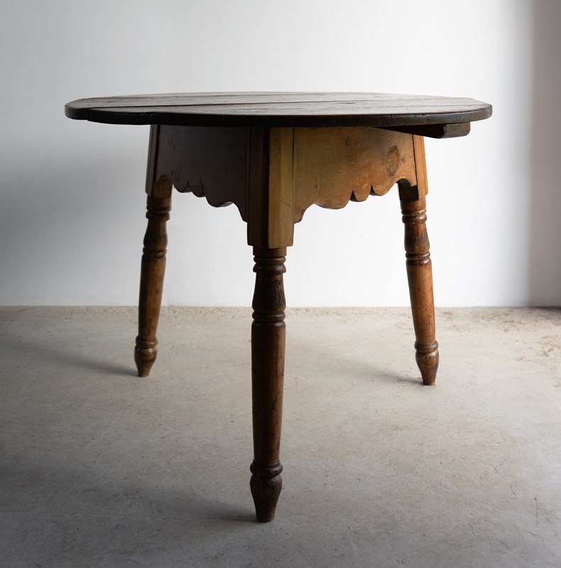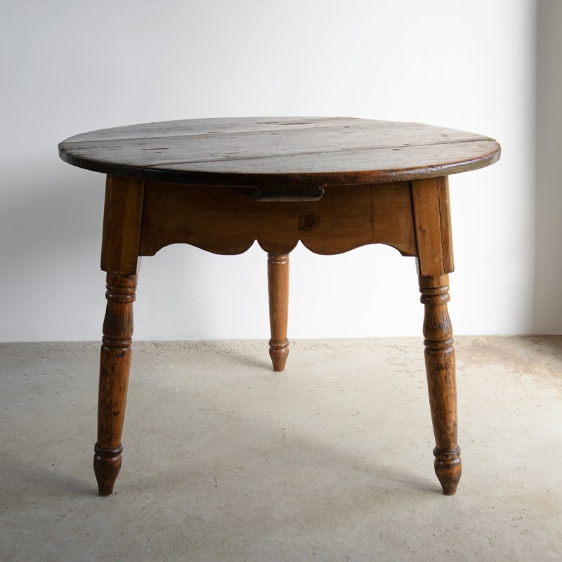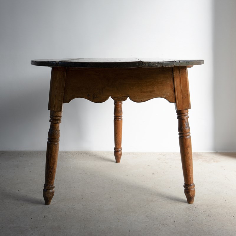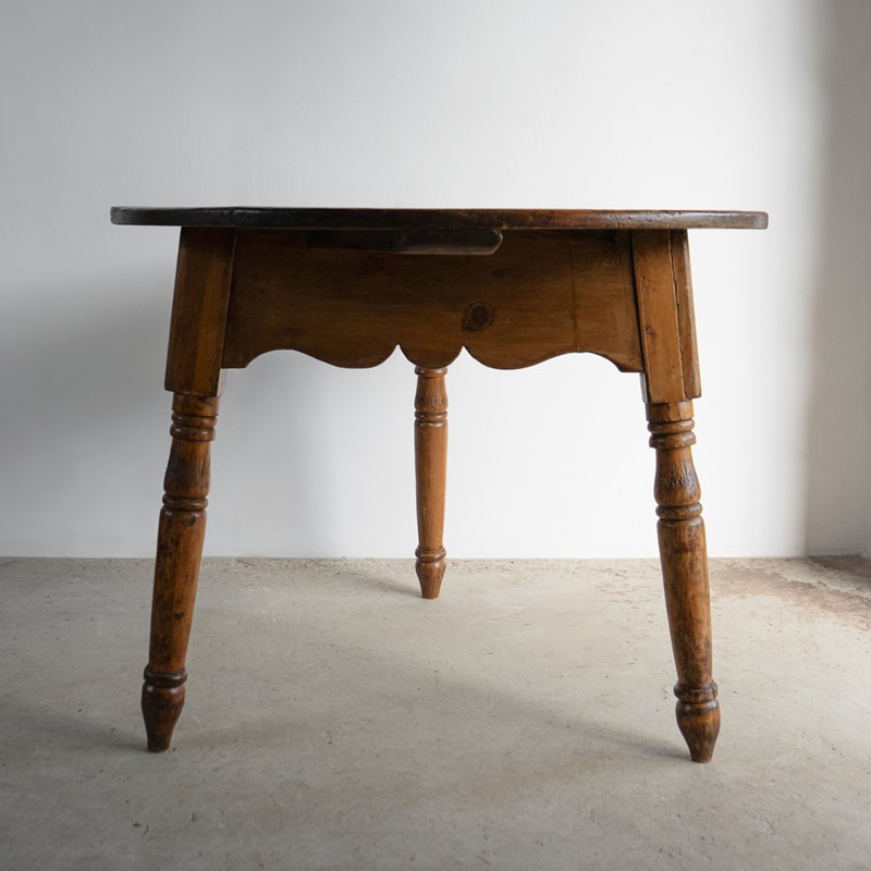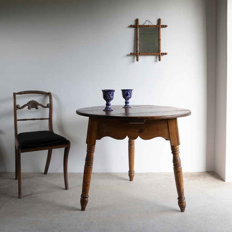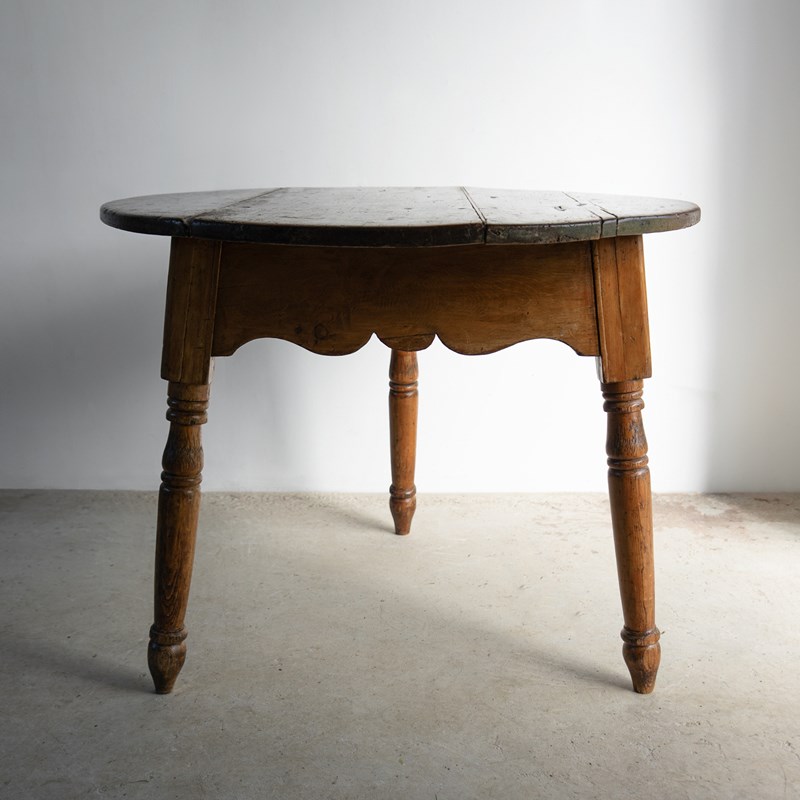 Large Antique Pine Cricket Table With Shaped Apron & Turned Legs, Welsh 19Th C.