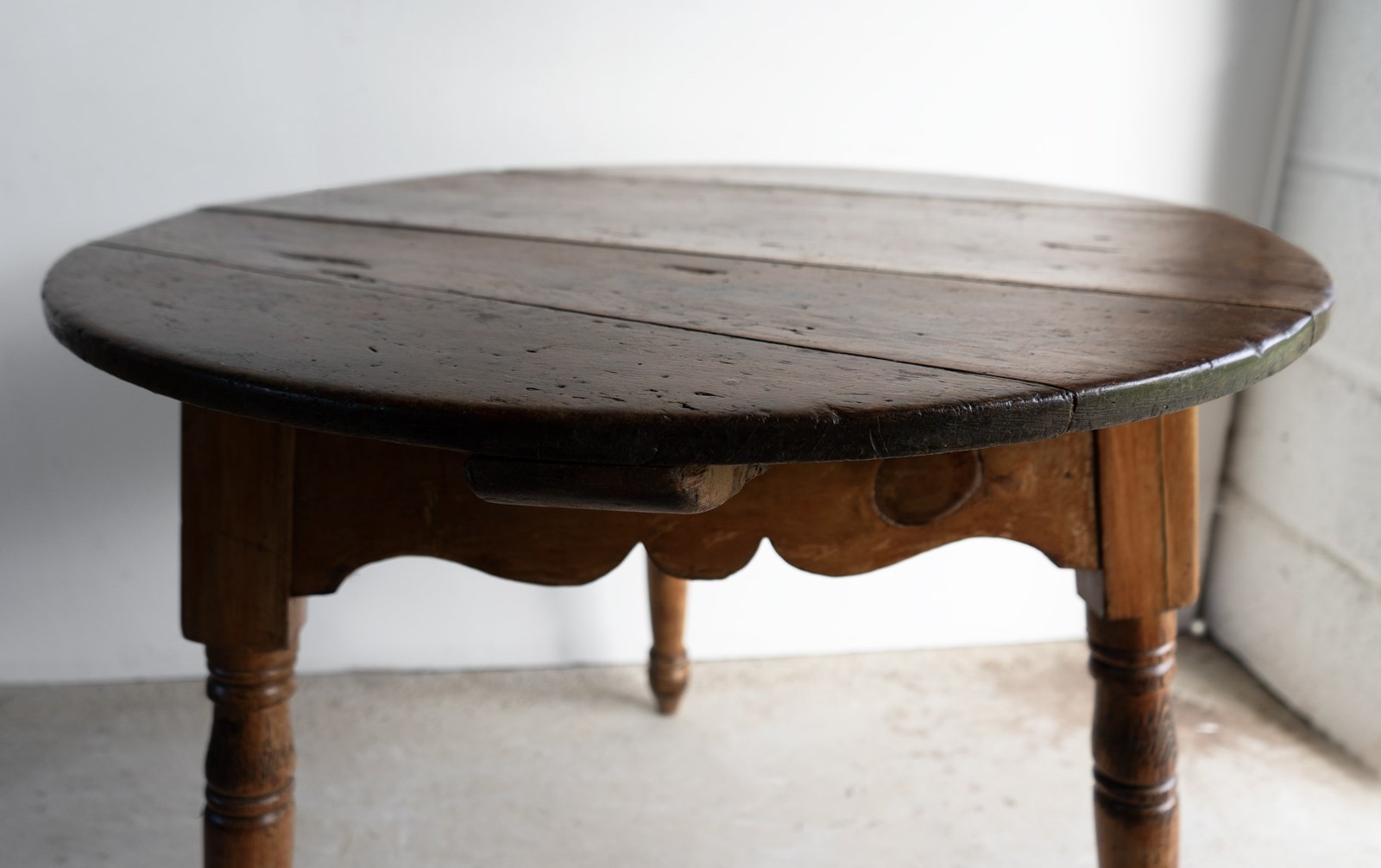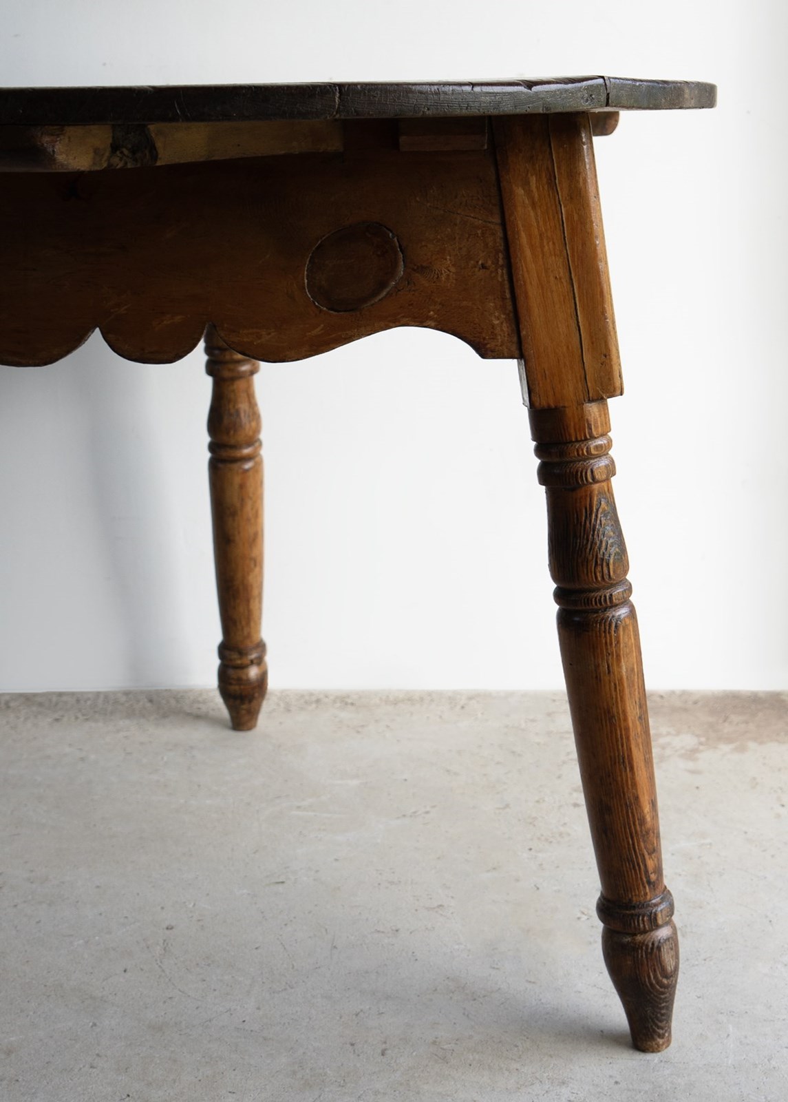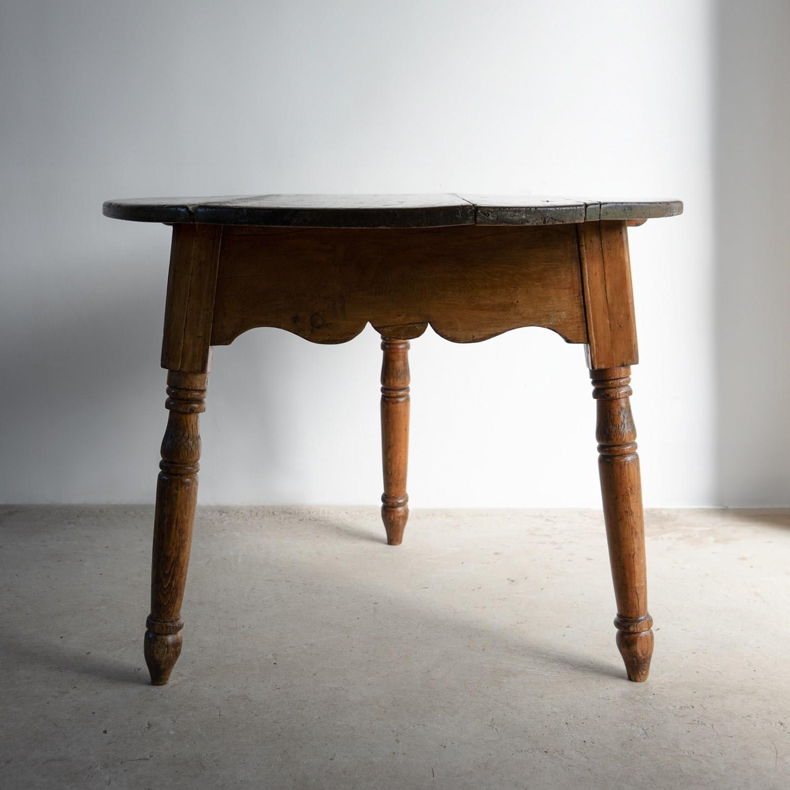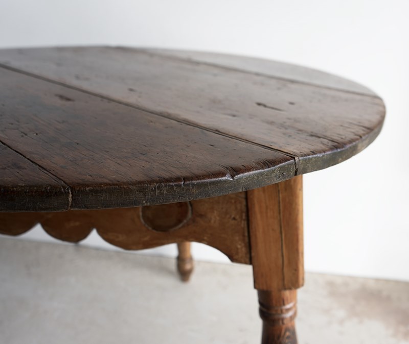 Large Antique Pine Cricket Table With Shaped Apron & Turned Legs, Welsh 19Th C.