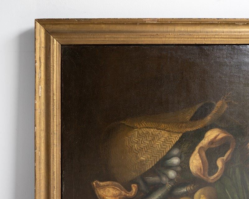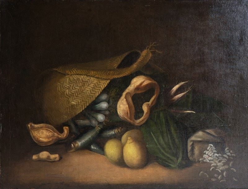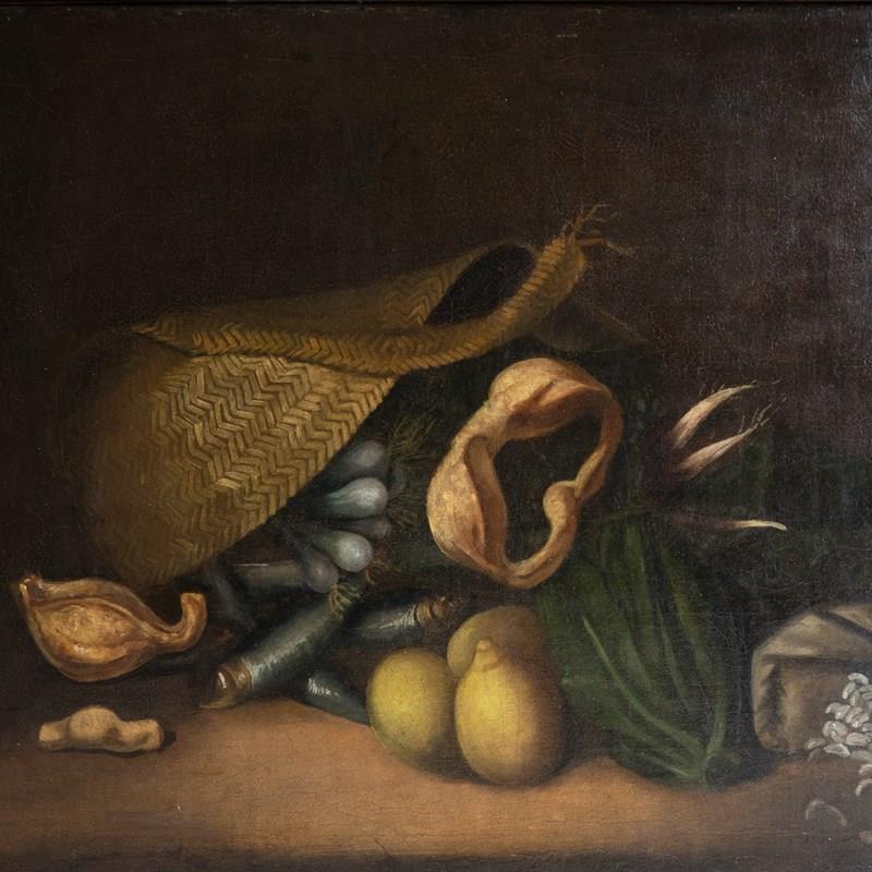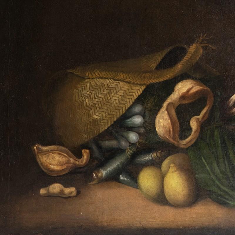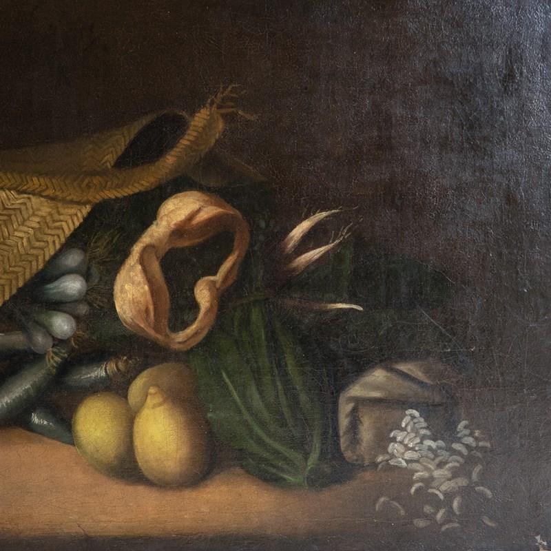 For reference, please see ‘Natura morta con grosso pesce, cipolle novelle, sporta con rape e altra sporta con pesci’, in the collection of the Cari Fano Foundation in Fano, as well as ‘Natura morta con cesta, brocche, aglio e zucche’ that sold at auction with Wannenes Genoa on 21st September 2021 for €4,000 under the hammer.